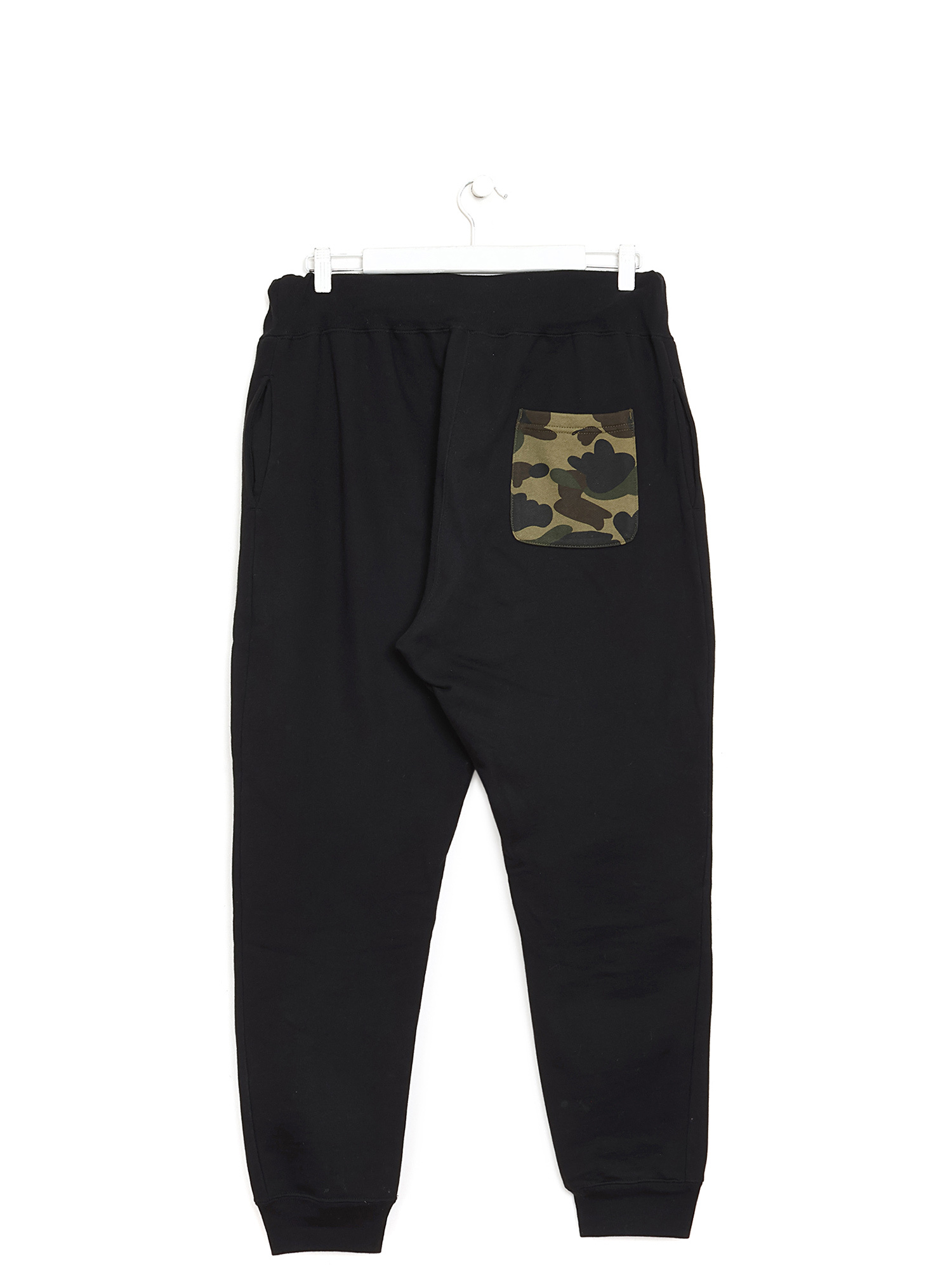 Pantalon de survêtement noir à motif de requin. Taille élastique.