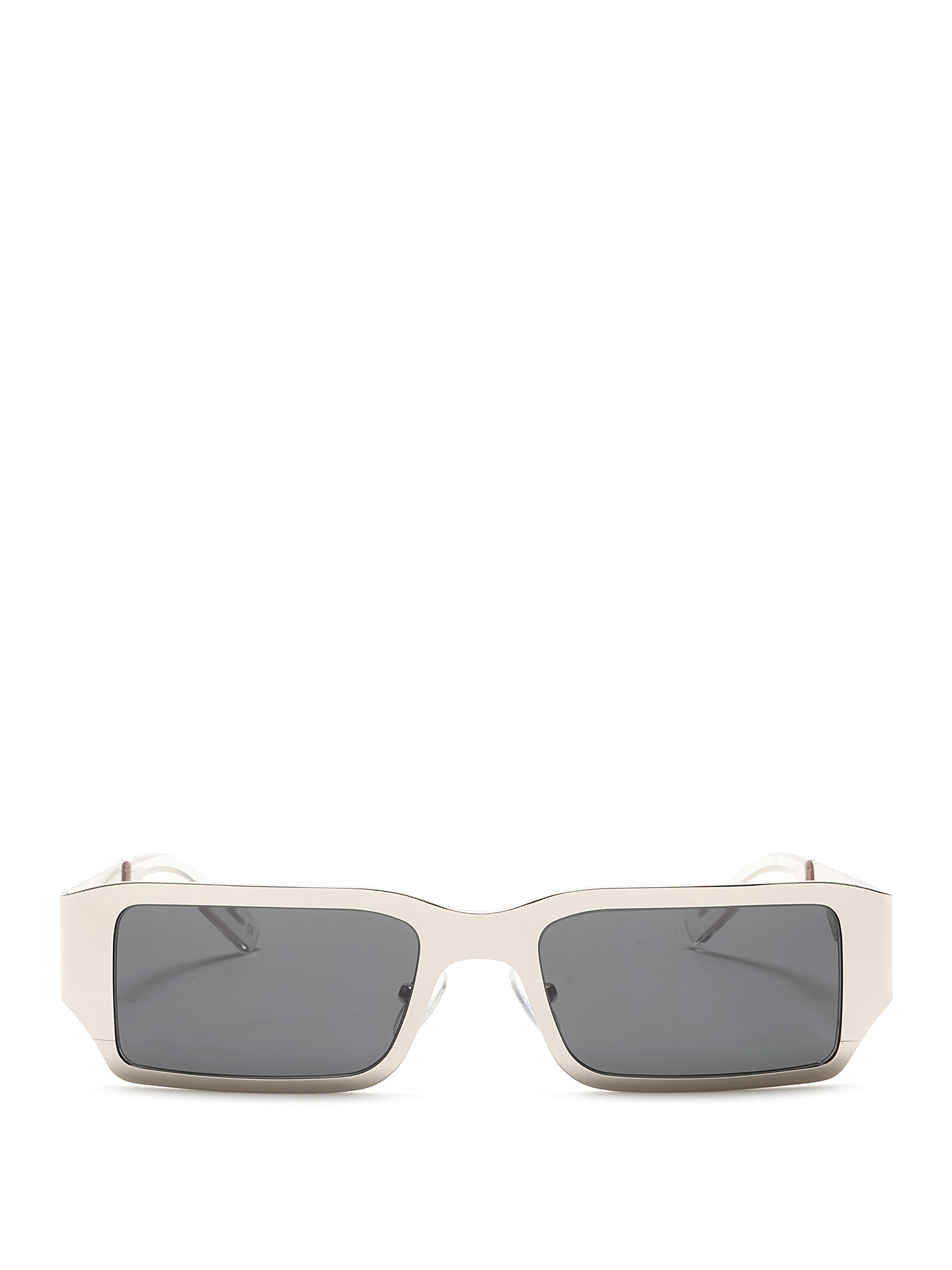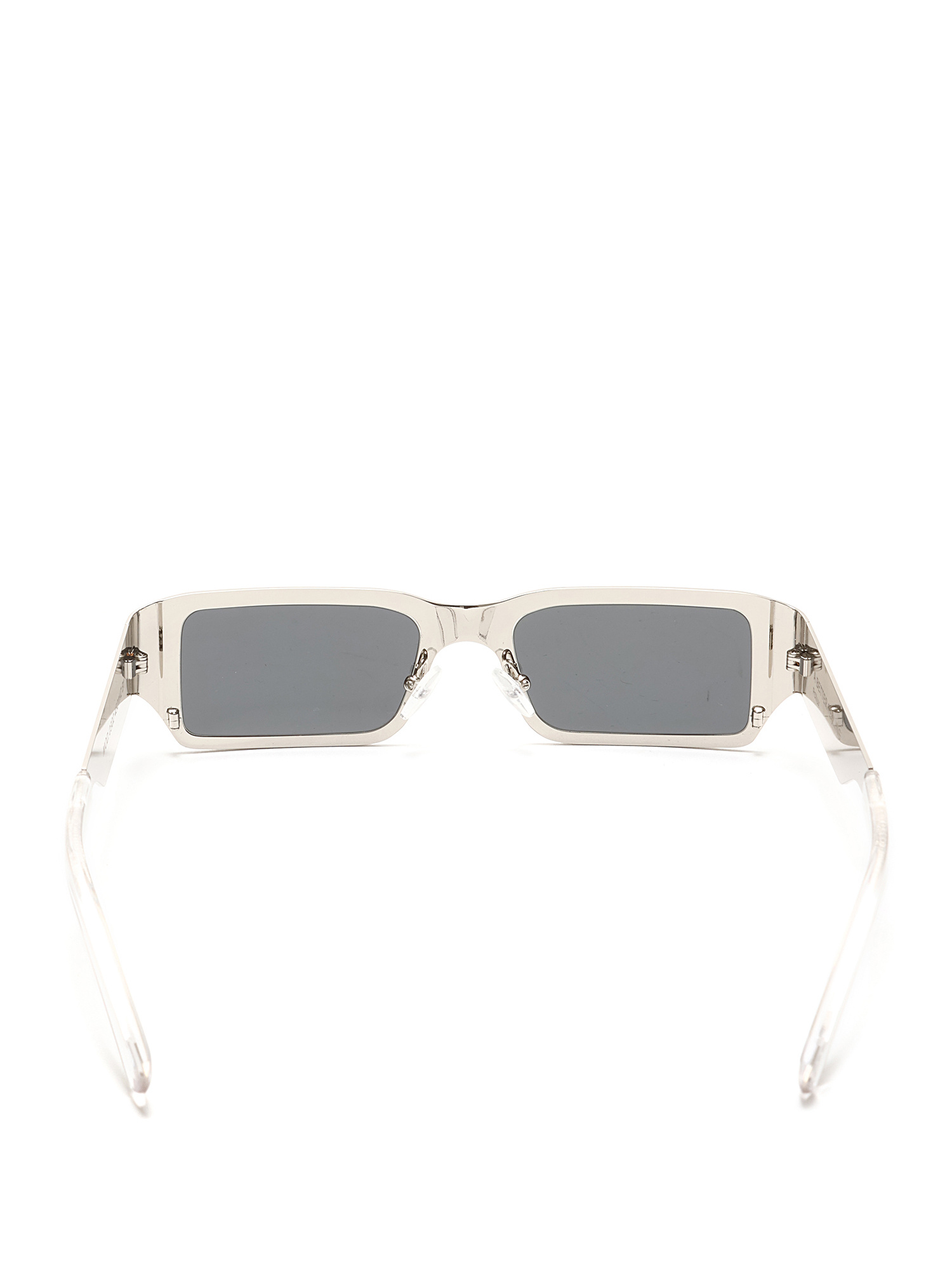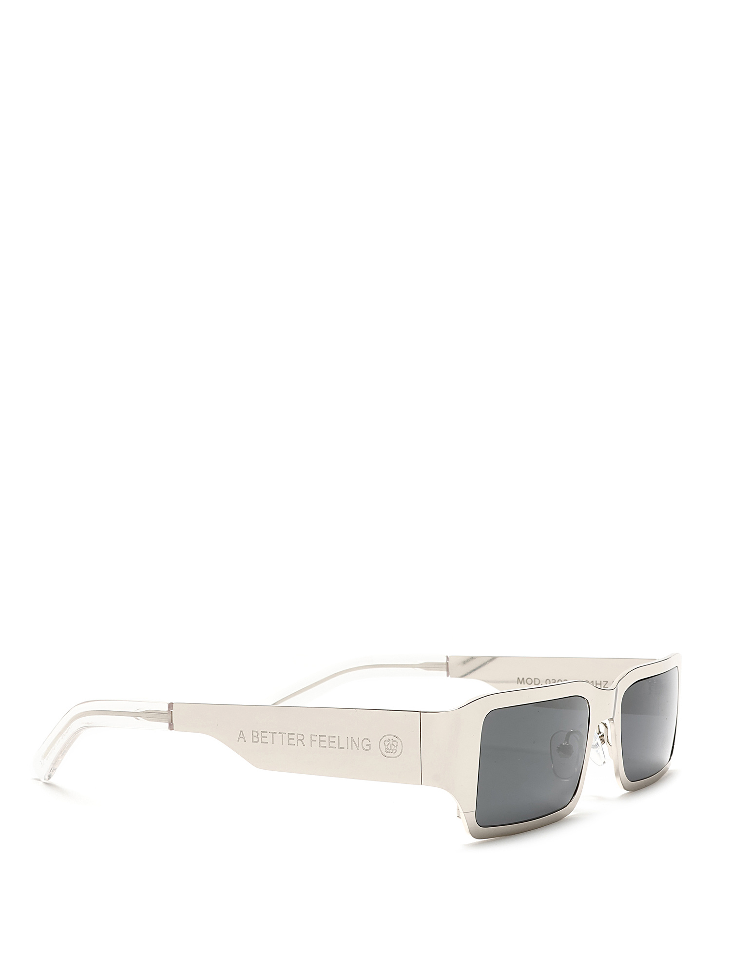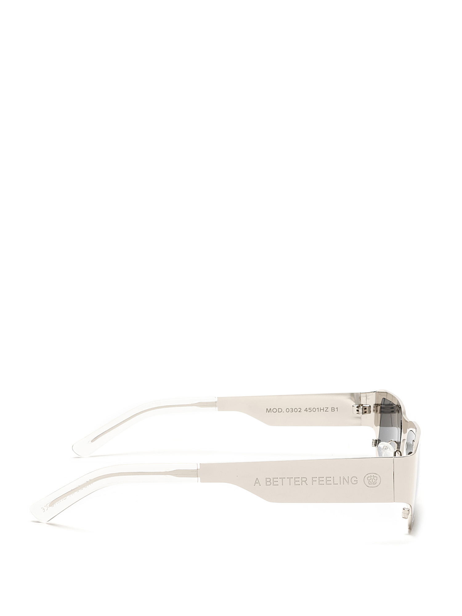 Lunettes de soleil rectangulaires en métal avec motif logo en argent. Ferrures argentées.