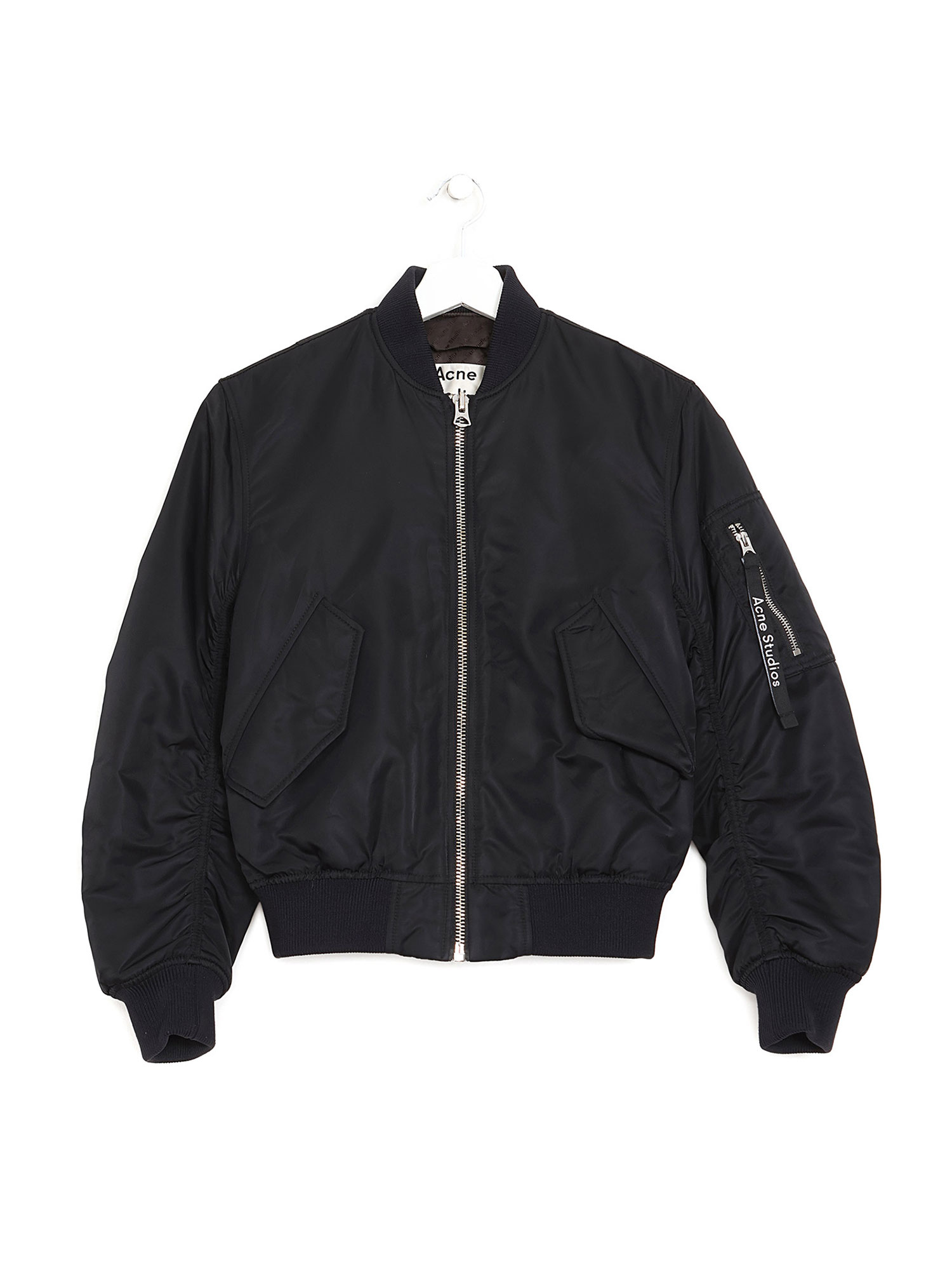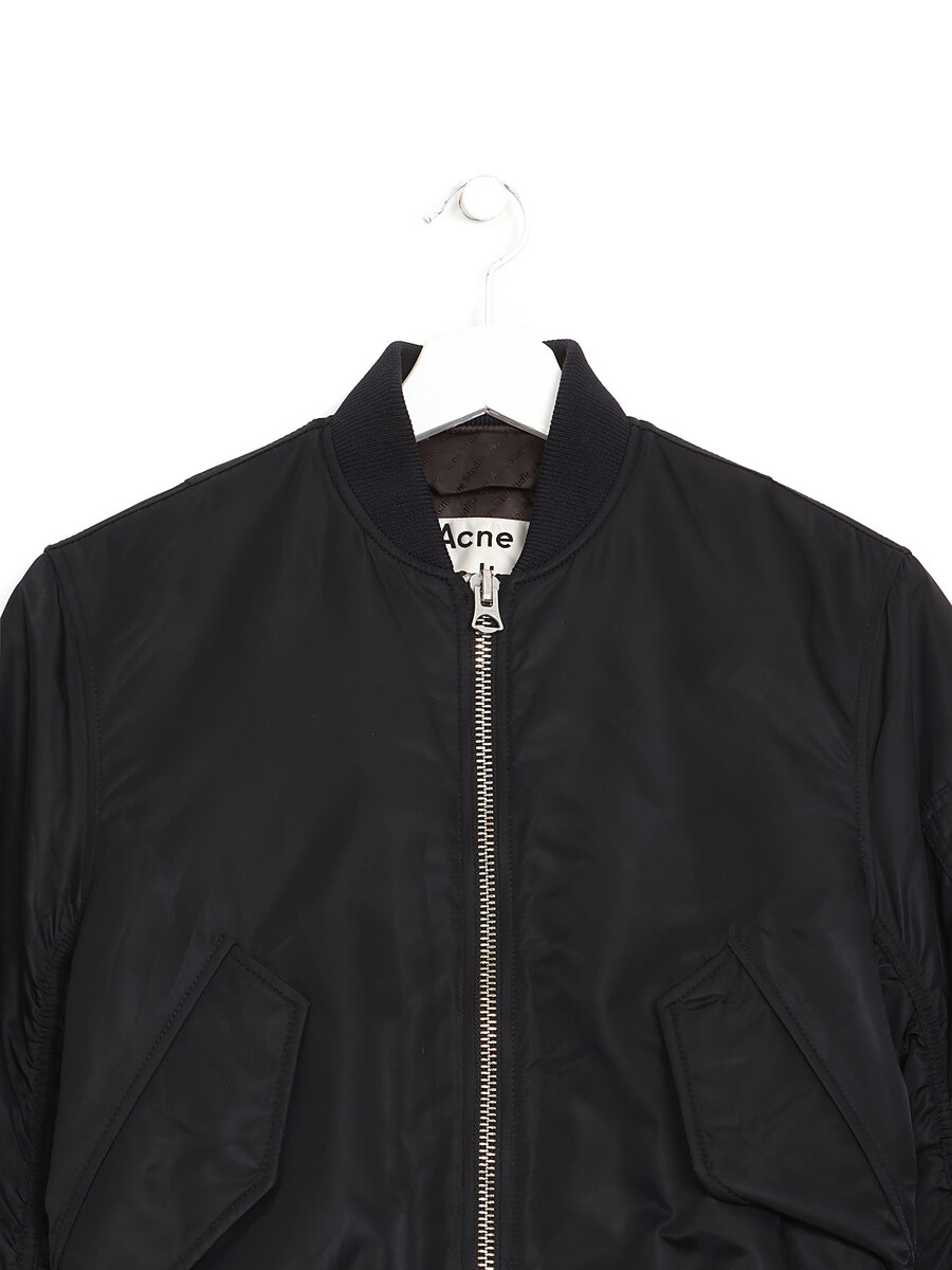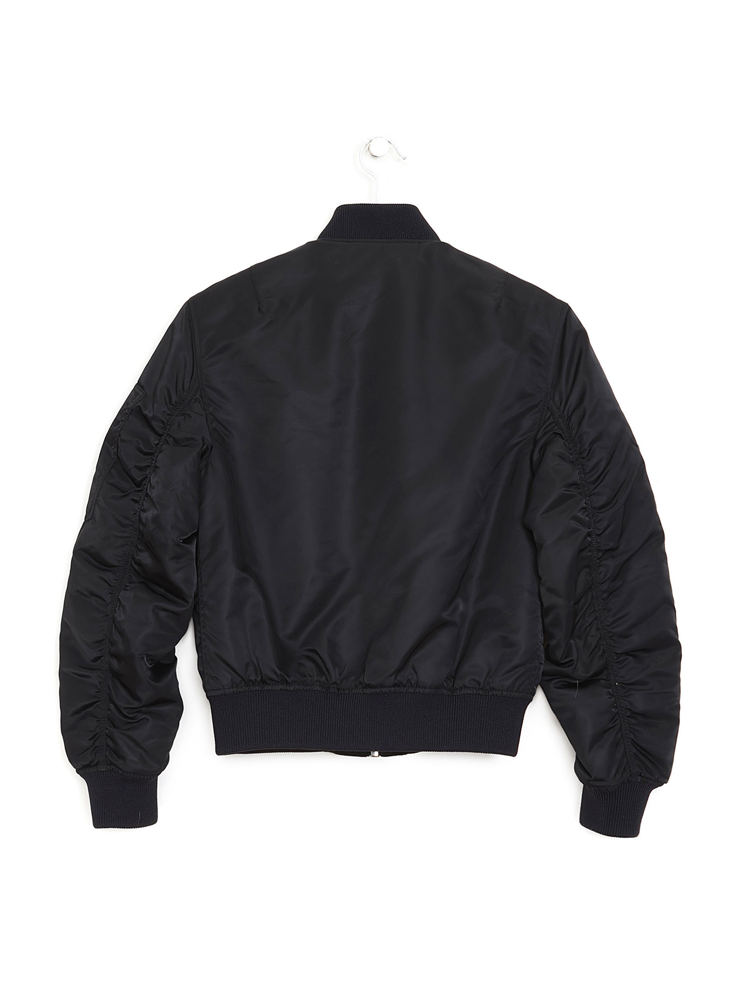 Manteau aviateur à manches longues noir. Fermeture éclair sur le devant. Col droit. Poches latérales à rabat.
