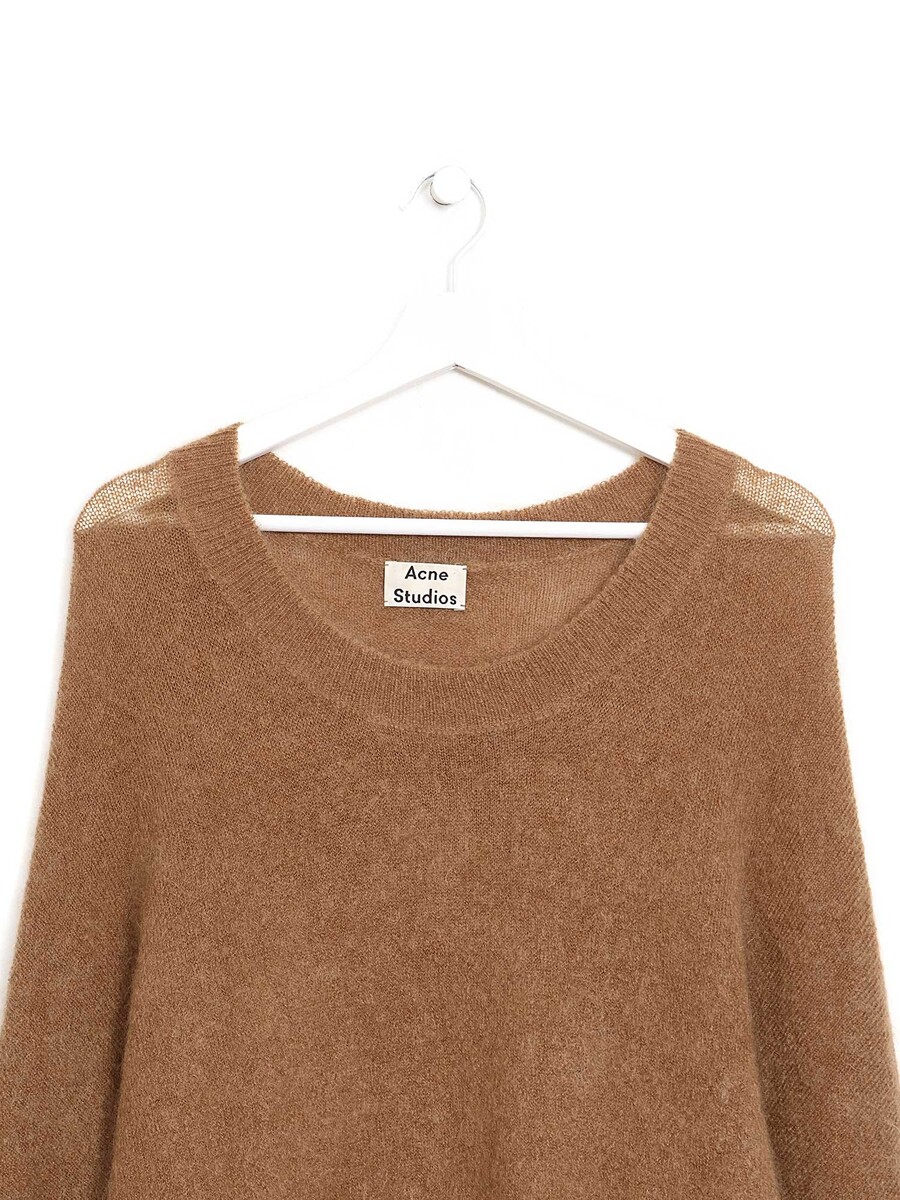 Pull en laine mélangée brun avec une texture douce et duveteuse. Coupe décontractée avec poignets et ourlet côtelés.