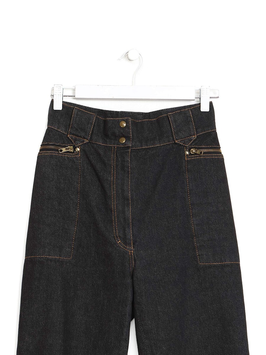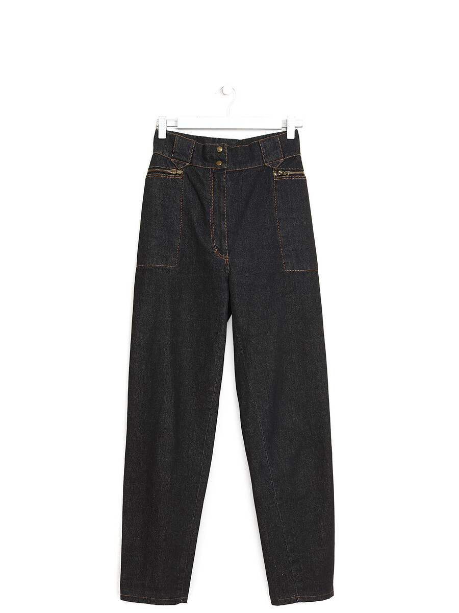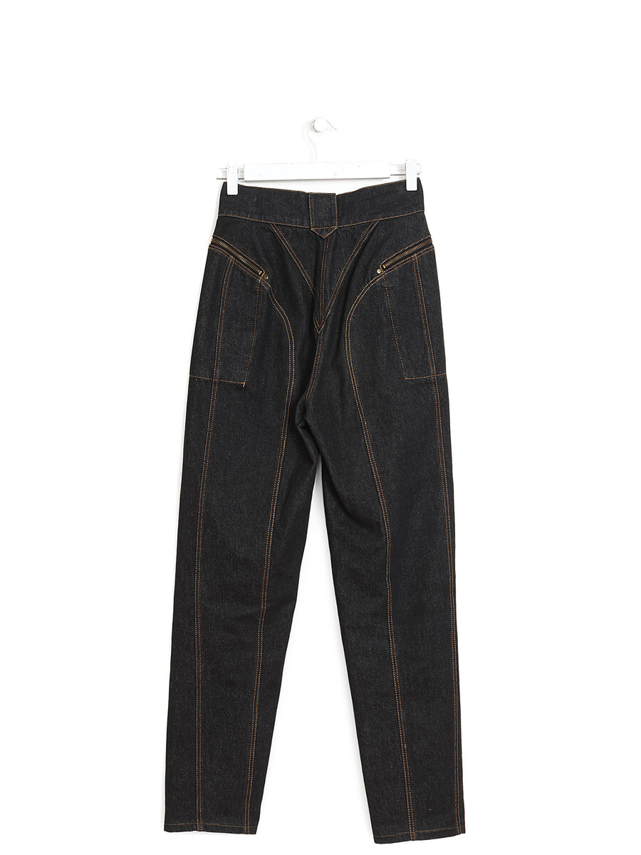 Jean en denim à jambes étroites avec tissu extensible. Fermeture éclair à l'avant.