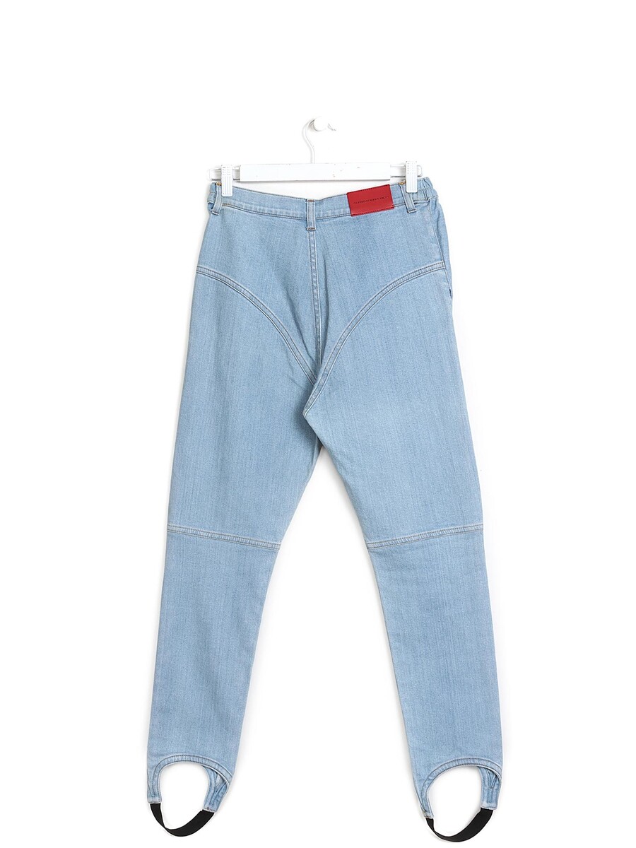 Jeans skinny à longueur cheville en délavé bleu clair avec boutons décoratifs en strass à l'avant et détail d'étrier. Taille haute.