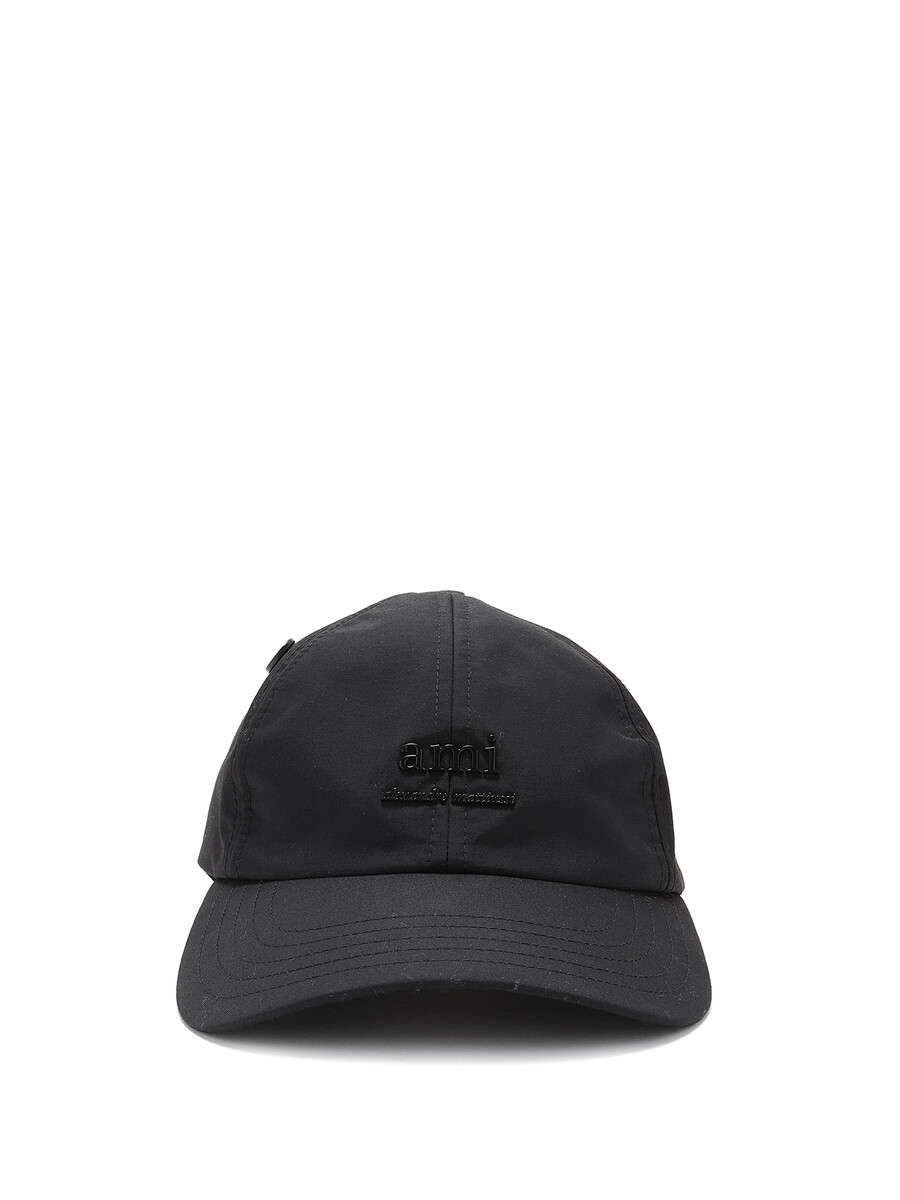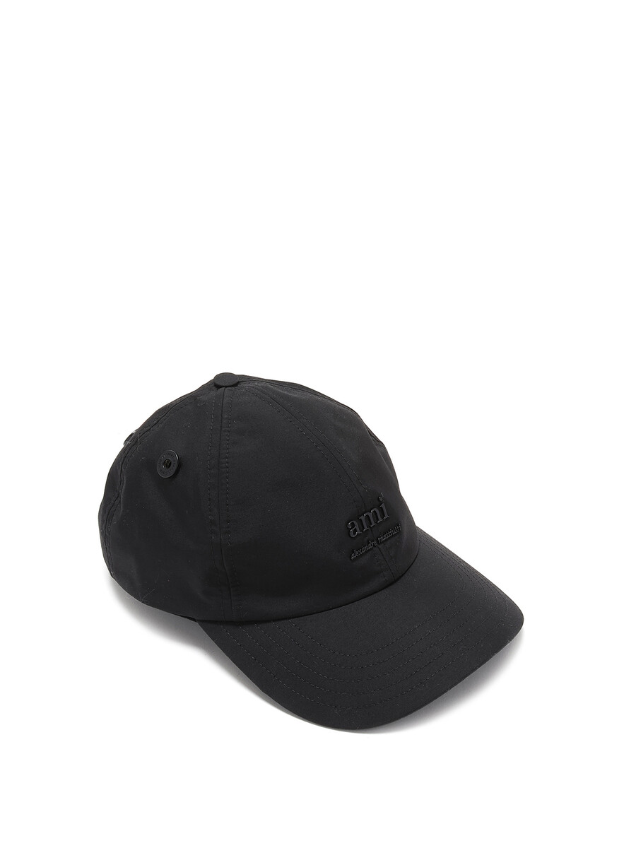 Casquette en nylon noire avec logo ton sur ton appliqué à l'avant.