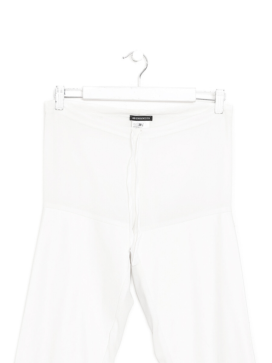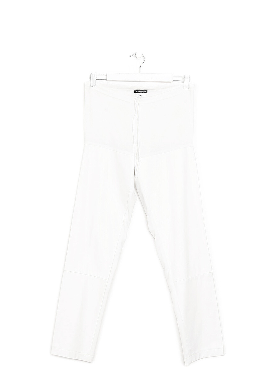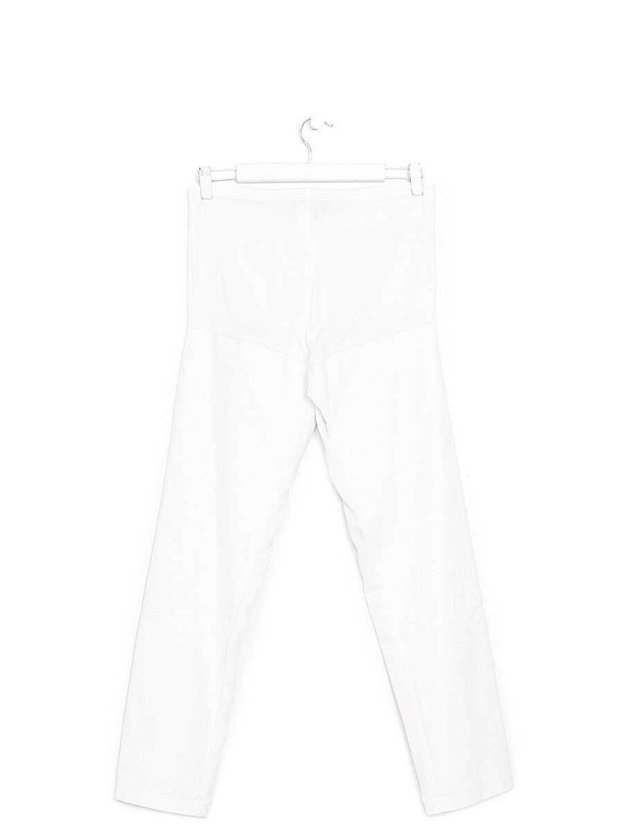 Pantalon ajusté à panneaux de cuir en blanc. Taille ajustable avec cordon. Coutures ton sur ton.
