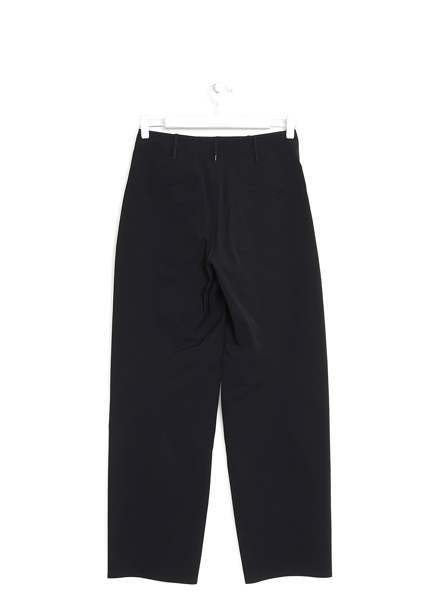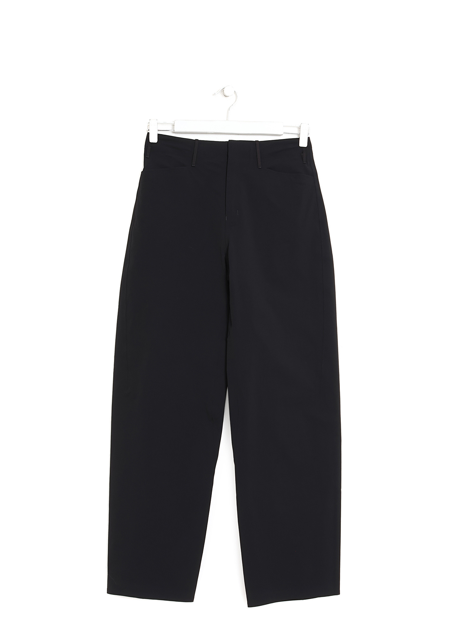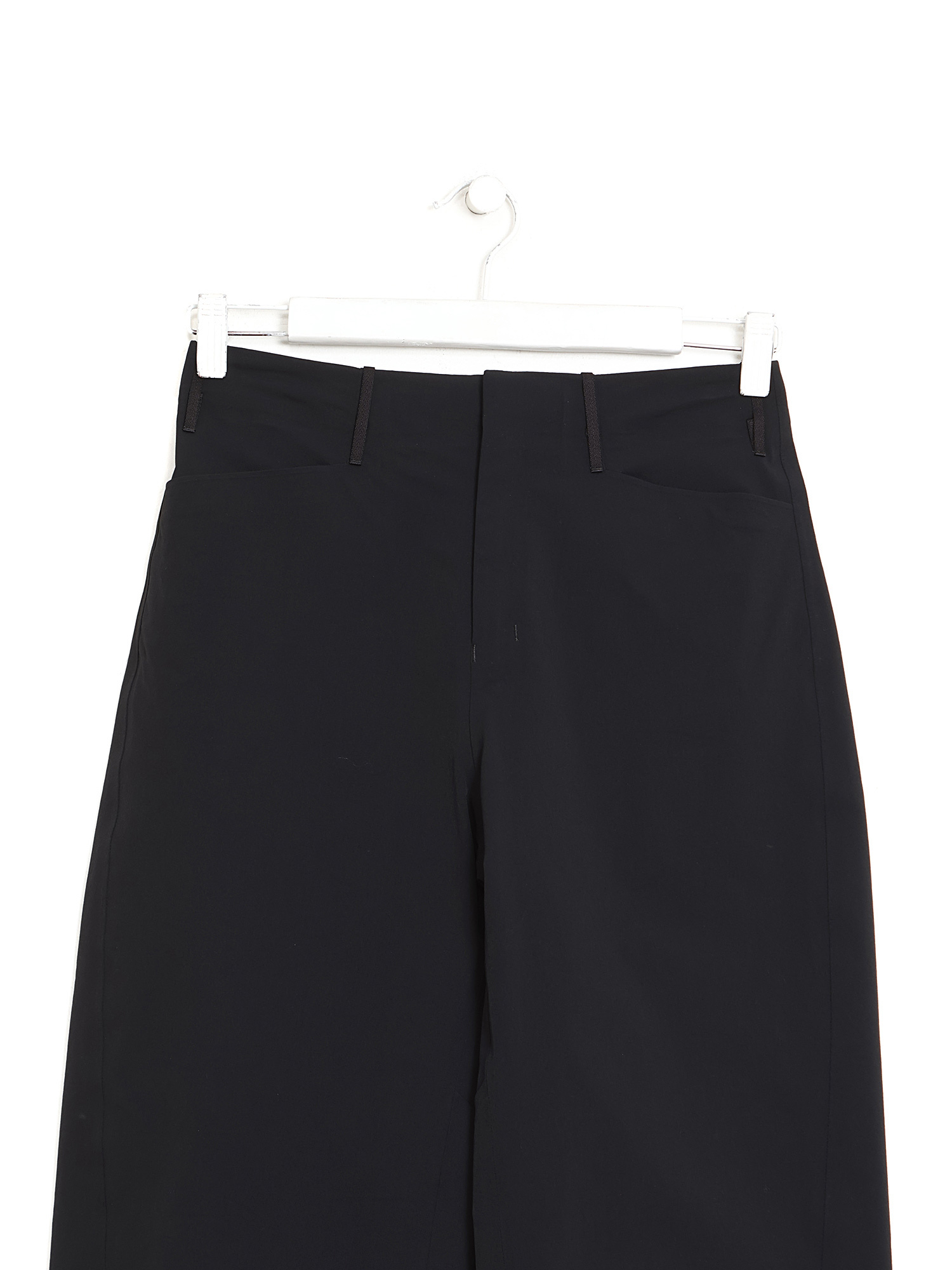 Pantalon en nylon noir confectionné à partir d’un mélange de coton, de nylon et d’élasthanne. Design sobre et léger avec une coupe ajustée.