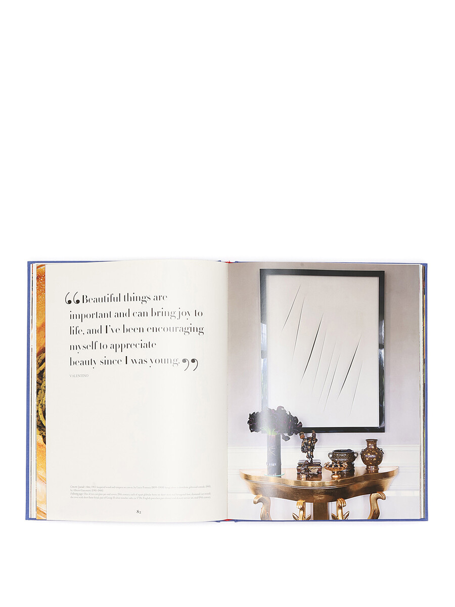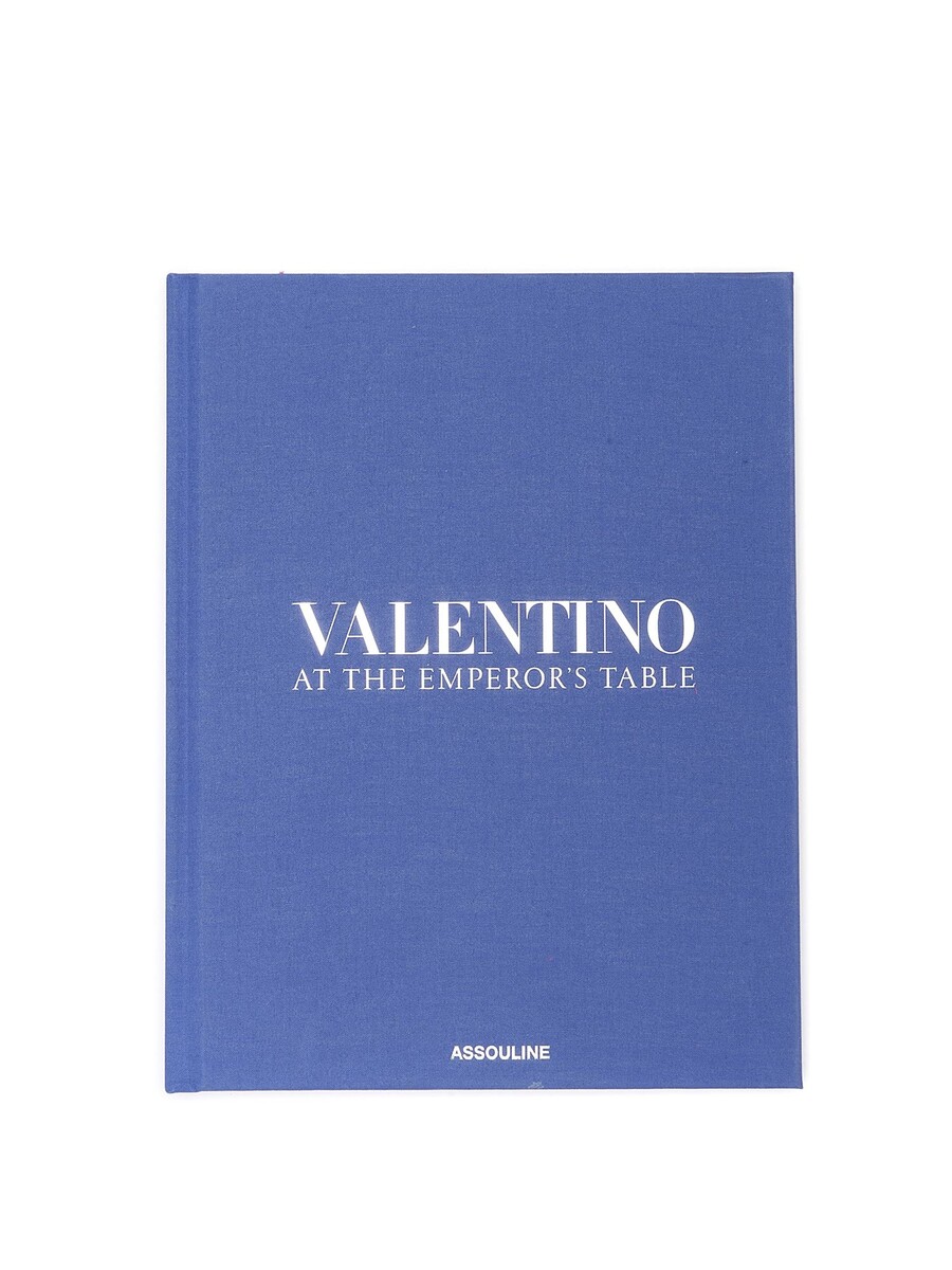 Livre 'Valentino at the Emperor's Table' par Assouline avec couverture en tissu bleu. Livré avec une jaquette de protection.
