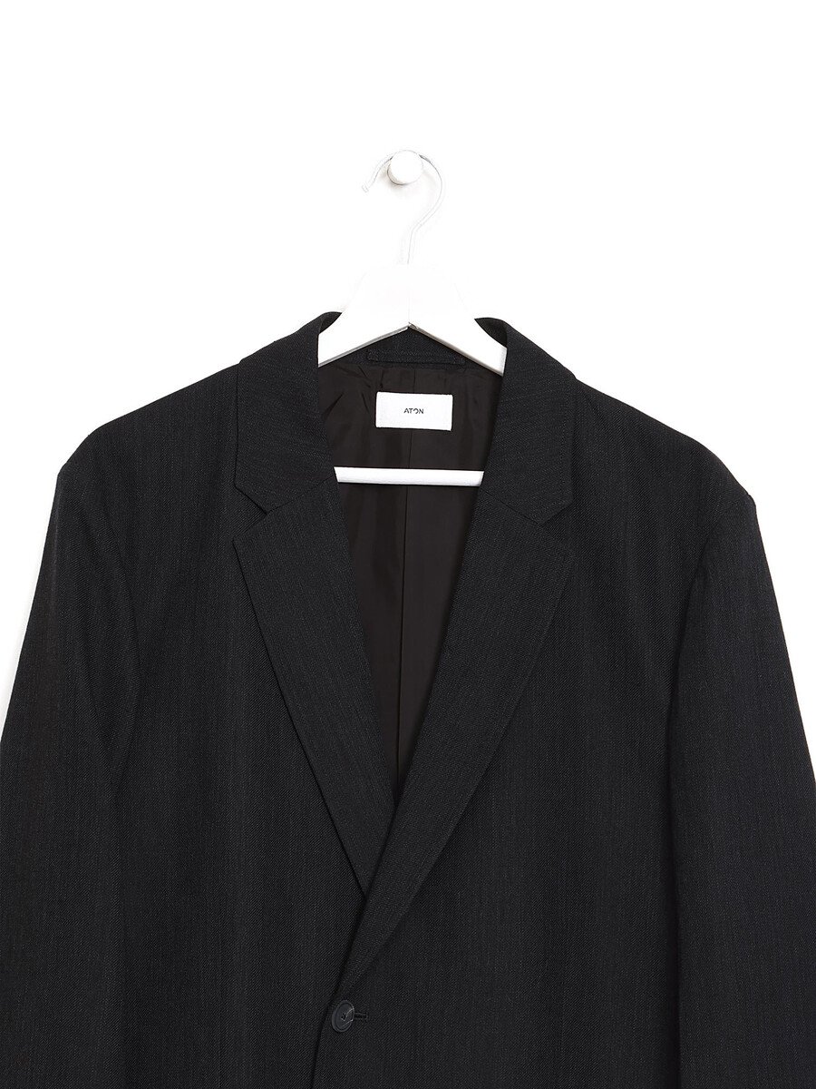 Veston gris en mélange de laine avec revers cranté. Poches plaquées. Coupe ajustée.