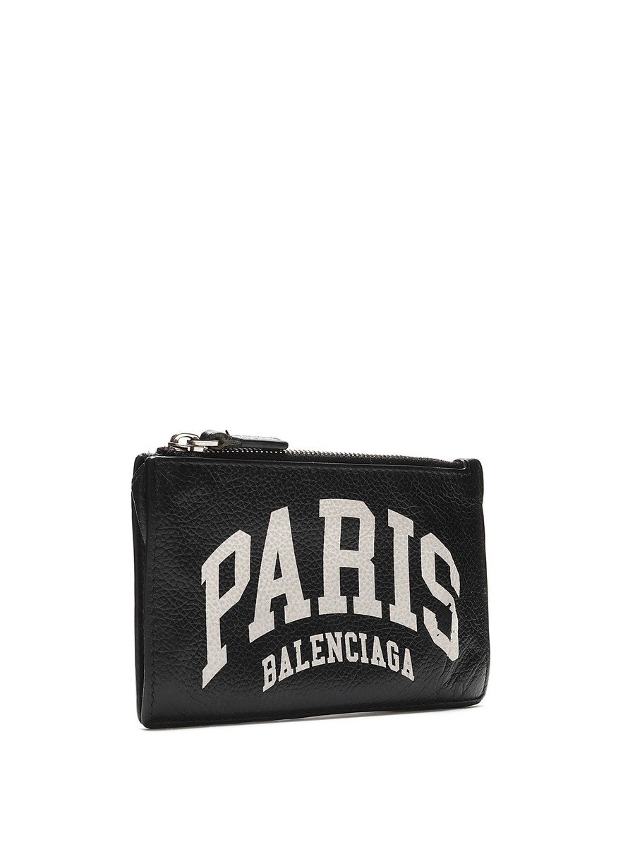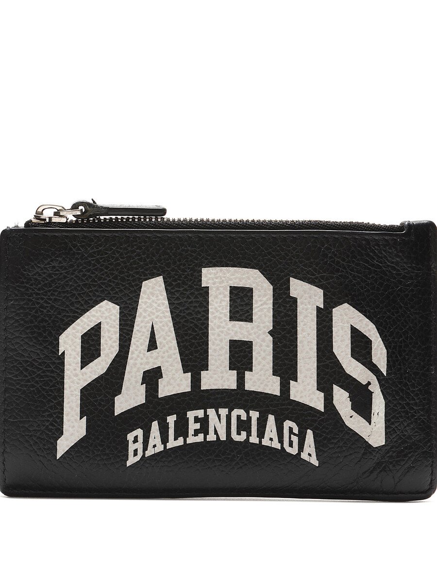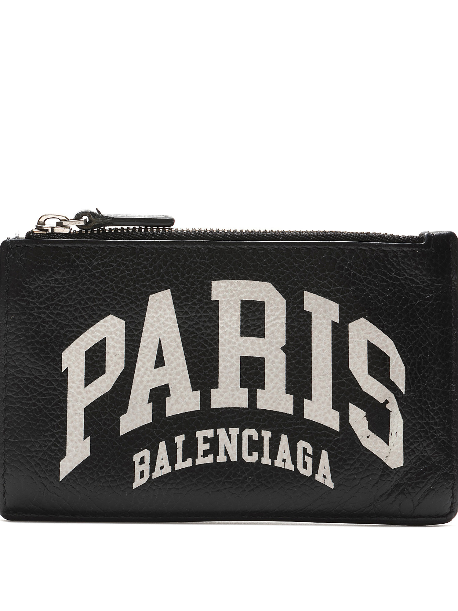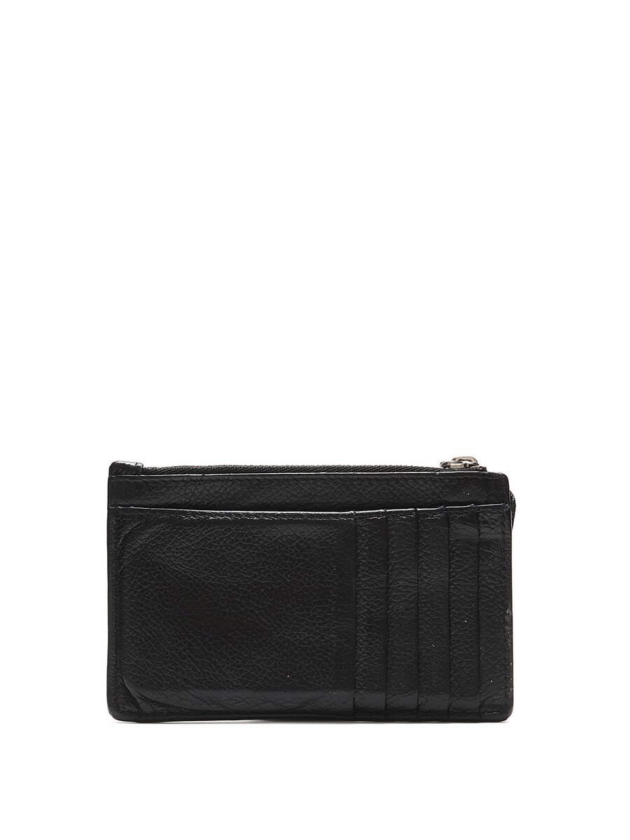 Porte-cartes en cuir grainé noir à motif logo. Fermeture à glissière argentée.