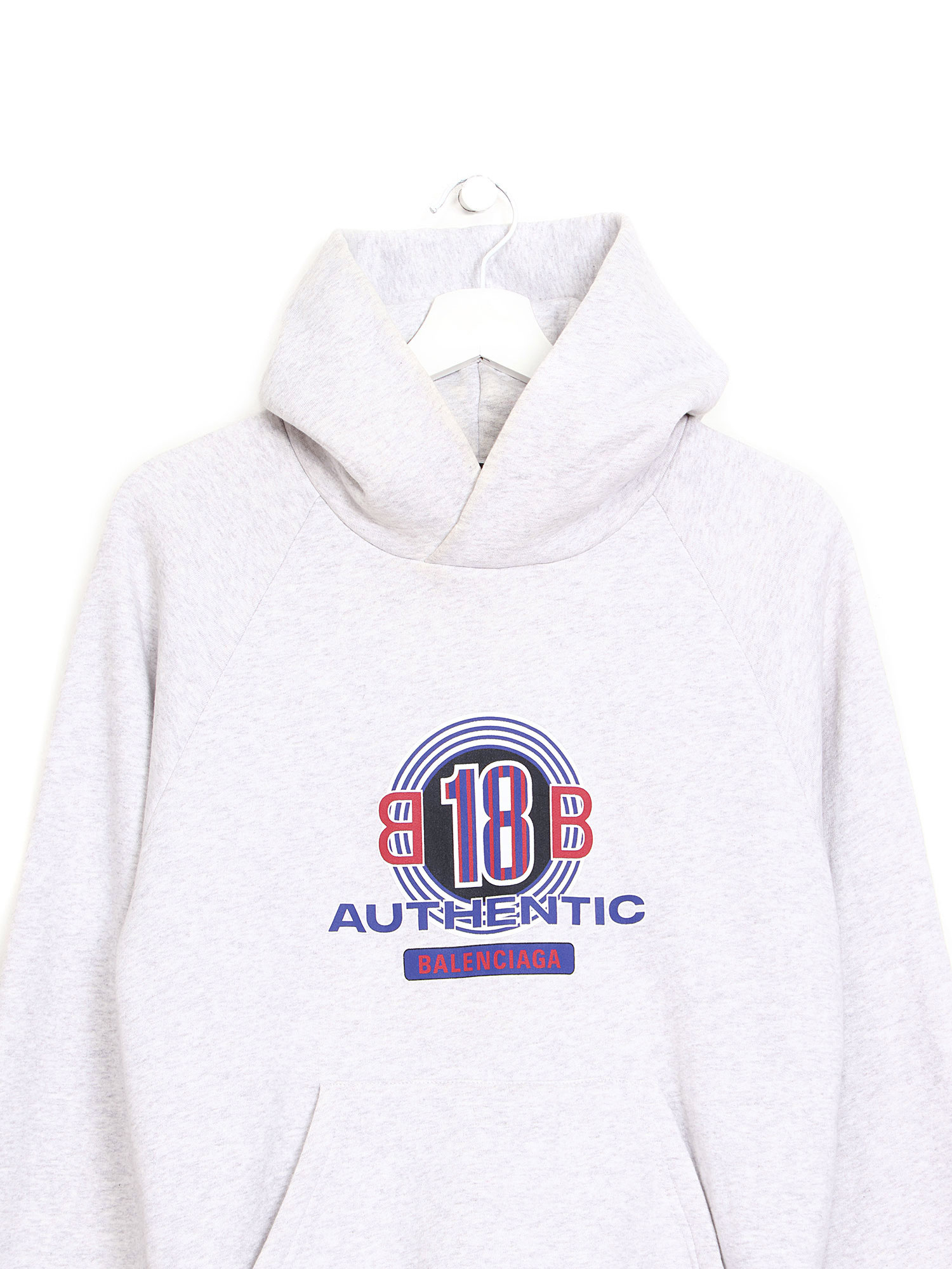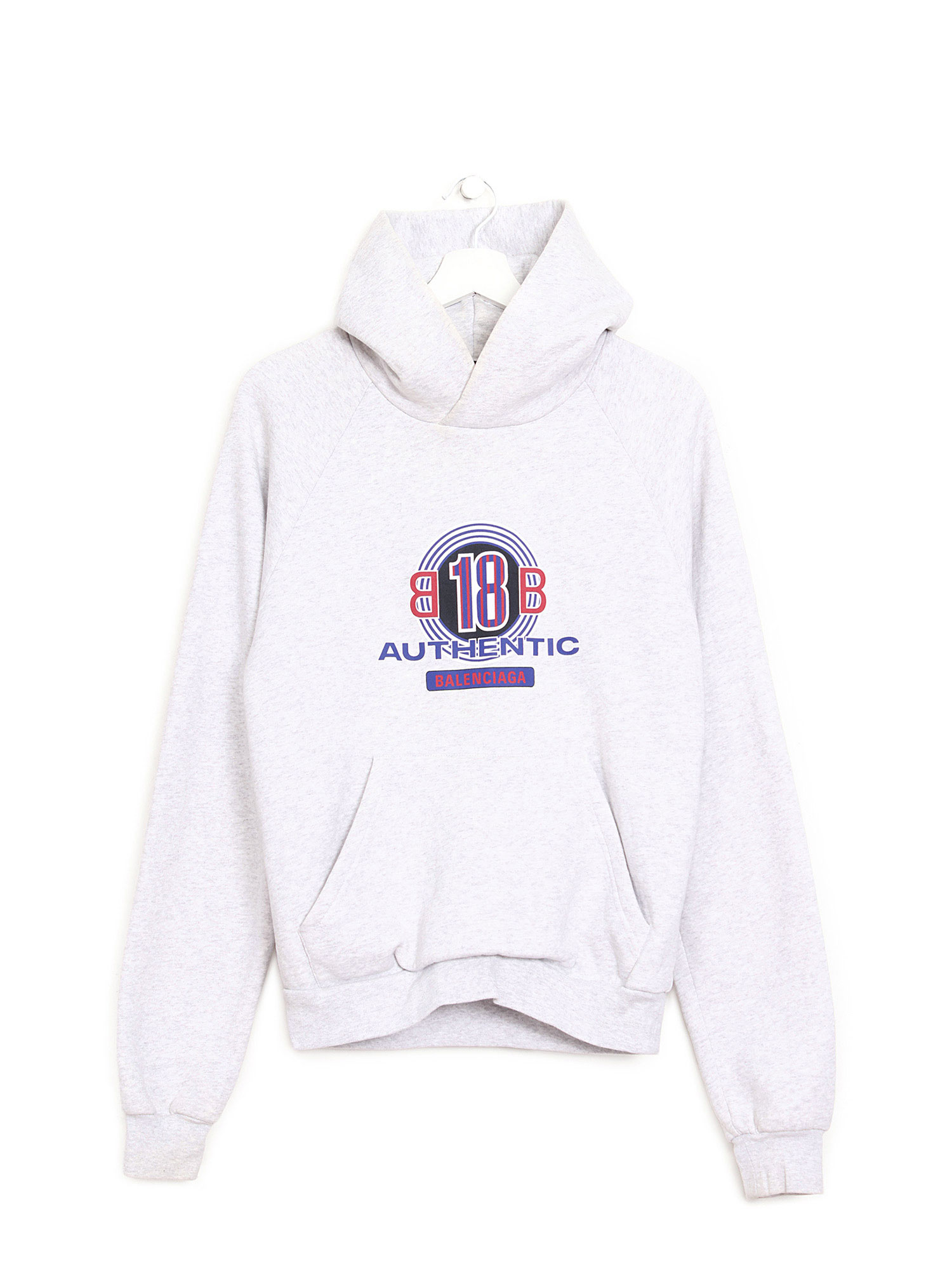 Hoodie gris à imprimé graphique. Manches longues et coupe ample. Poignets et ourlet côtelés.