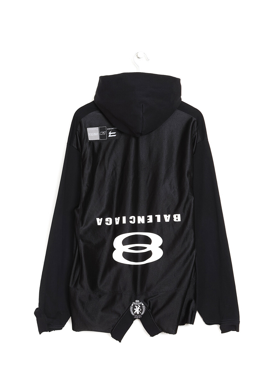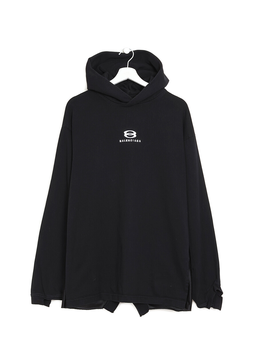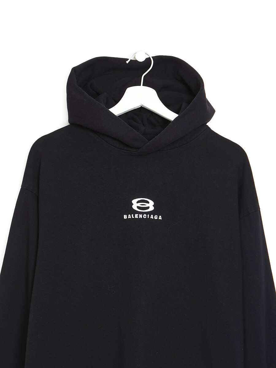 Sweatshirt à manches longues noir avec col montant. Logo Balenciaga affiché en évidence sur le devant. Coupe oversize.