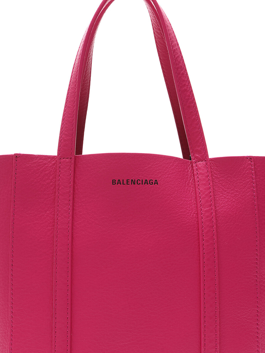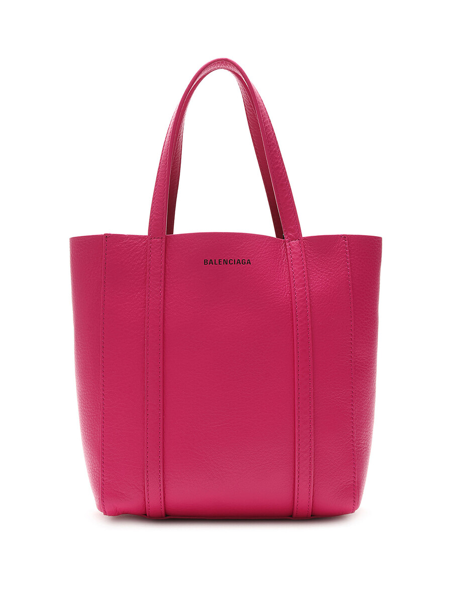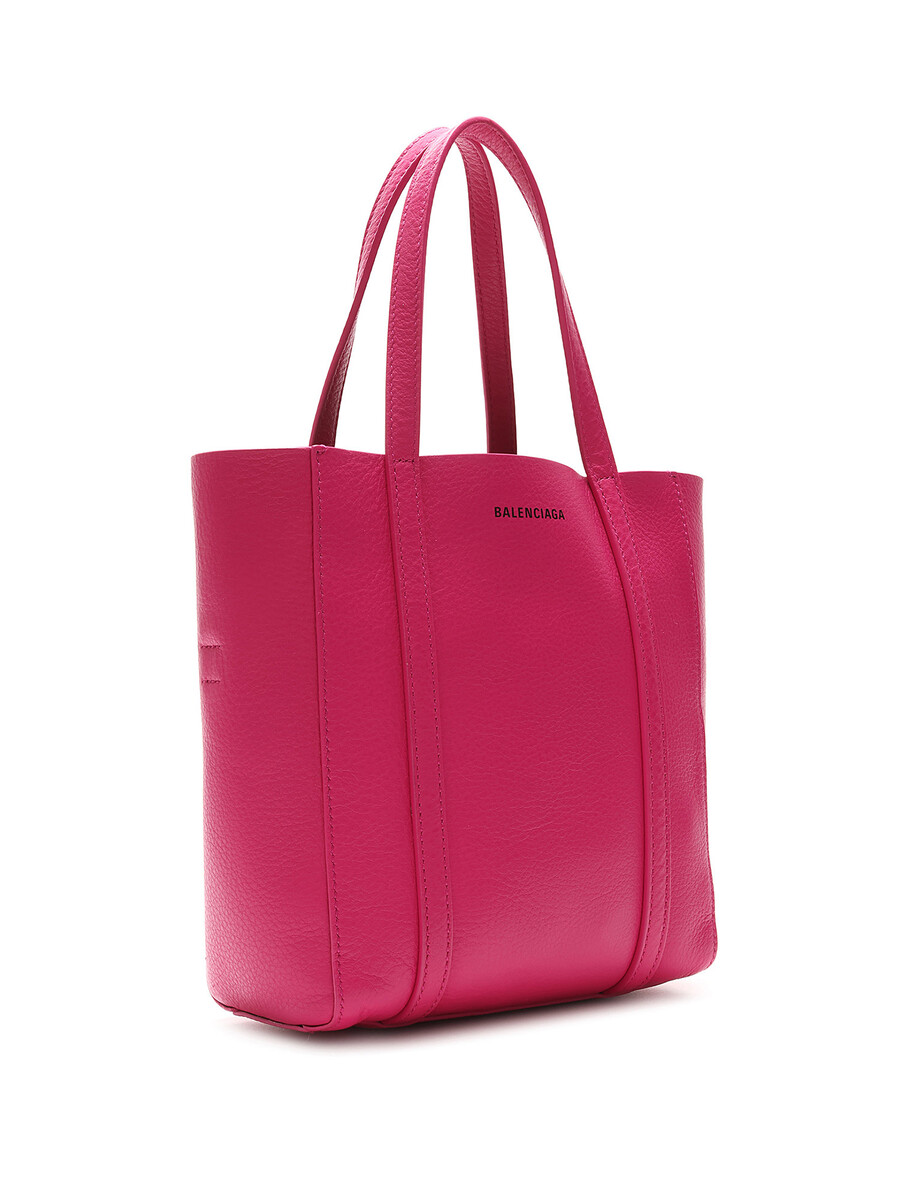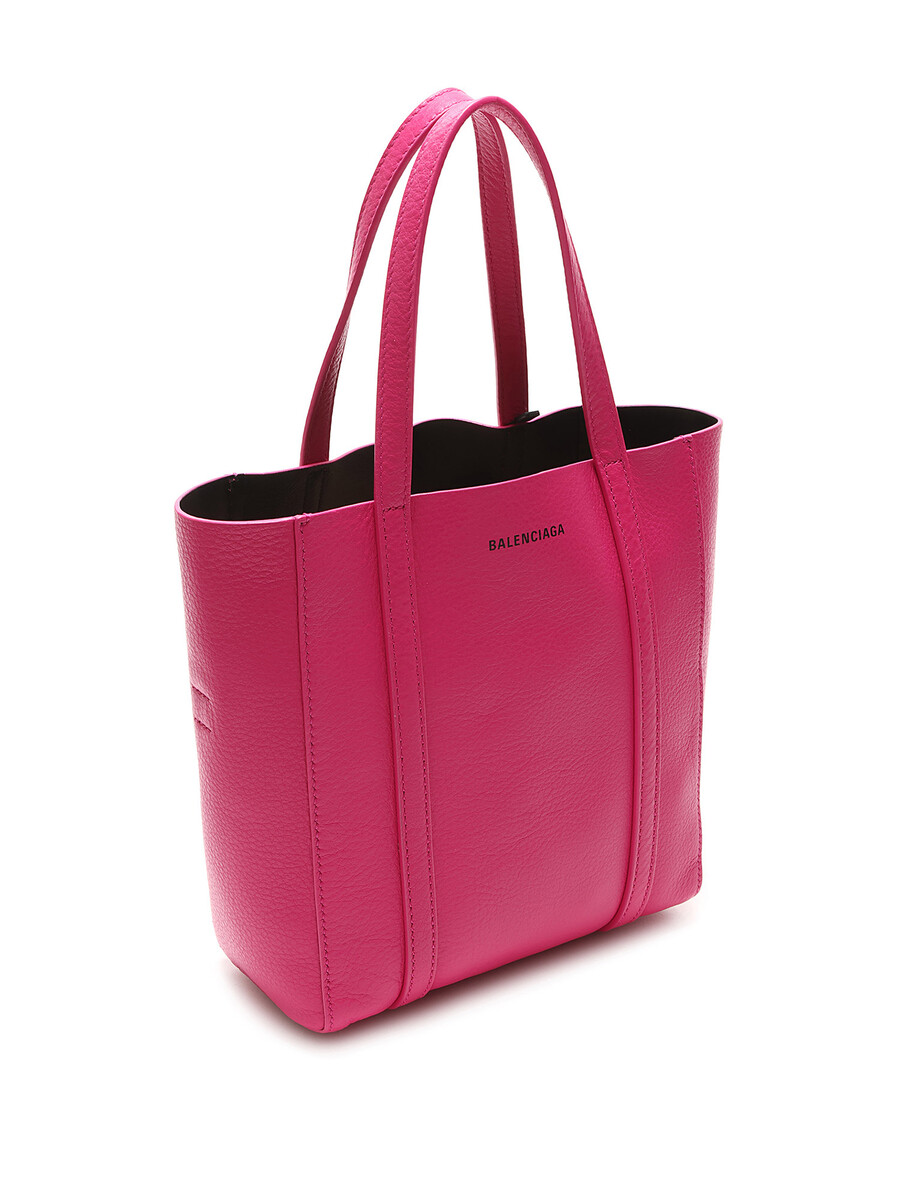 Mini sac à main en cuir fuchsia éclatant. Haut ouvert avec fermeture à cordon. Poignées doubles et bandoulière amovible.