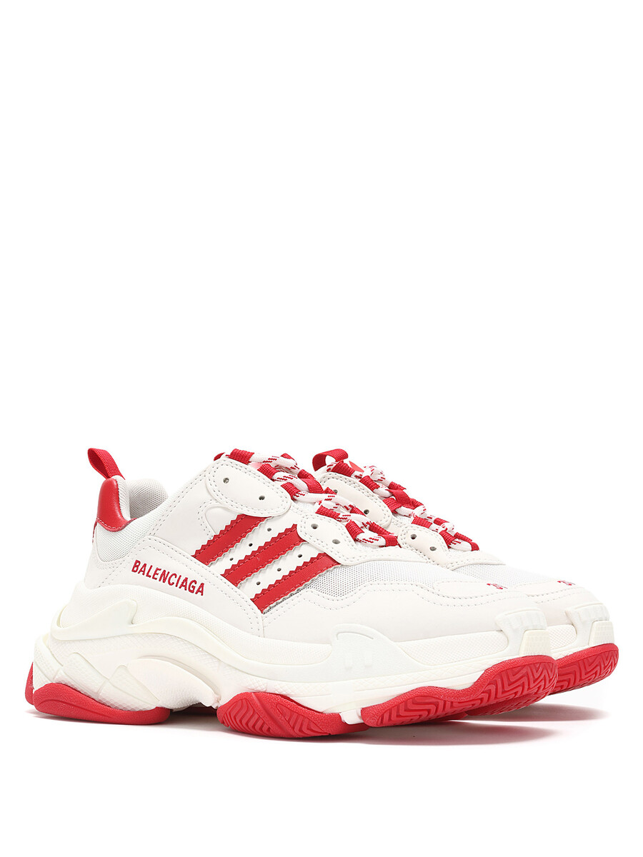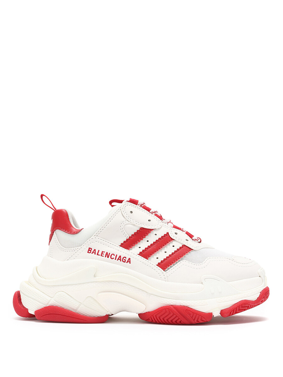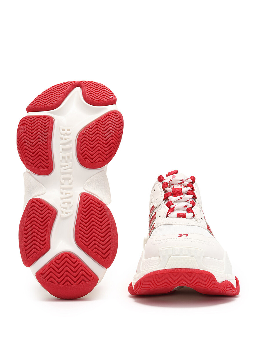 Espadrilles basses à multiples panneaux dans les tons de blanc et rouge. Fermeture à lacets. Style bout rond. Semelle en caoutchouc crantée à plateforme. Logo sur le côté.