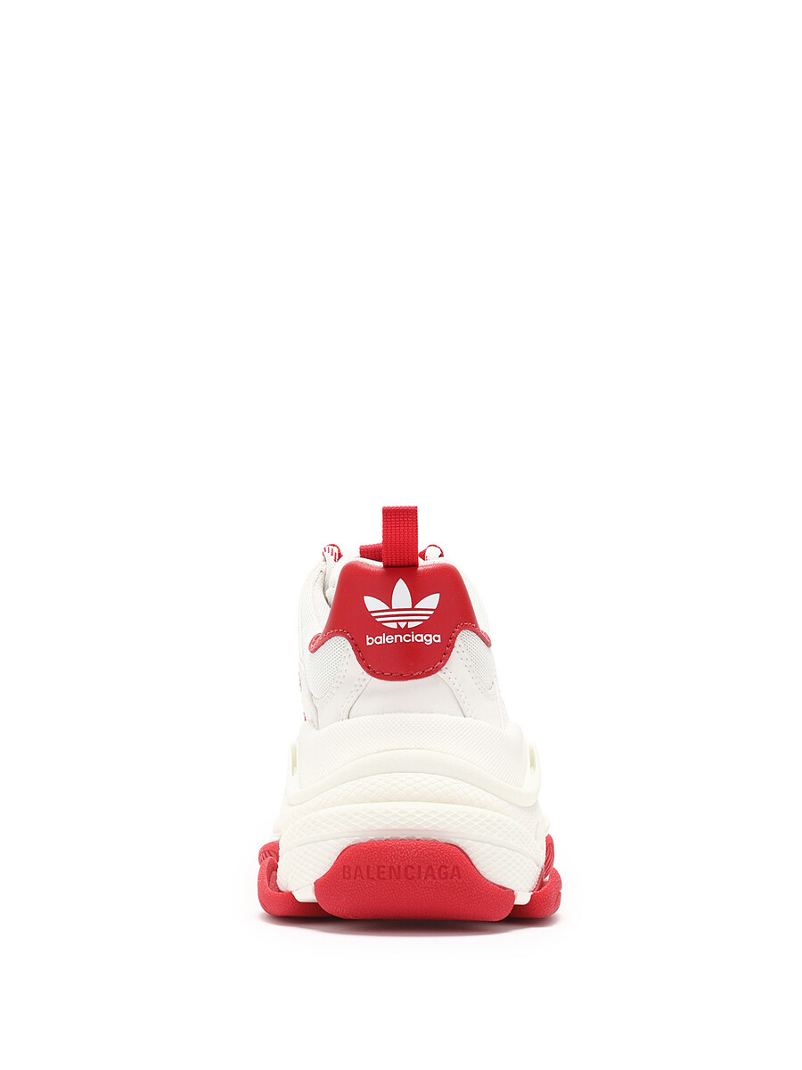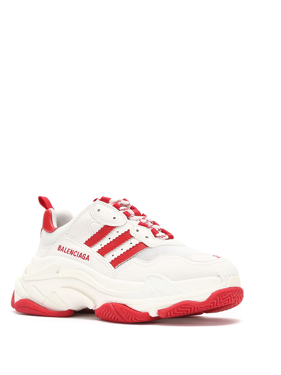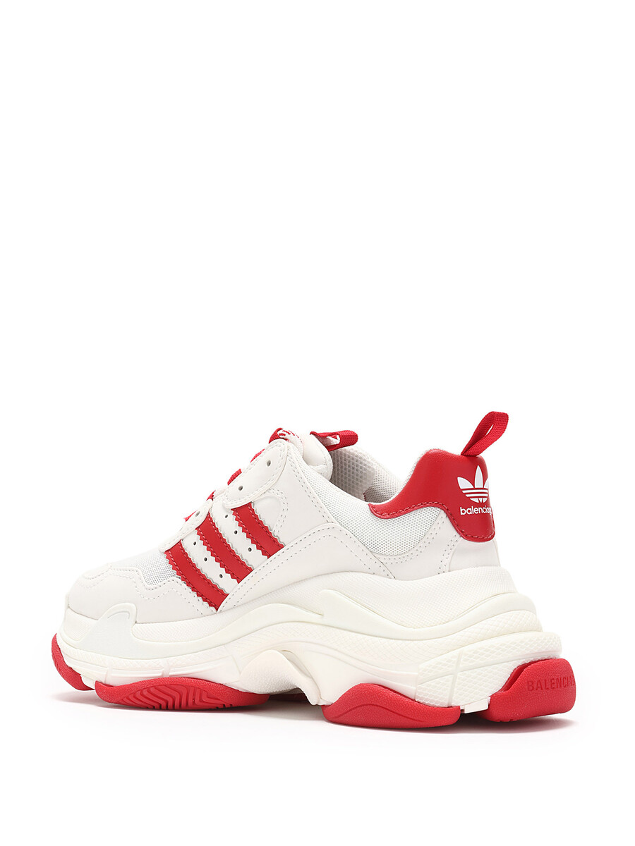 Espadrilles basses à multiples panneaux dans les tons de blanc et rouge. Fermeture à lacets. Style bout rond. Semelle en caoutchouc crantée à plateforme. Logo sur le côté.