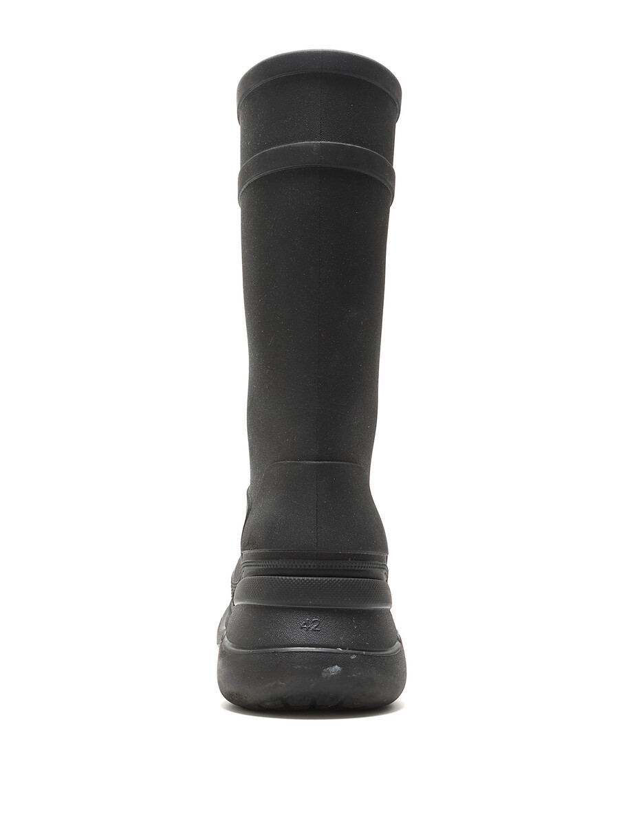 Bottes à enfiler en caoutchouc noir mat. Bout rond avec fermeture à glissière latérale. Semelle en caoutchouc texturée.