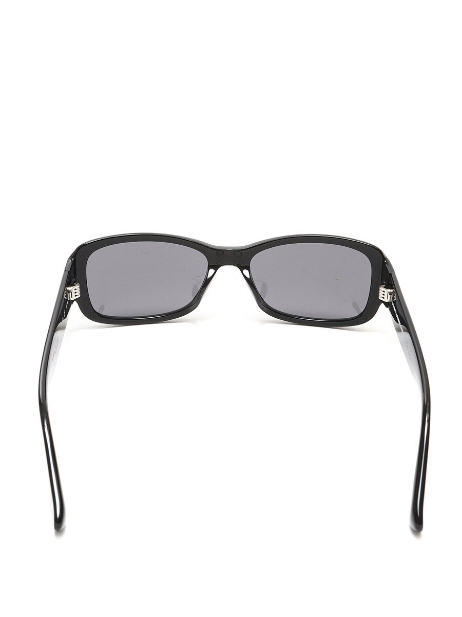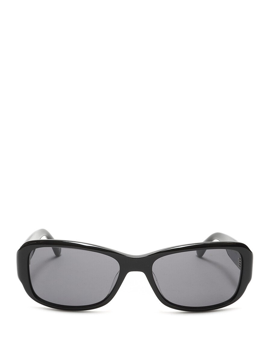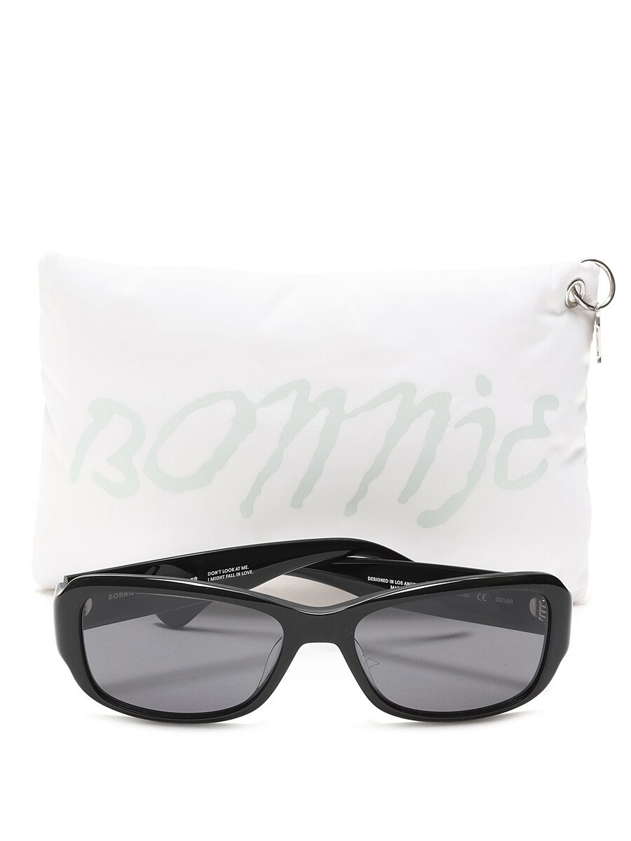 Lunettes de soleil rectangulaires en acétate noir avec logo imprimé à l'intérieur des branches.