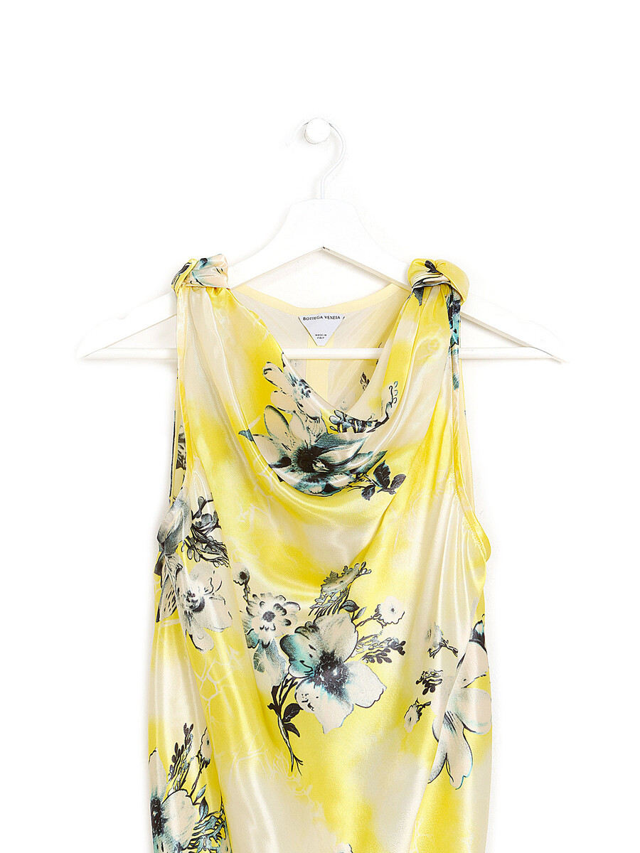Robe maxi à enfiler sans manches avec un imprimé floral abstrait en jaune. Encolure ronde.