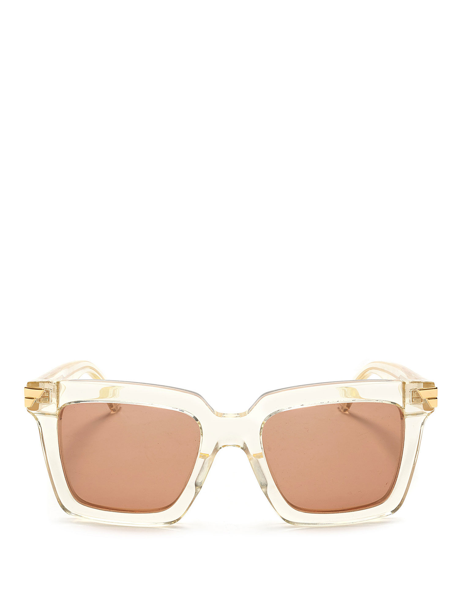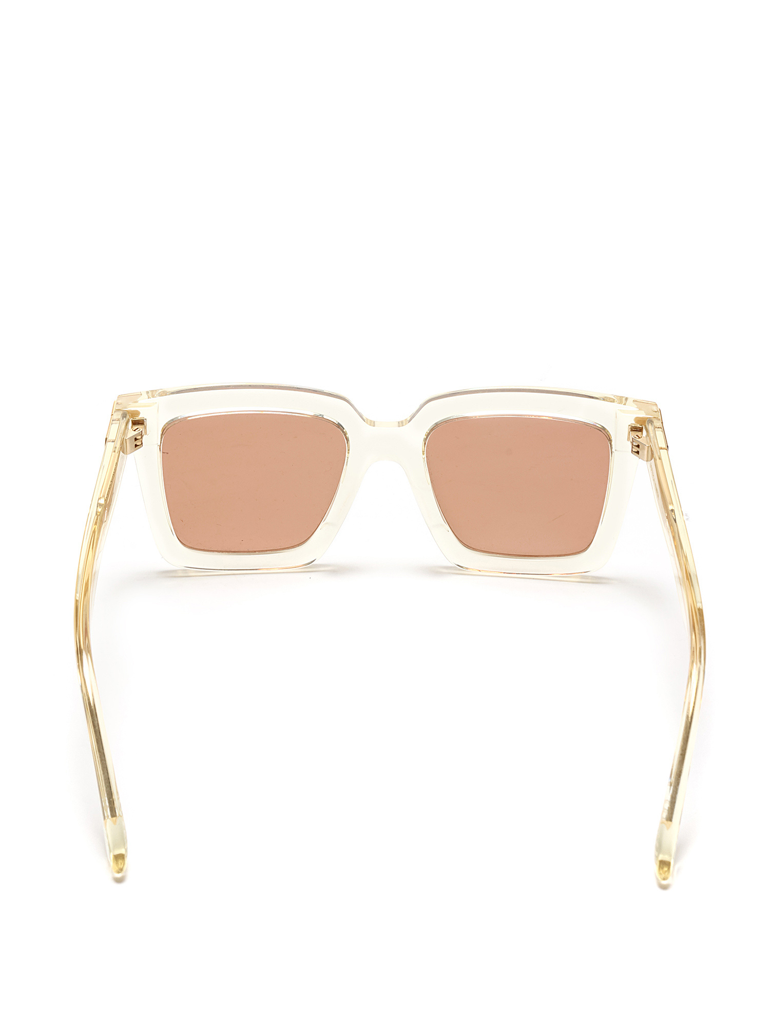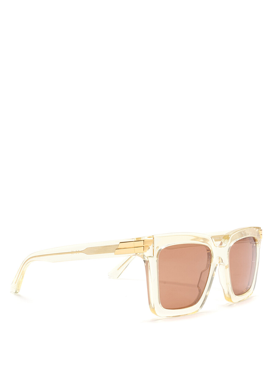Lunettes de soleil à monture carrée surdimensionnée en jaune transparent avec verres bruns, offrant une protection UV complète.