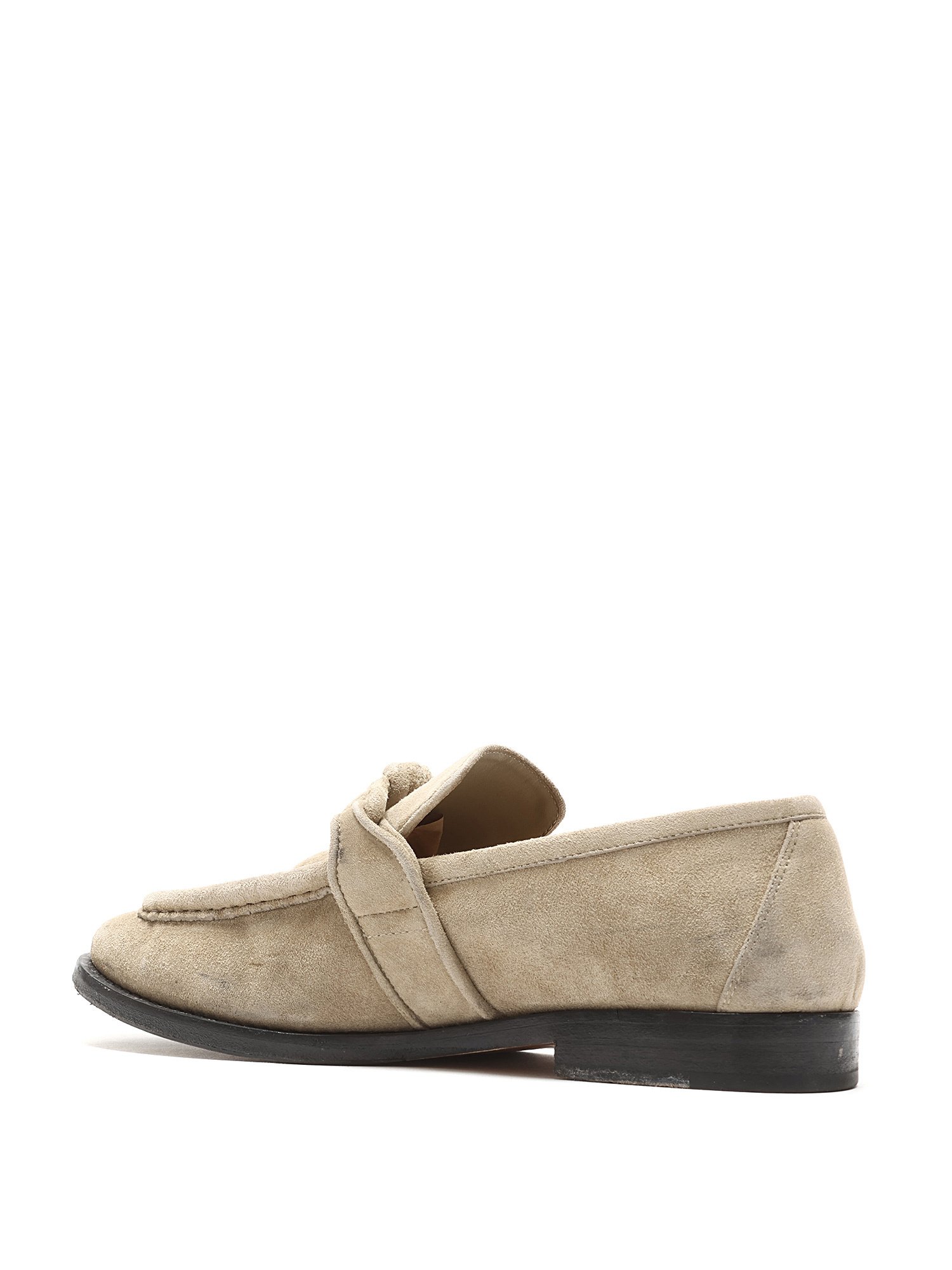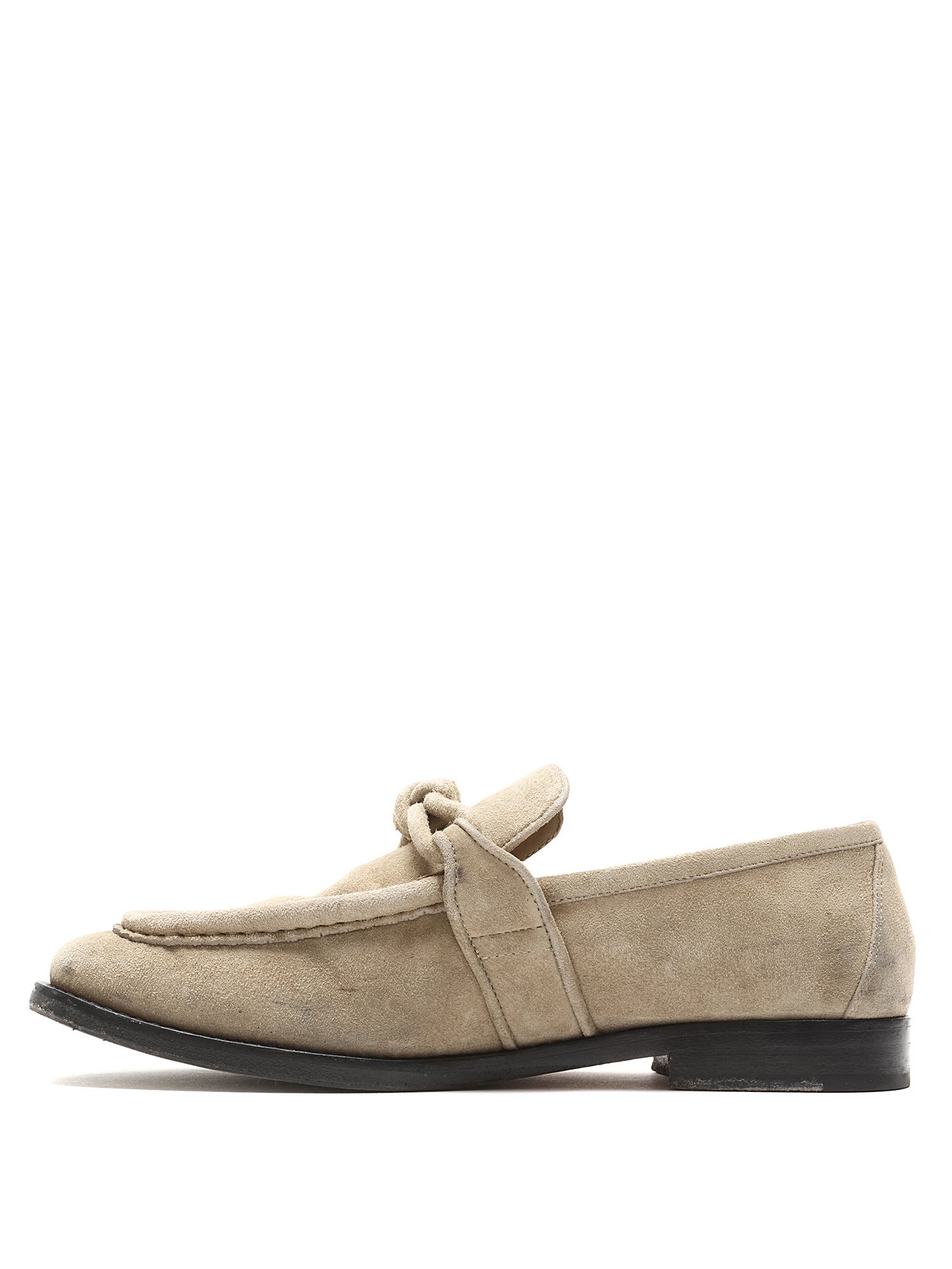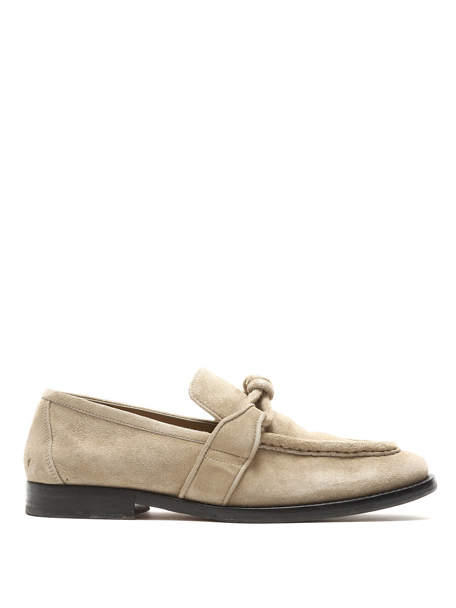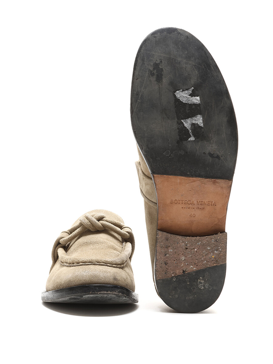 Mocassins en suède khaki avec détail de nœud. Bout rond. Semelle en cuir. Avec dust bag.