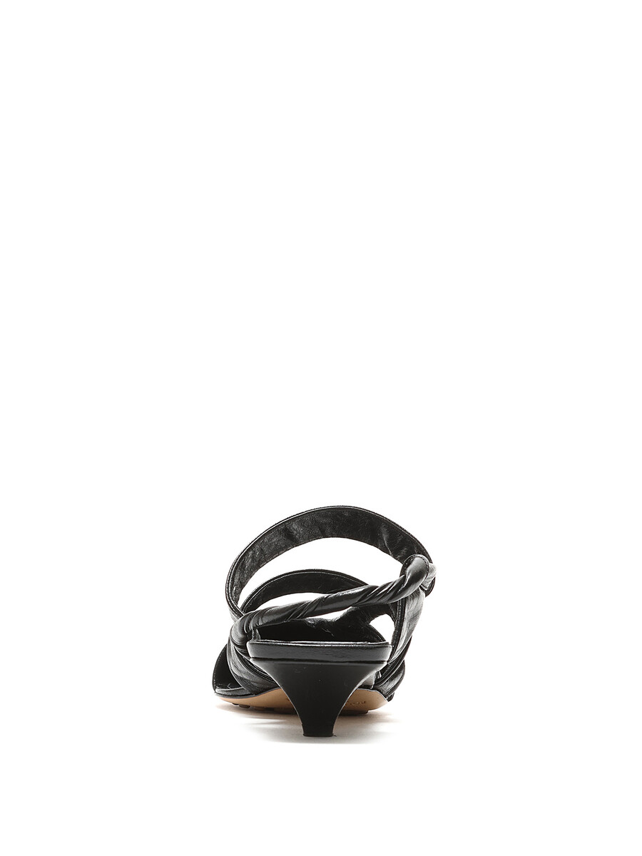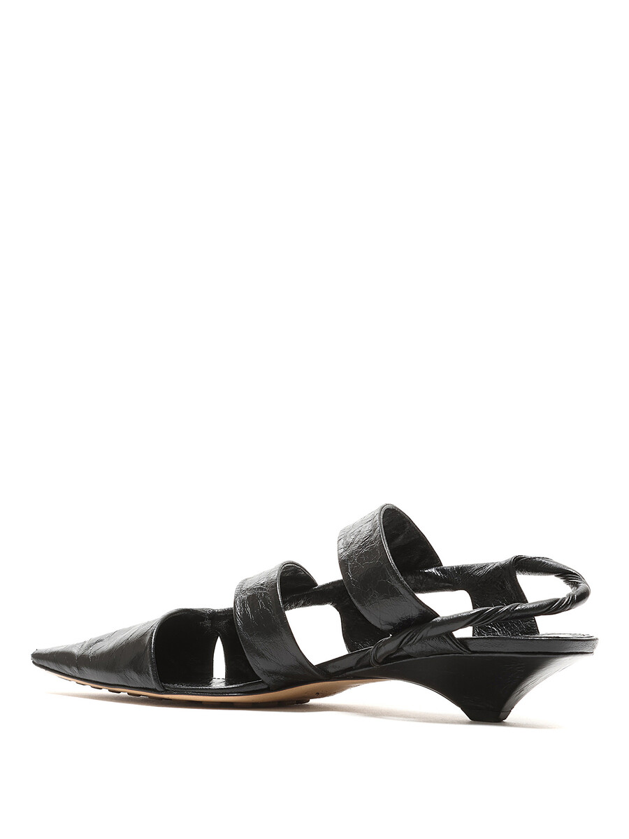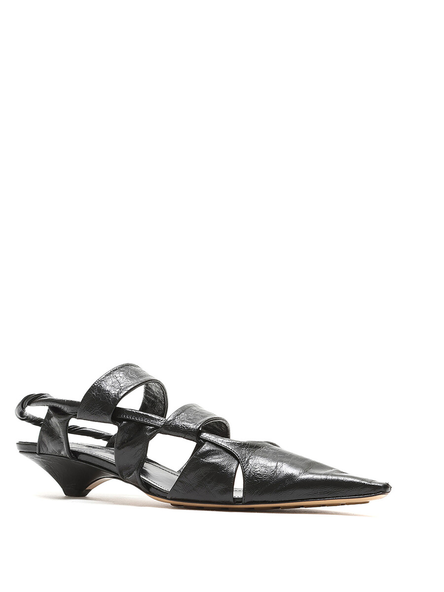 Escarpins à talons en cuir grainé noir. Fermeture à boucle. Bout pointu. Semelle en cuir.