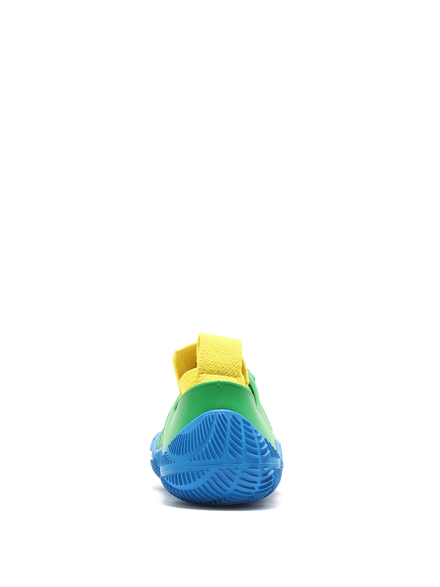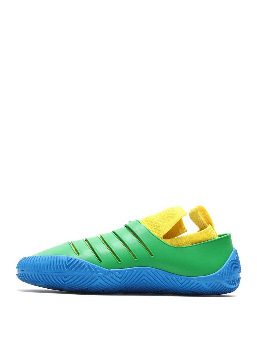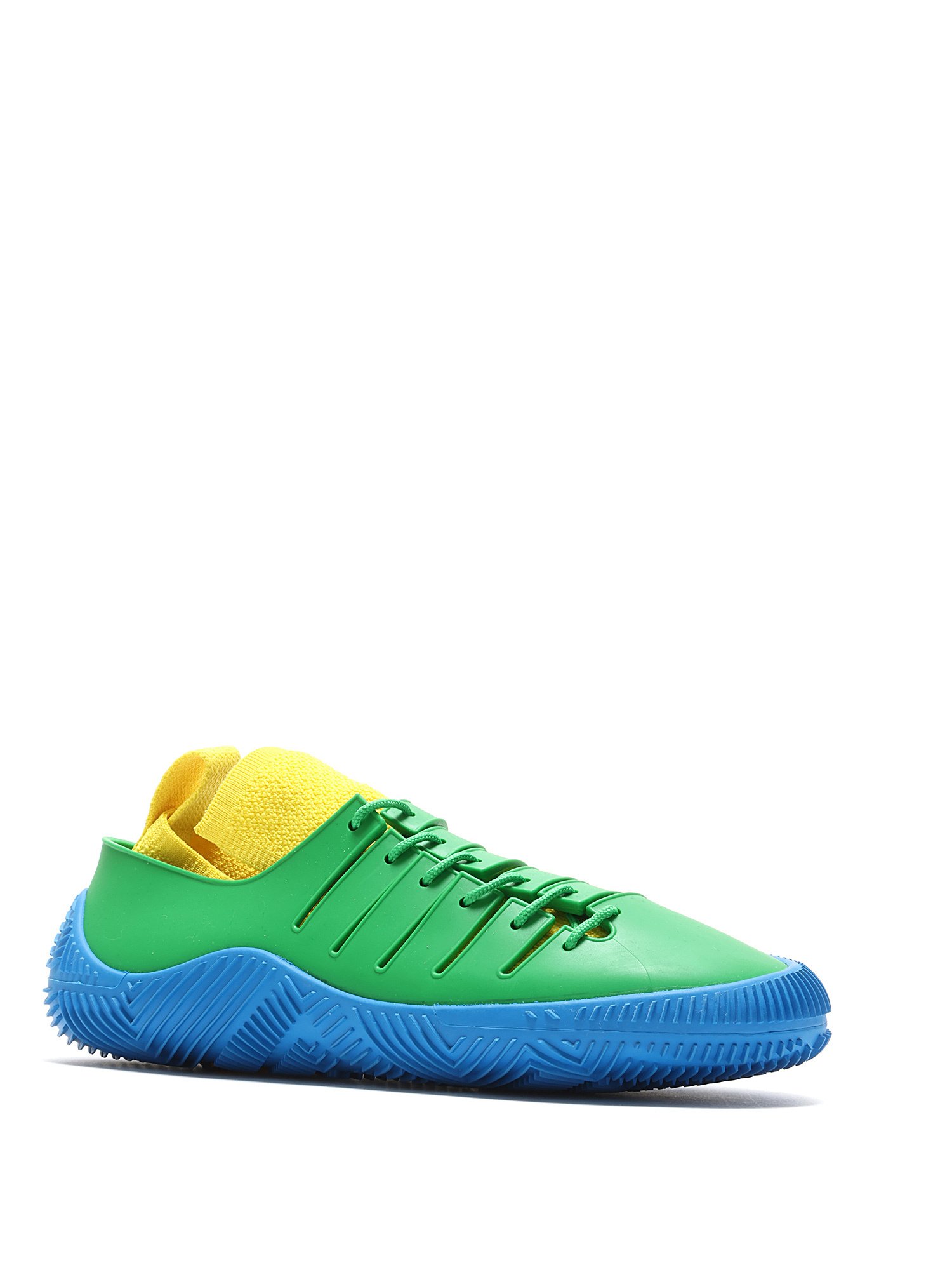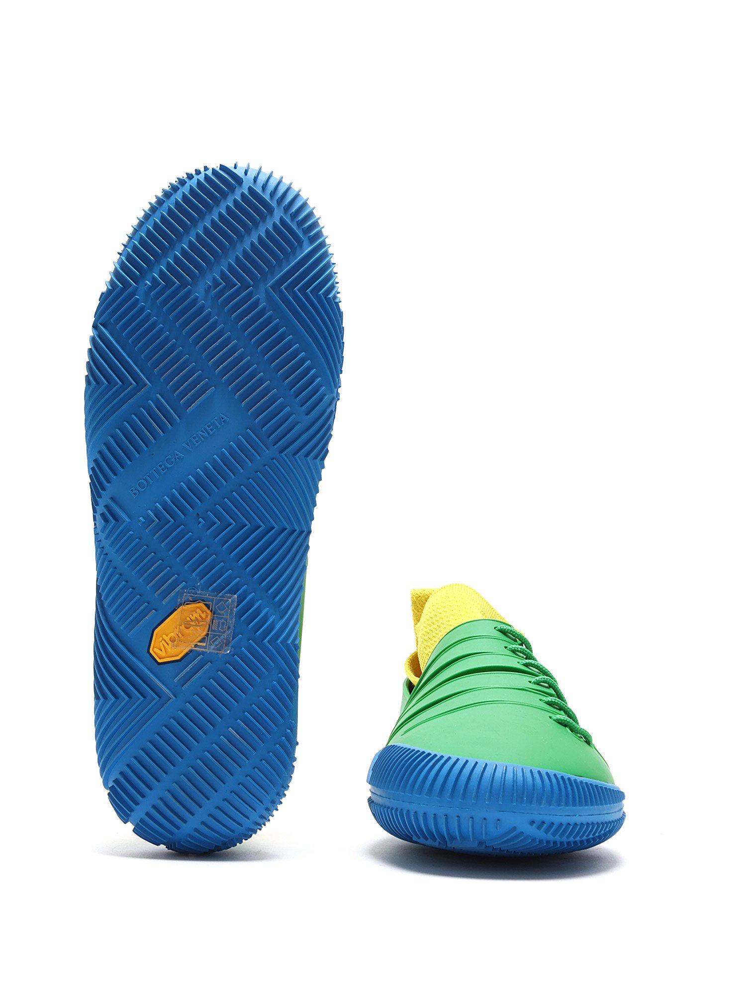 Baskets basses en caoutchouc à panneaux de couleurs vives bleu, vert et jaune. Fermeture à lacets. Bout rond. Semelle en caoutchouc robuste.