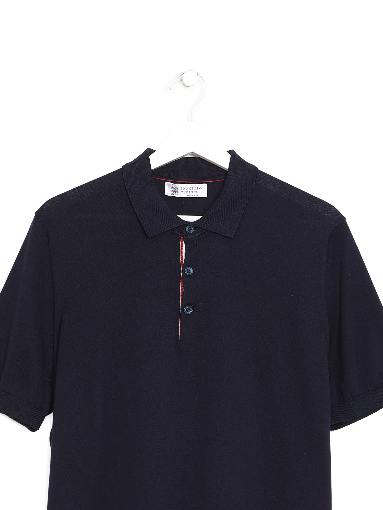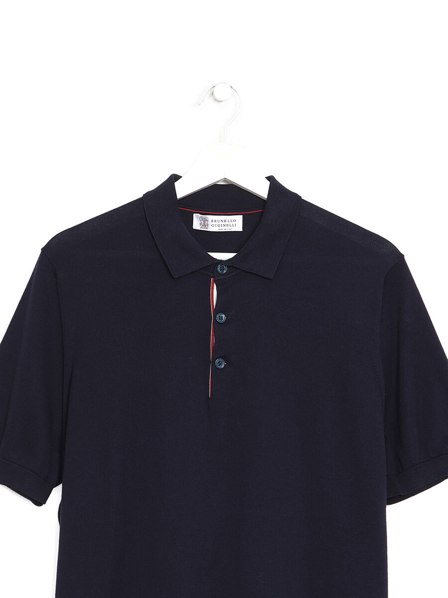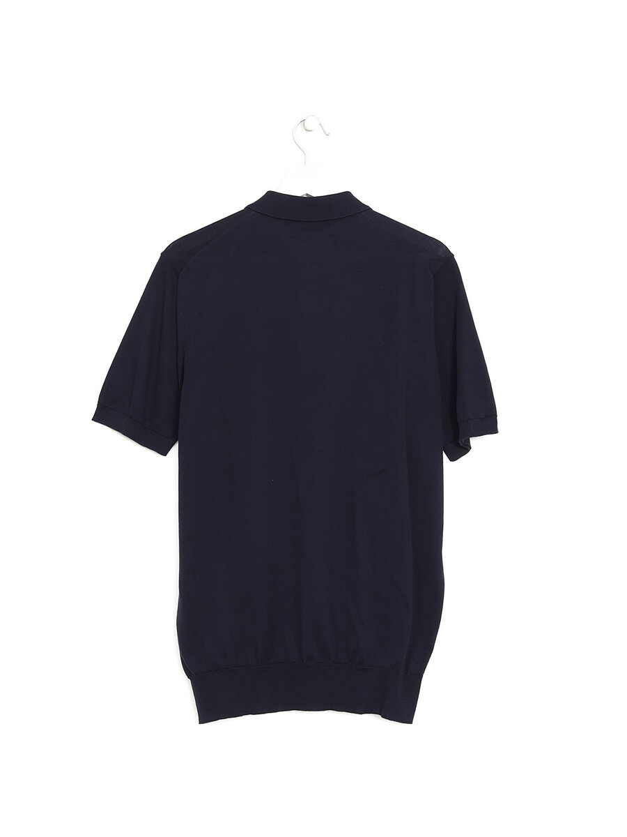 Polo bleu marine en tricot de coton à manches courtes. Col classique. Construction en tricot léger.