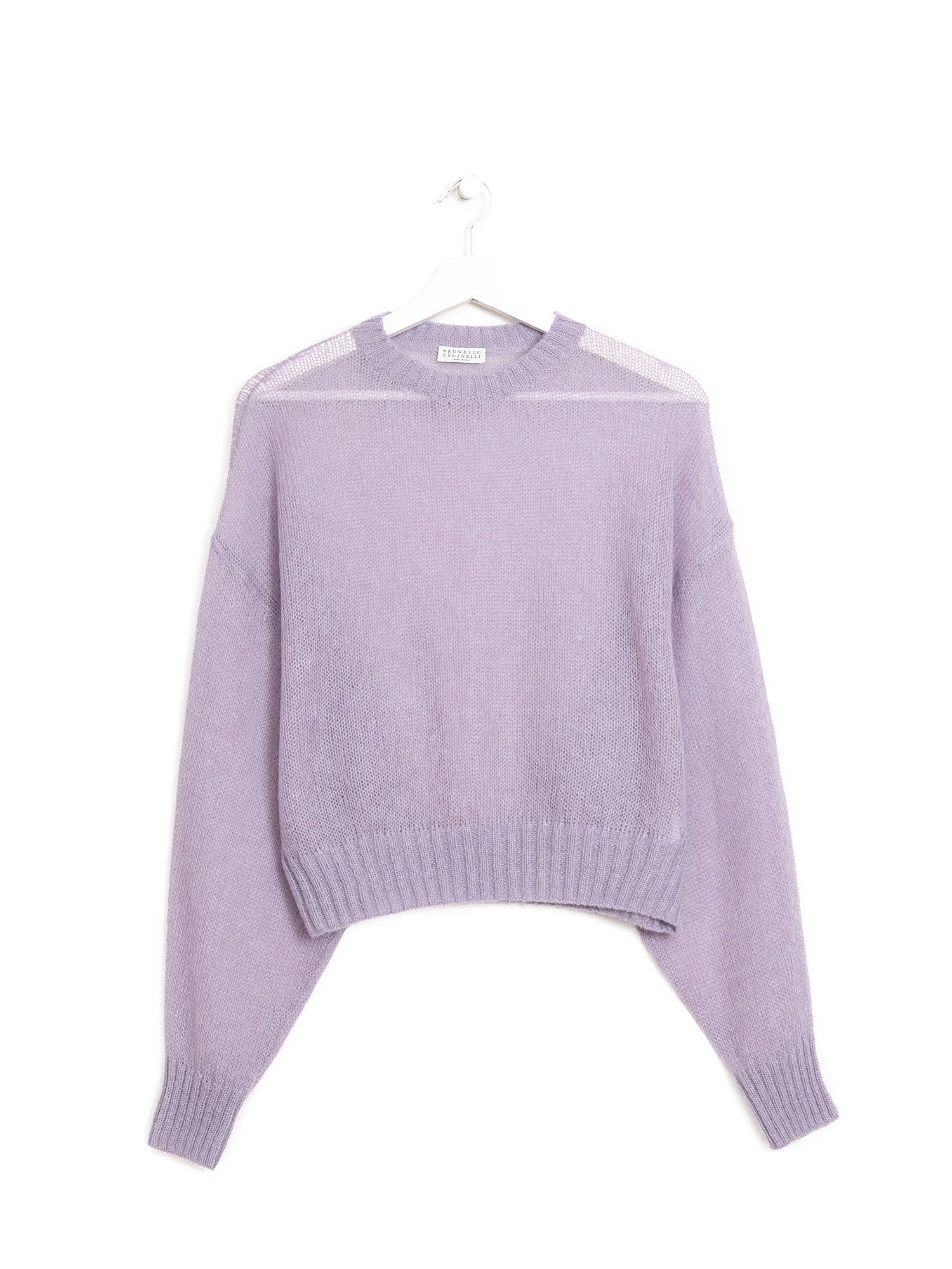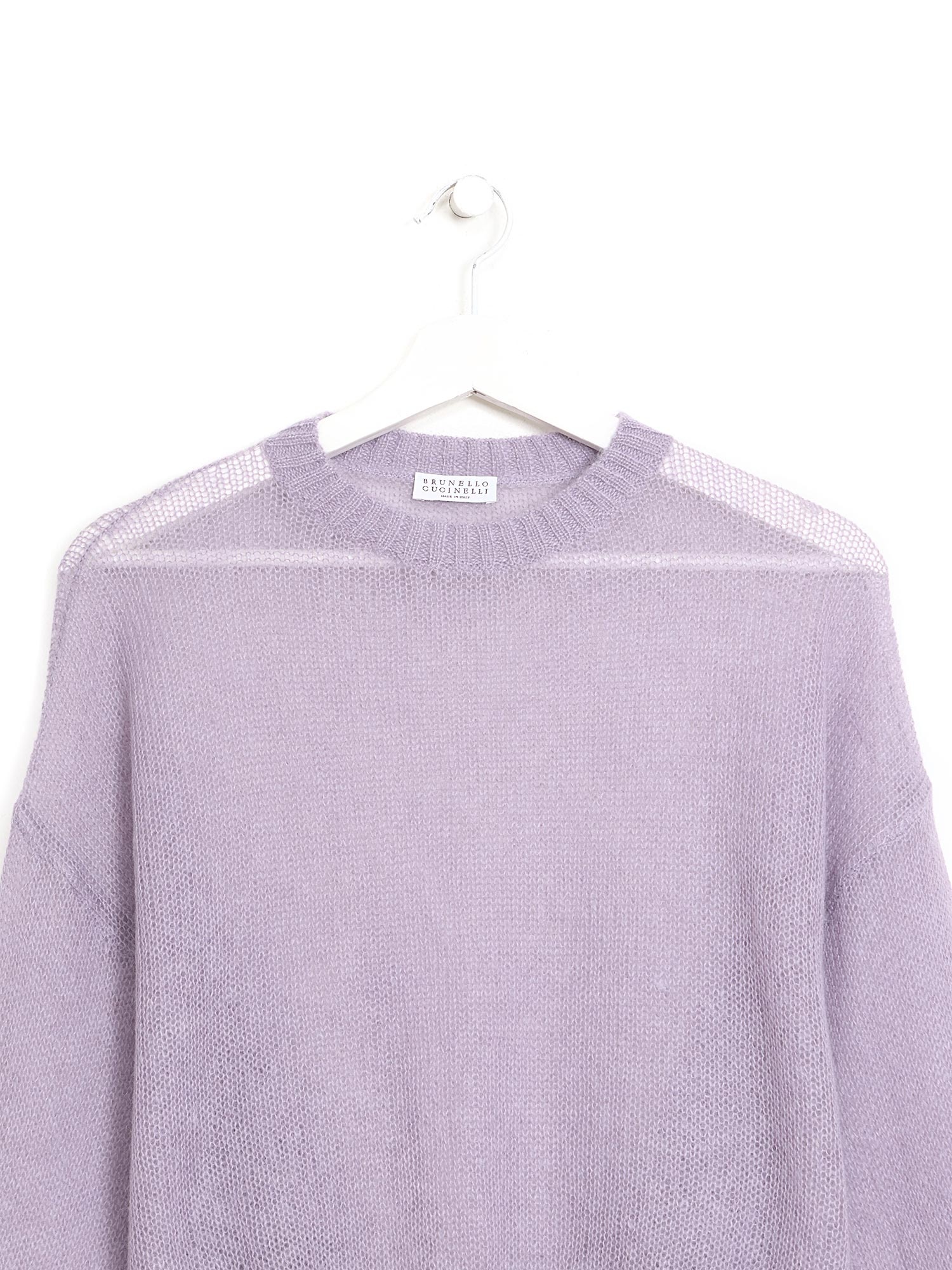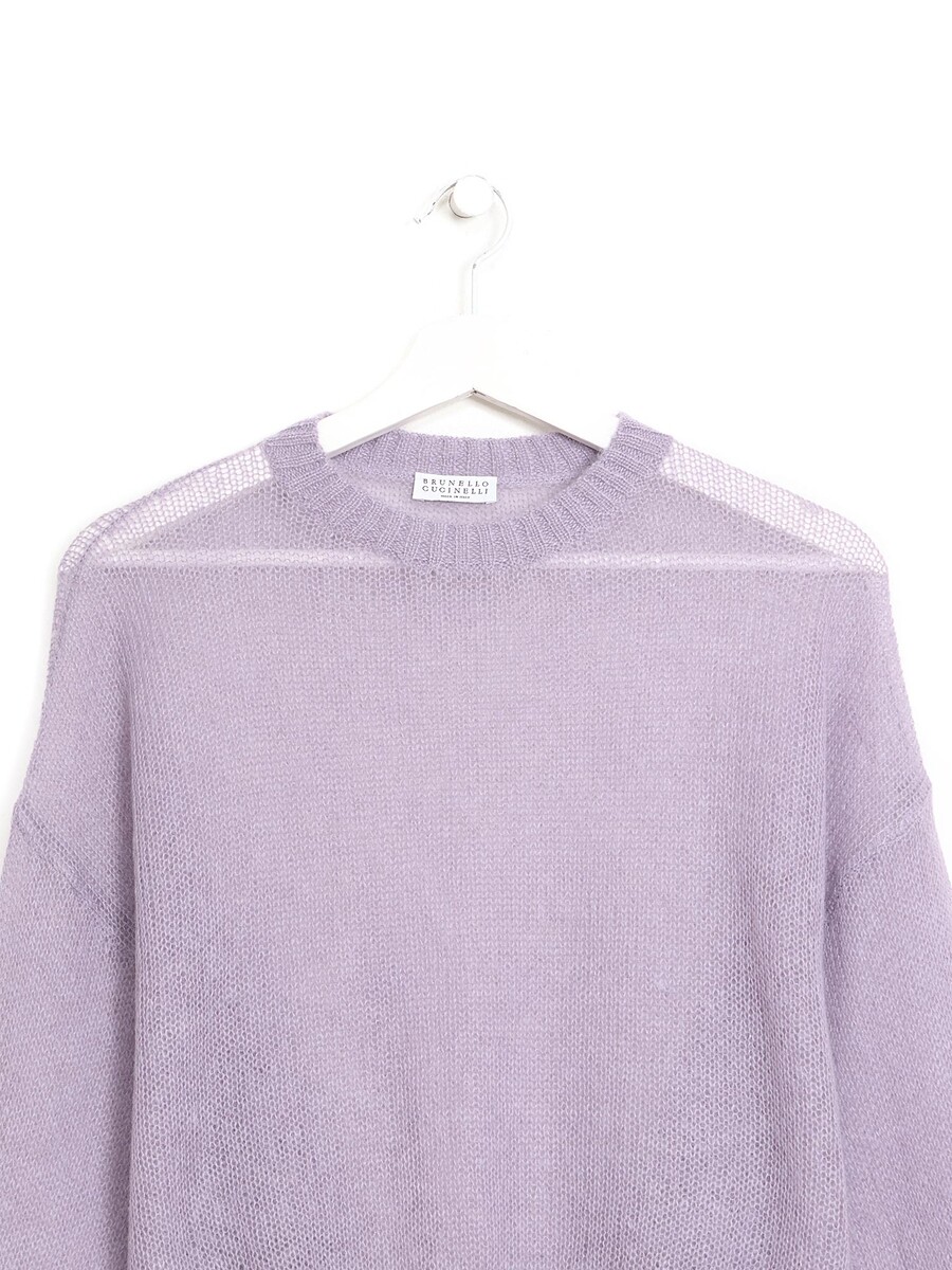 Chandail en tricot de mohair dans une douce teinte mauve.