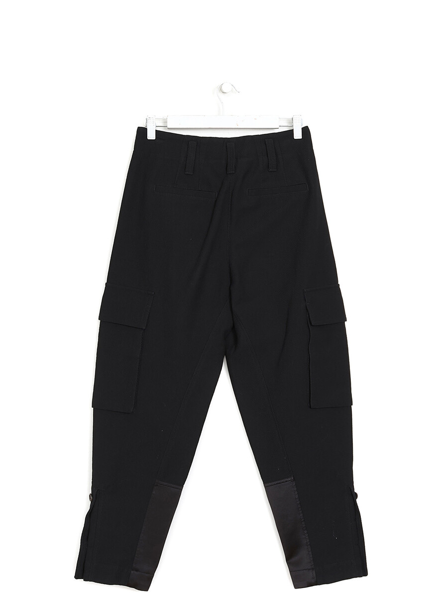 Pantalon cargo noir en mélange de coton. Poches cargo latérales et coupe décontractée.