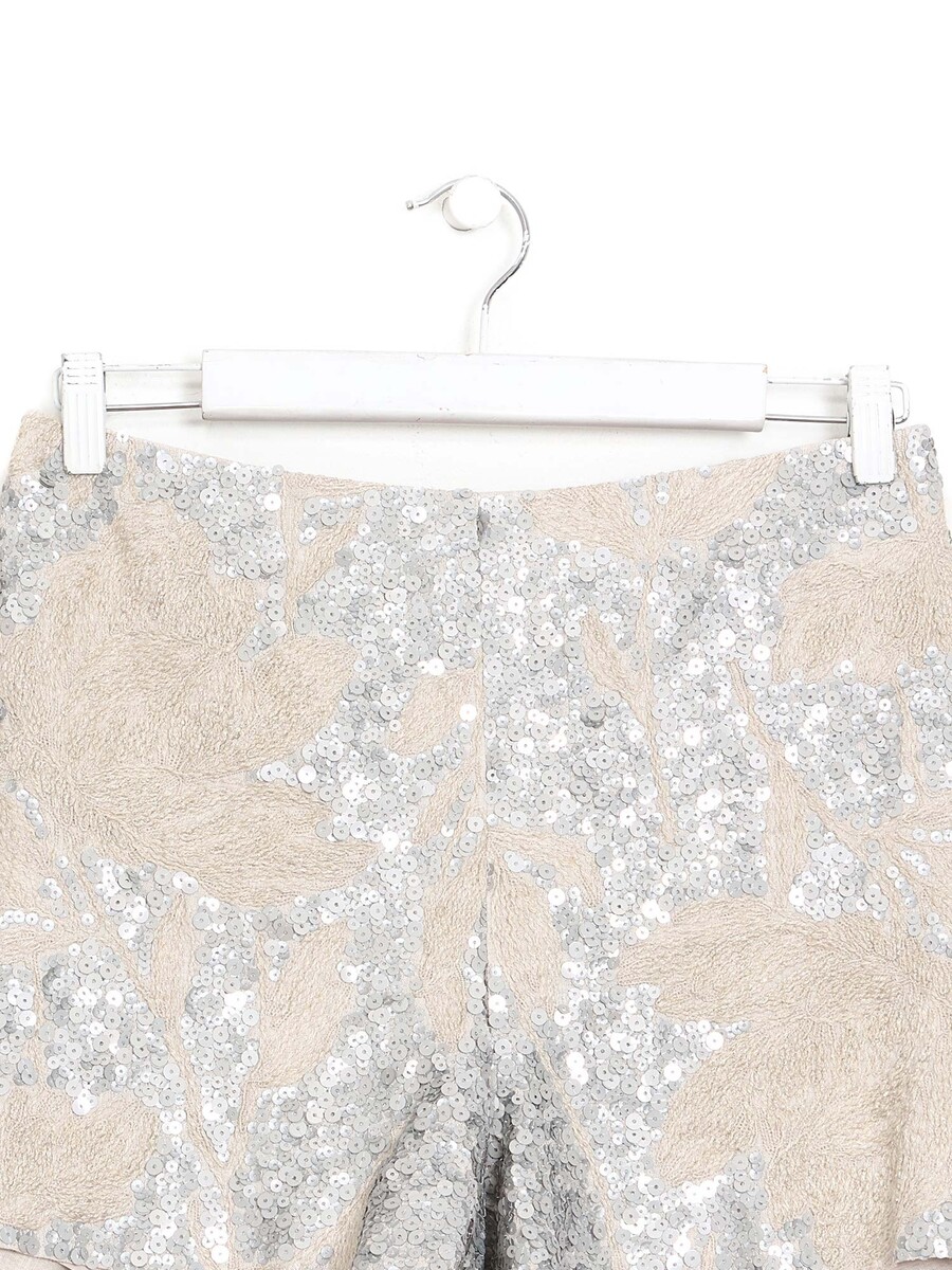 Shorts en lin ornés de sequins. Texture scintillante avec taille élastiquée à cordon de serrage.