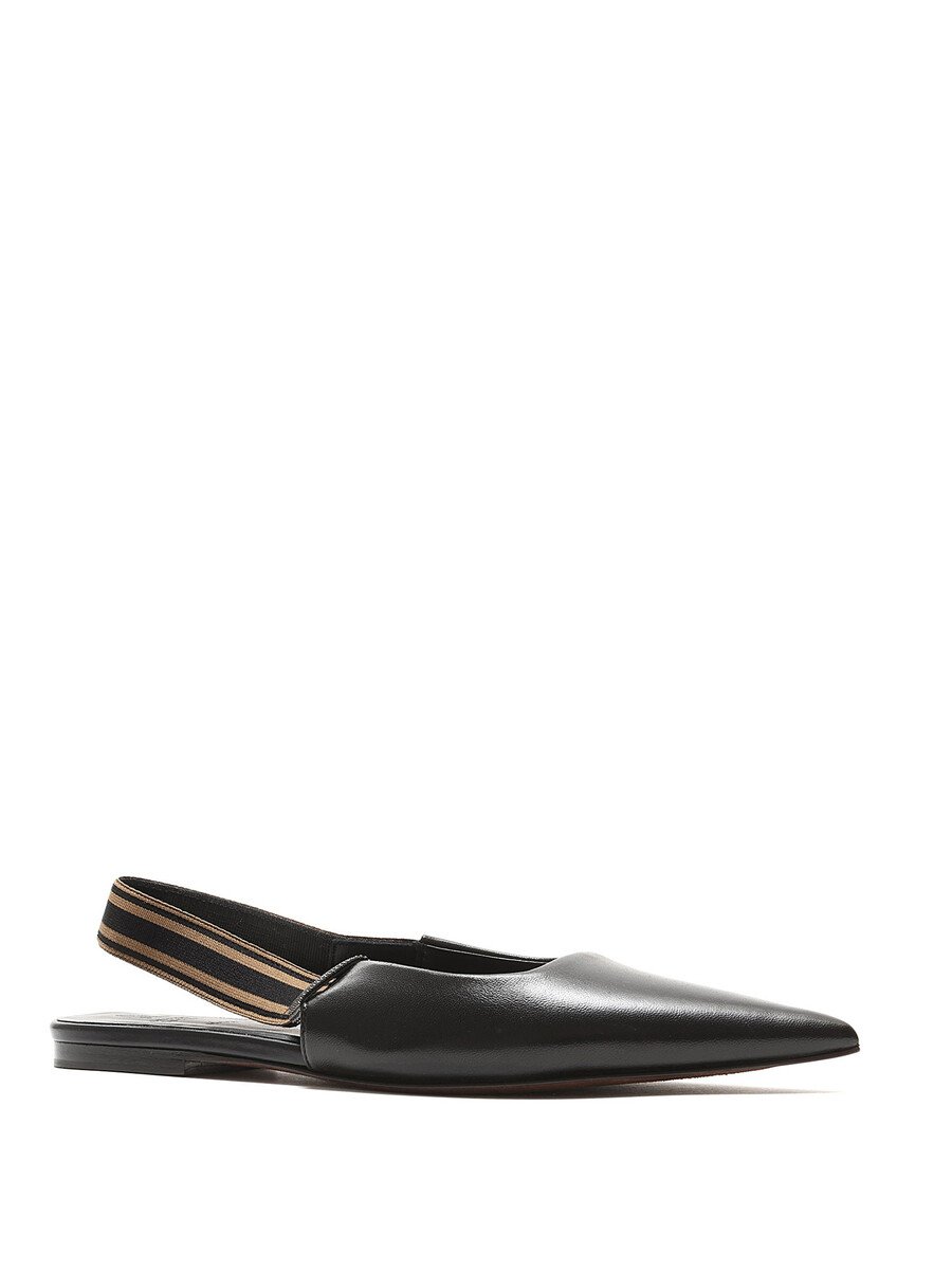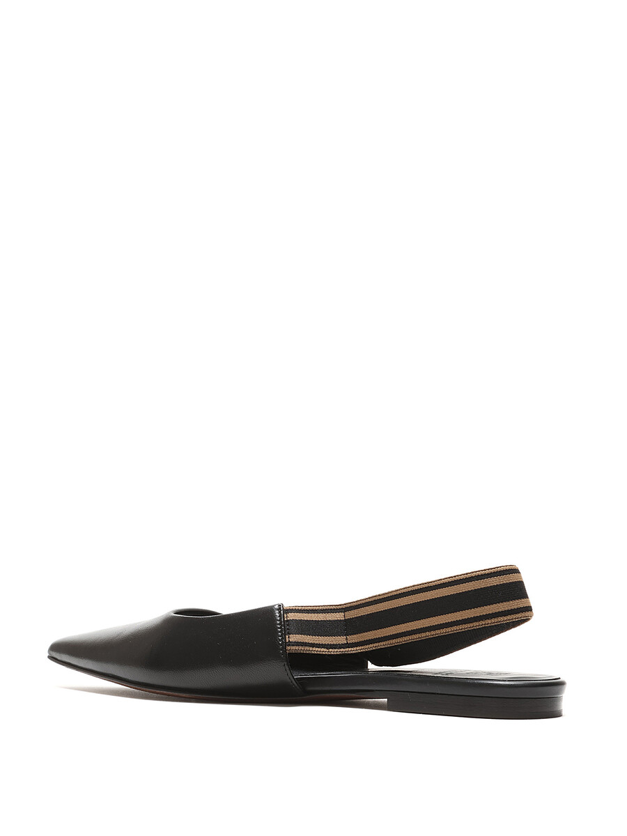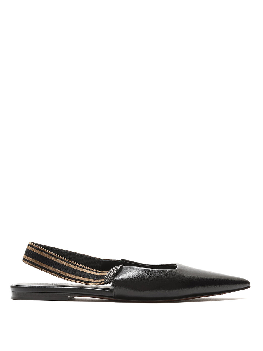 Ballerines slingback en cuir grainé avec bande élastique noire. Bout pointu. Semelle en cuir.