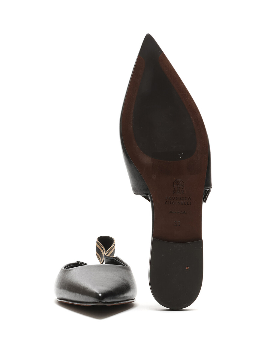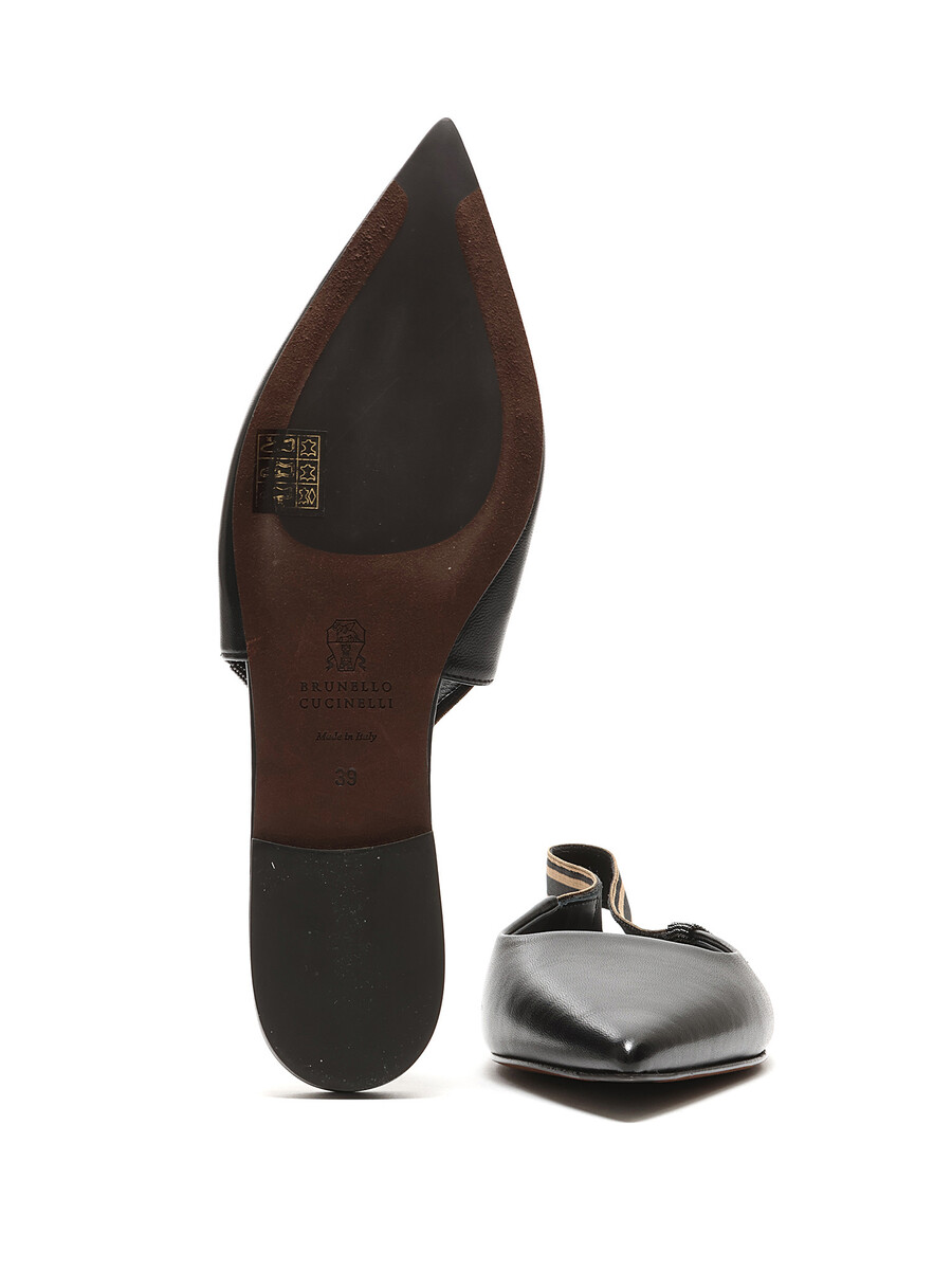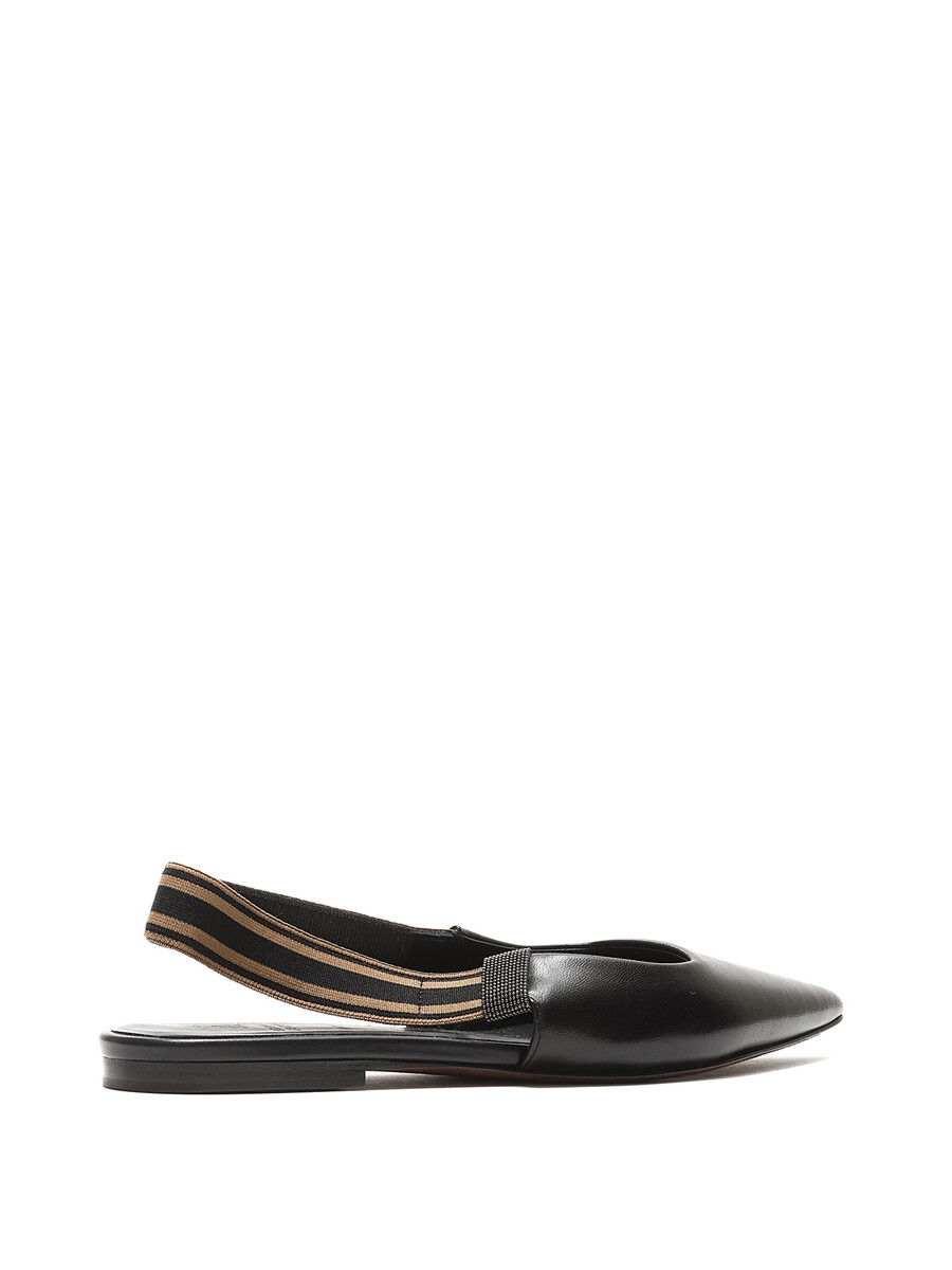 Ballerines slingback en cuir grainé avec bande élastique noire. Bout pointu. Semelle en cuir.