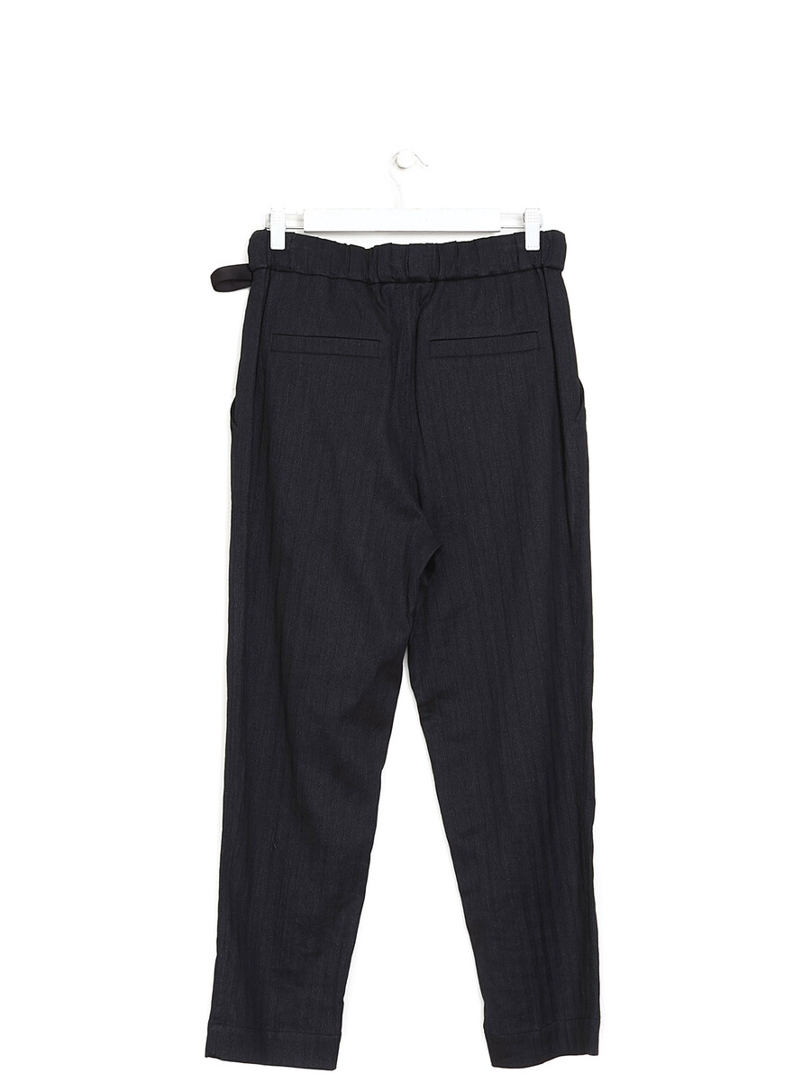 Pantalon noir à jambe ajustée avec taille élastique.