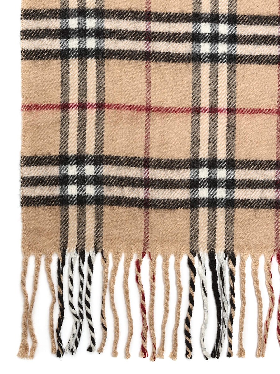 Écharpe à motif à carreaux iconique en beige, noir et rouge. Confectionnée à 100% en cachemire. Douce et luxueuse avec le design classique de Burberry.