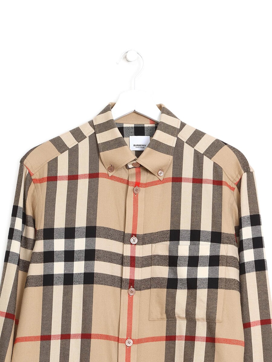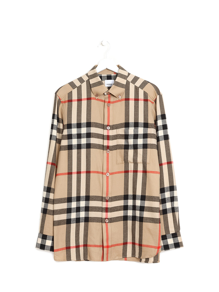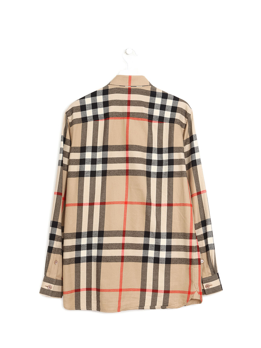 Chemise en coton à carreaux Burberry classiques dans les tons de beige, noir, rouge et blanc. Fermeture boutonnée sur le devant. Col classique. Motif à carreaux signature.