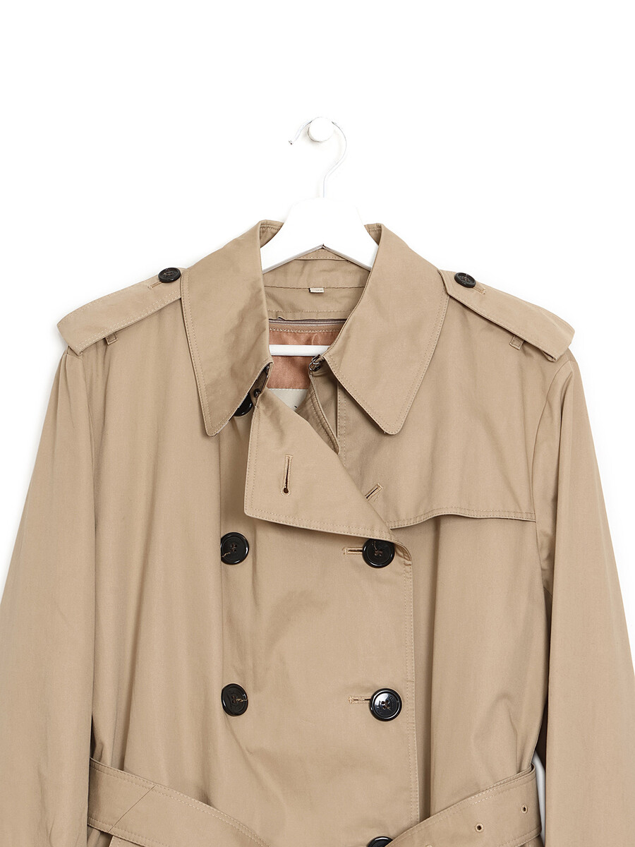 Trench classique en beige avec doublure amovible. Fermeture à boutons devant. Col chemise. Poches à rabat de chaque côté.