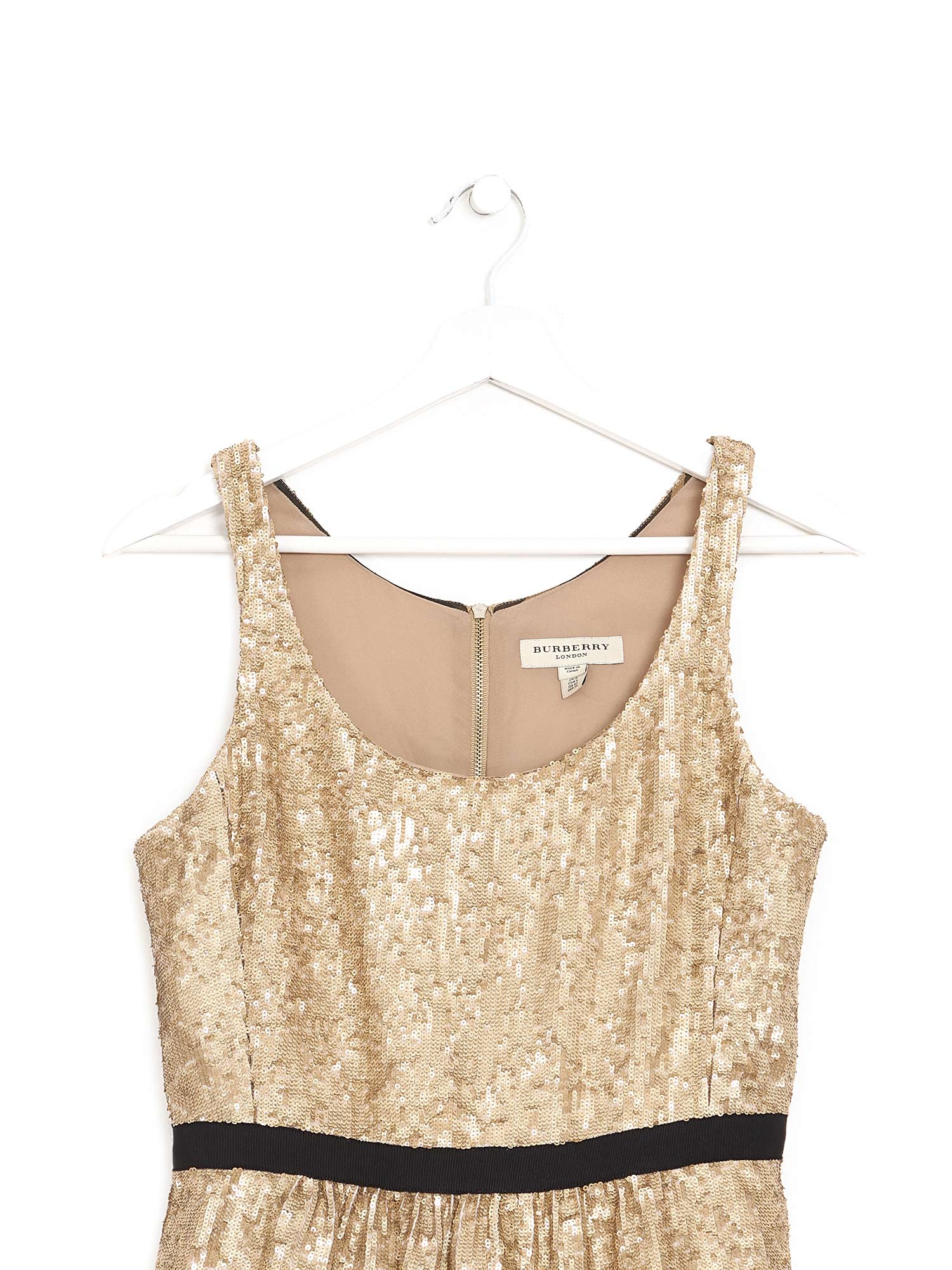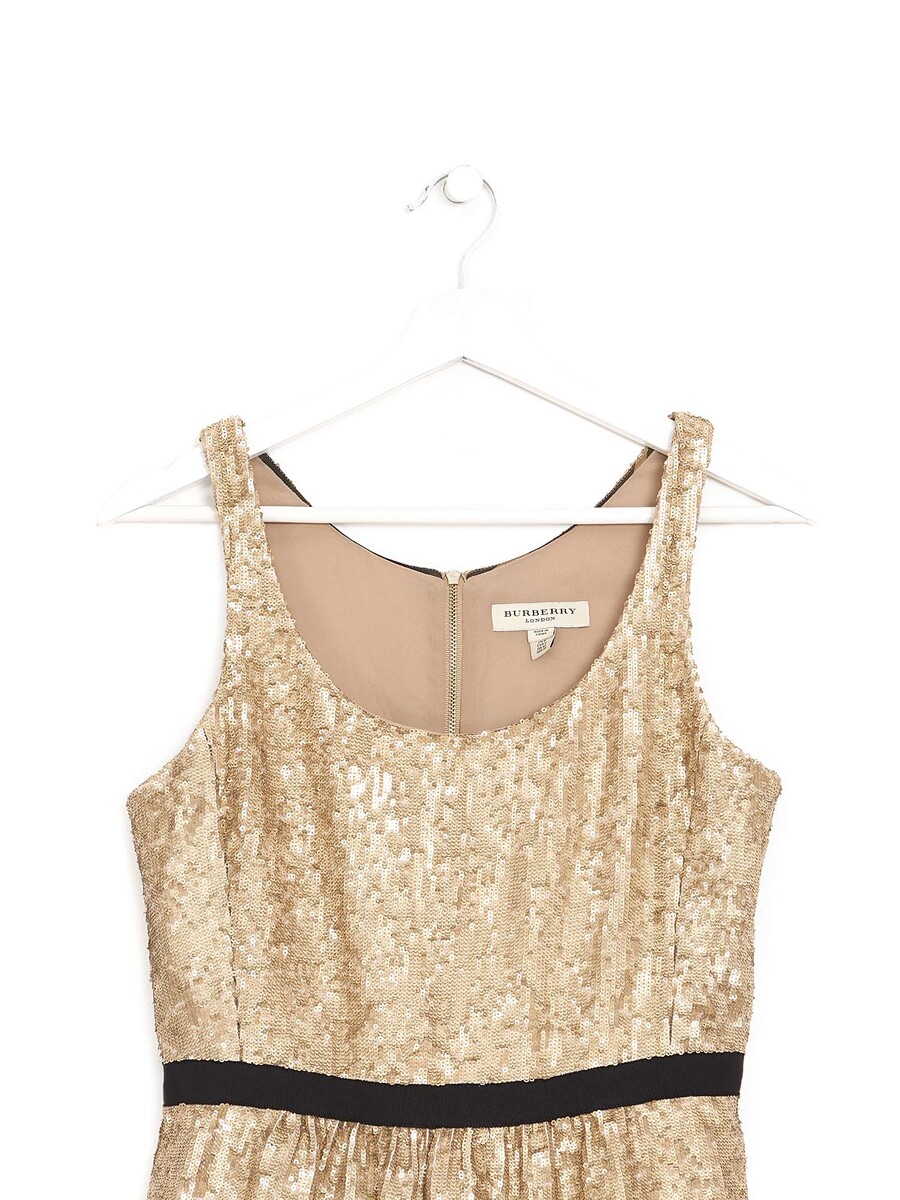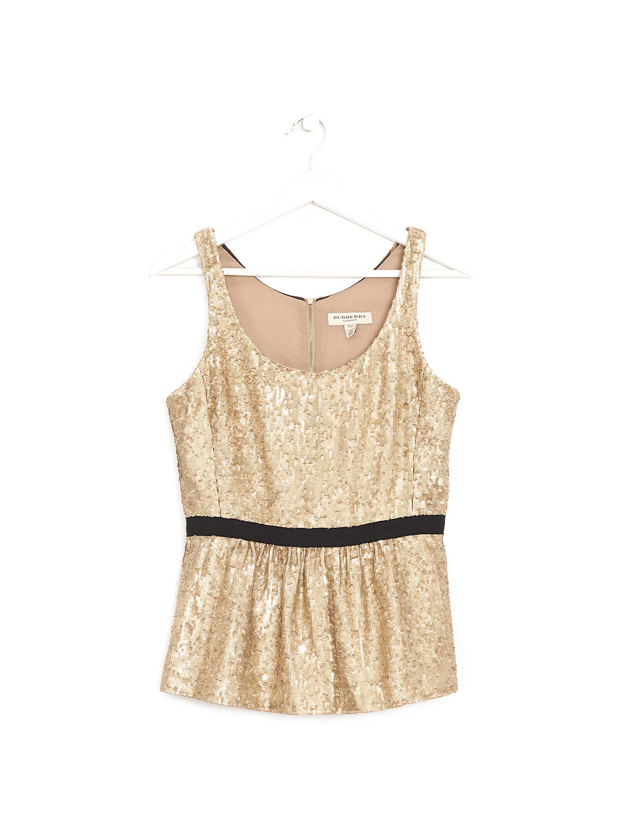 Haut sans manches en sequins métalliques dorés.