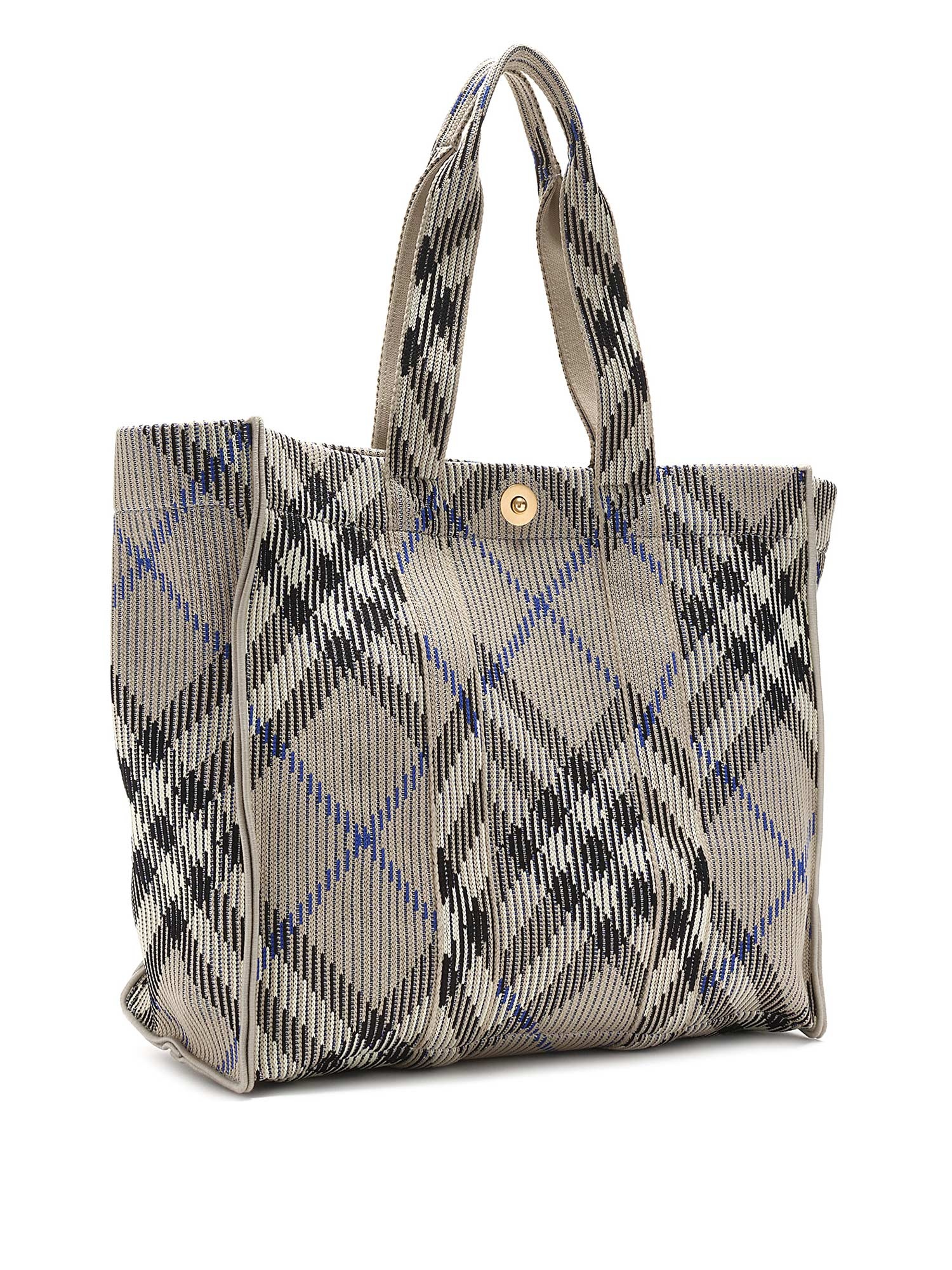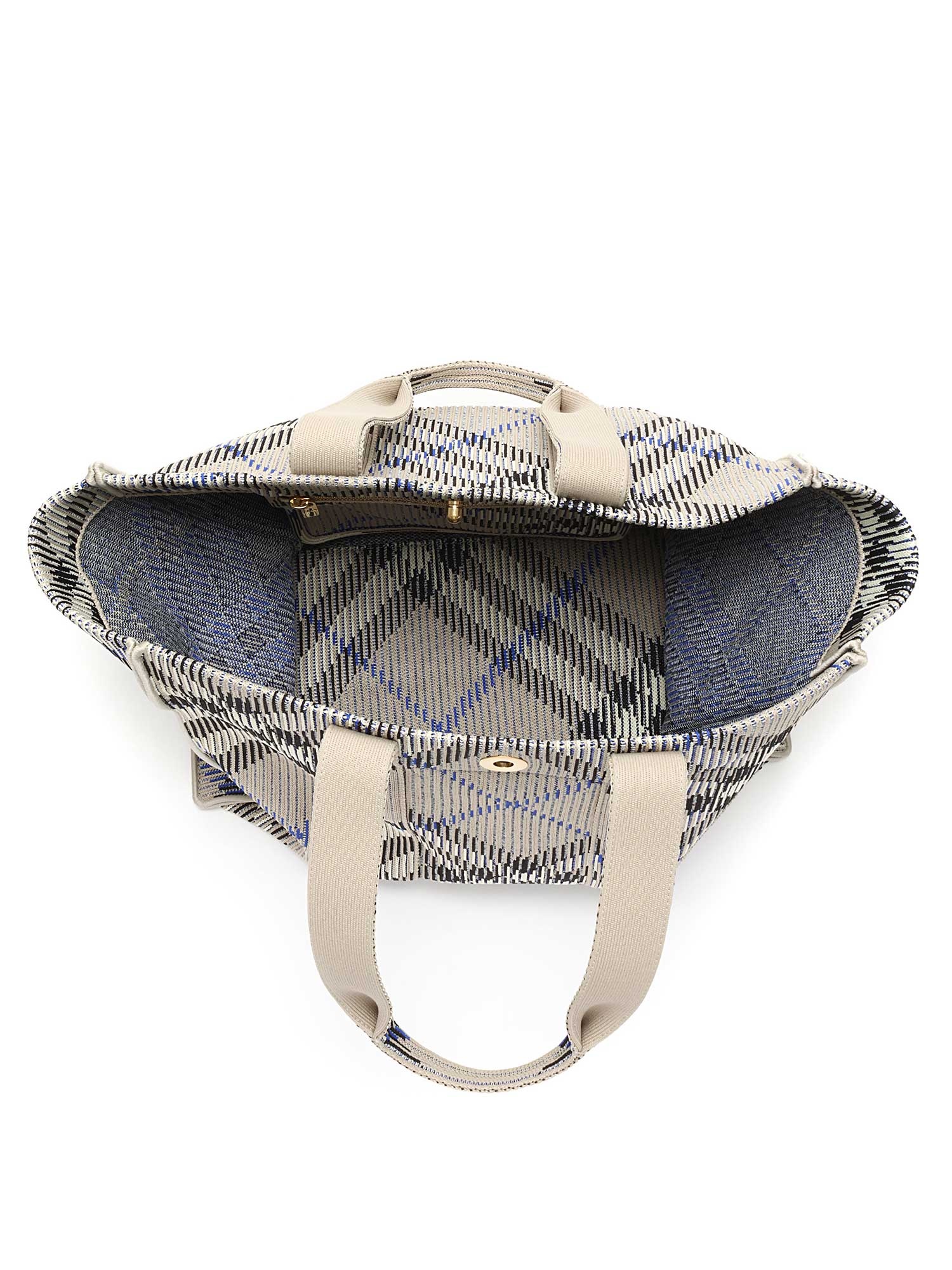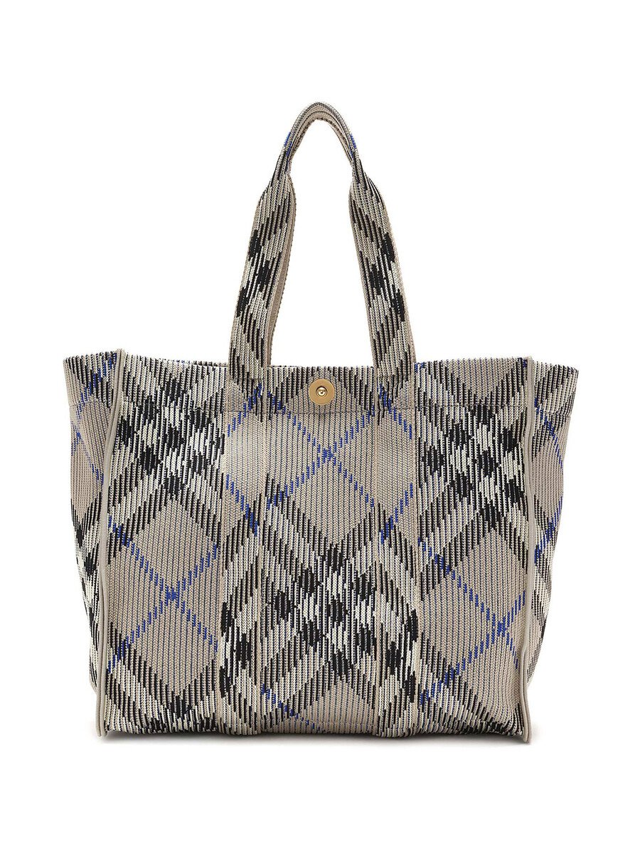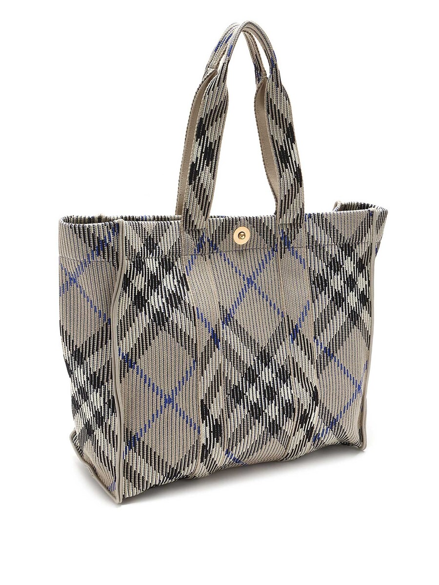 Sac fourre-tout en toile à motif à carreaux gris. Deux poignées de transport. Ferrures dorées. Intérieur spacieux, idéal pour un usage quotidien.