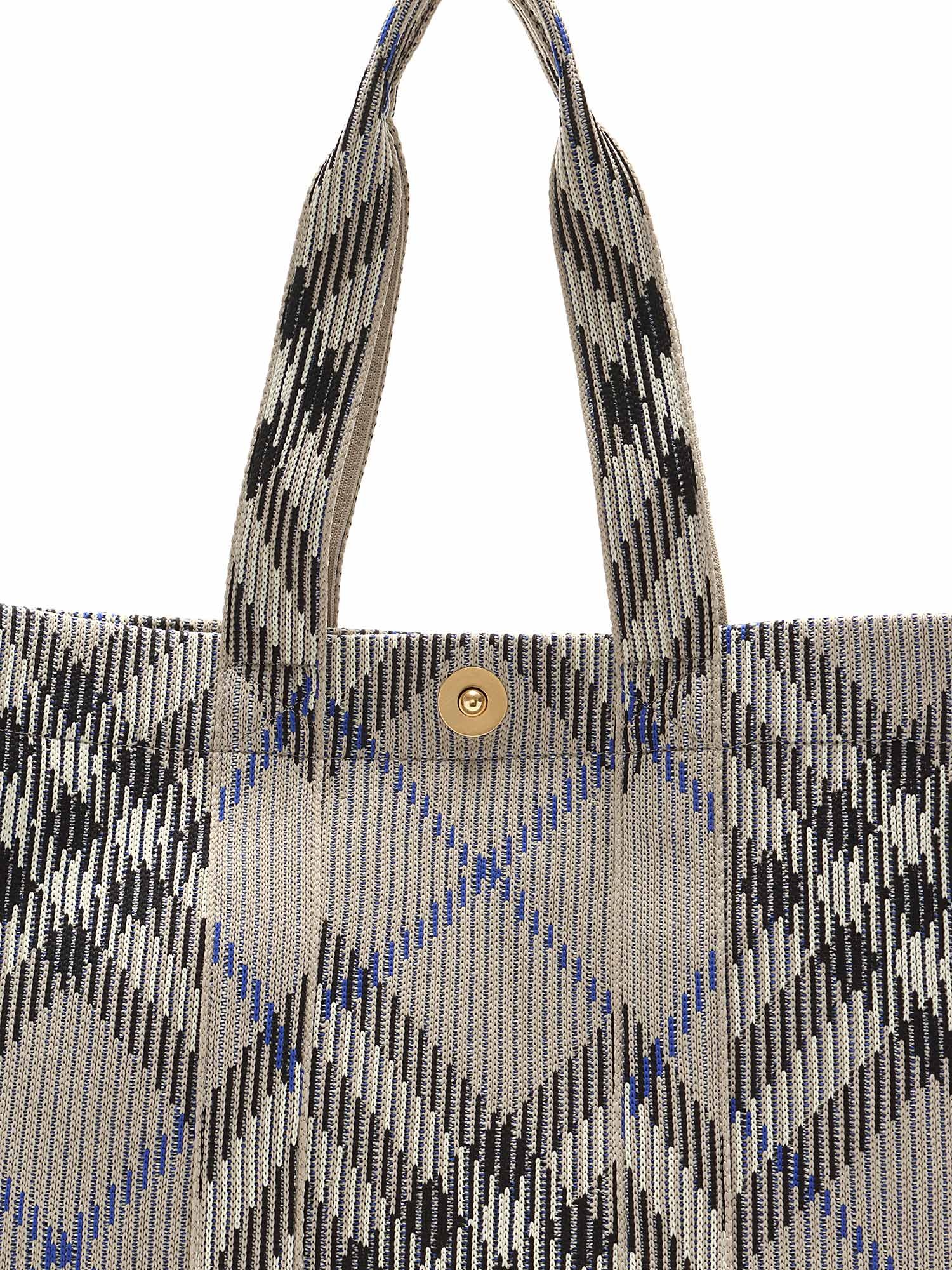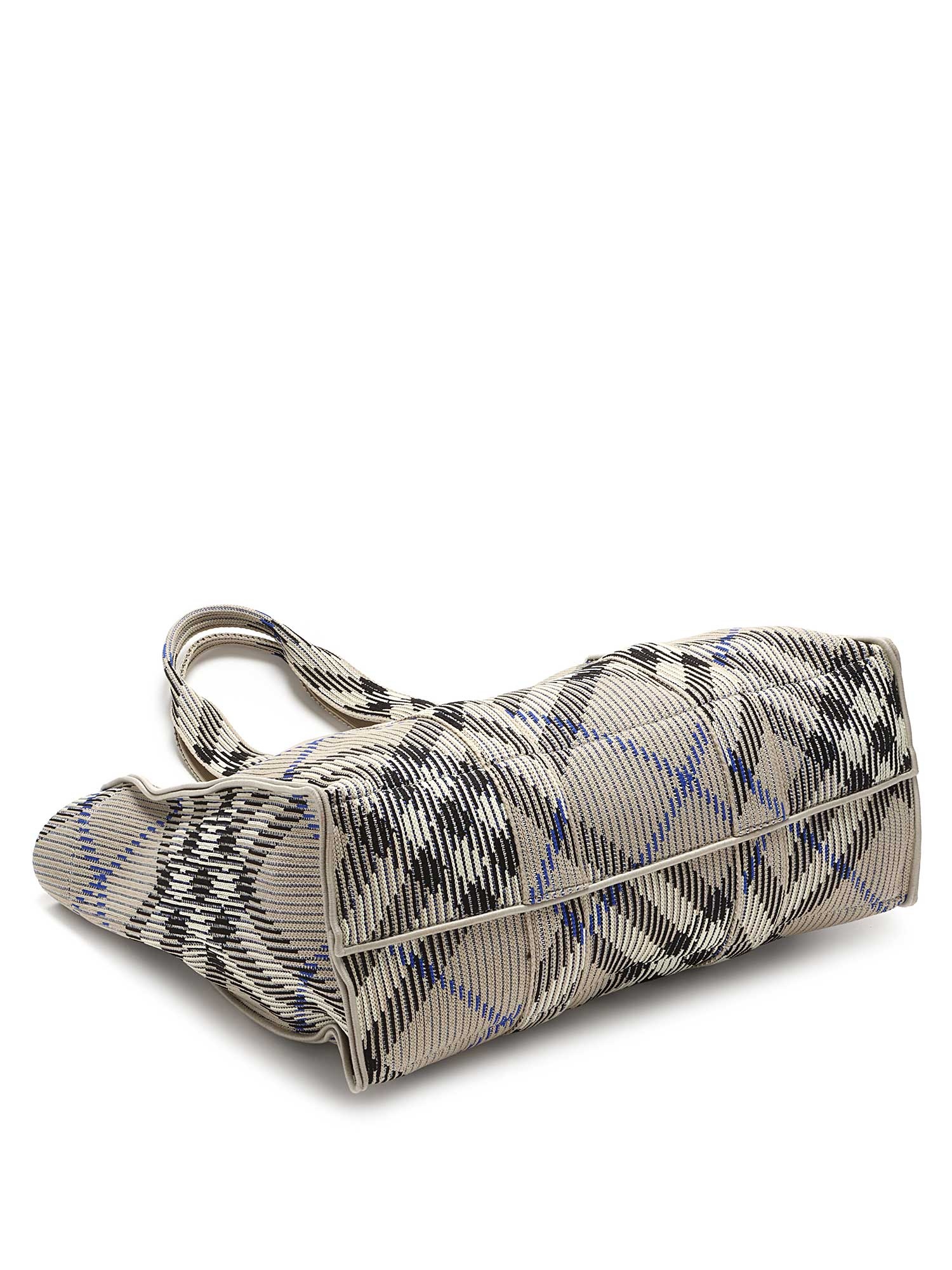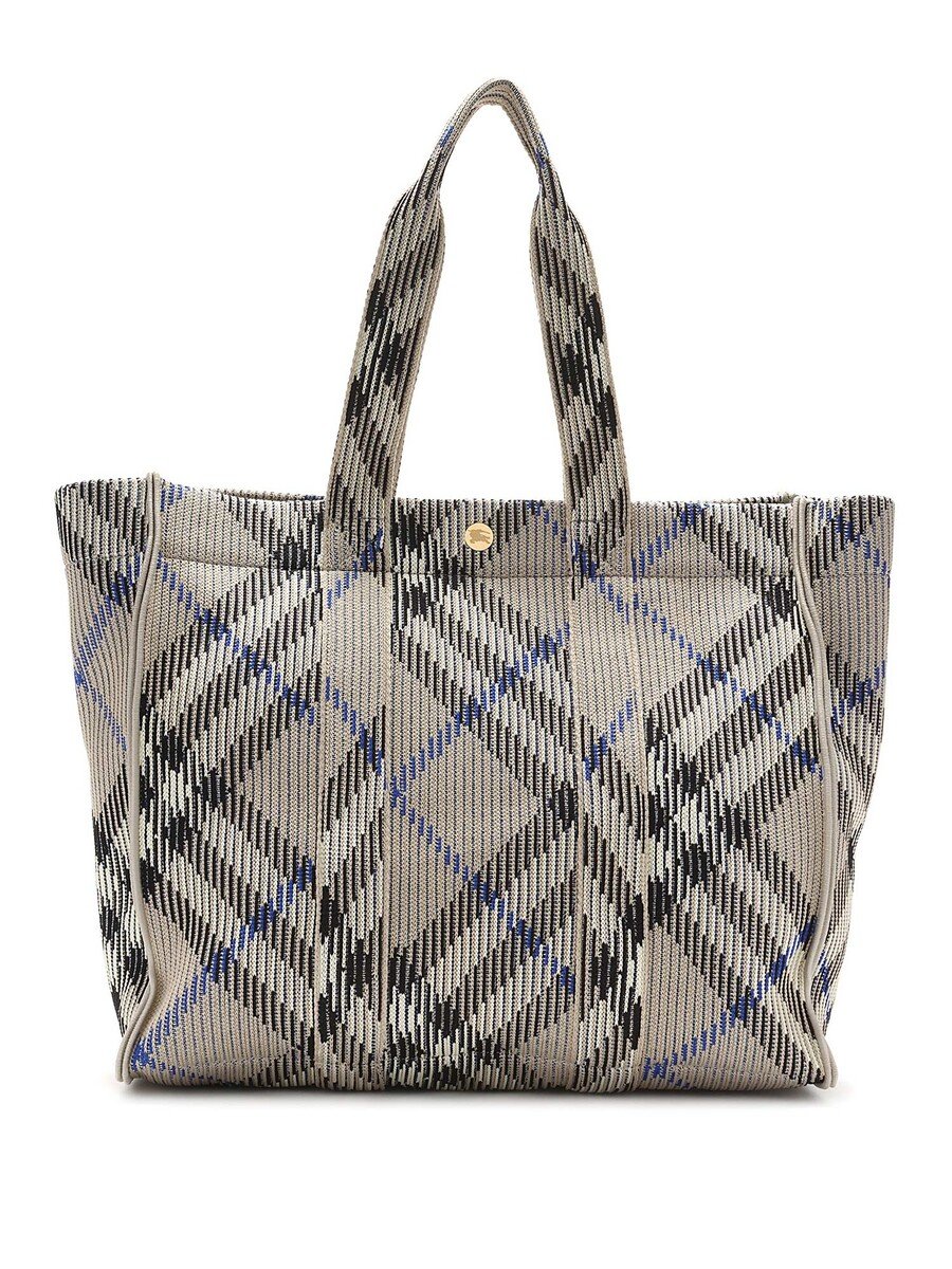 Sac fourre-tout en toile à motif à carreaux gris. Deux poignées de transport. Ferrures dorées. Intérieur spacieux, idéal pour un usage quotidien.