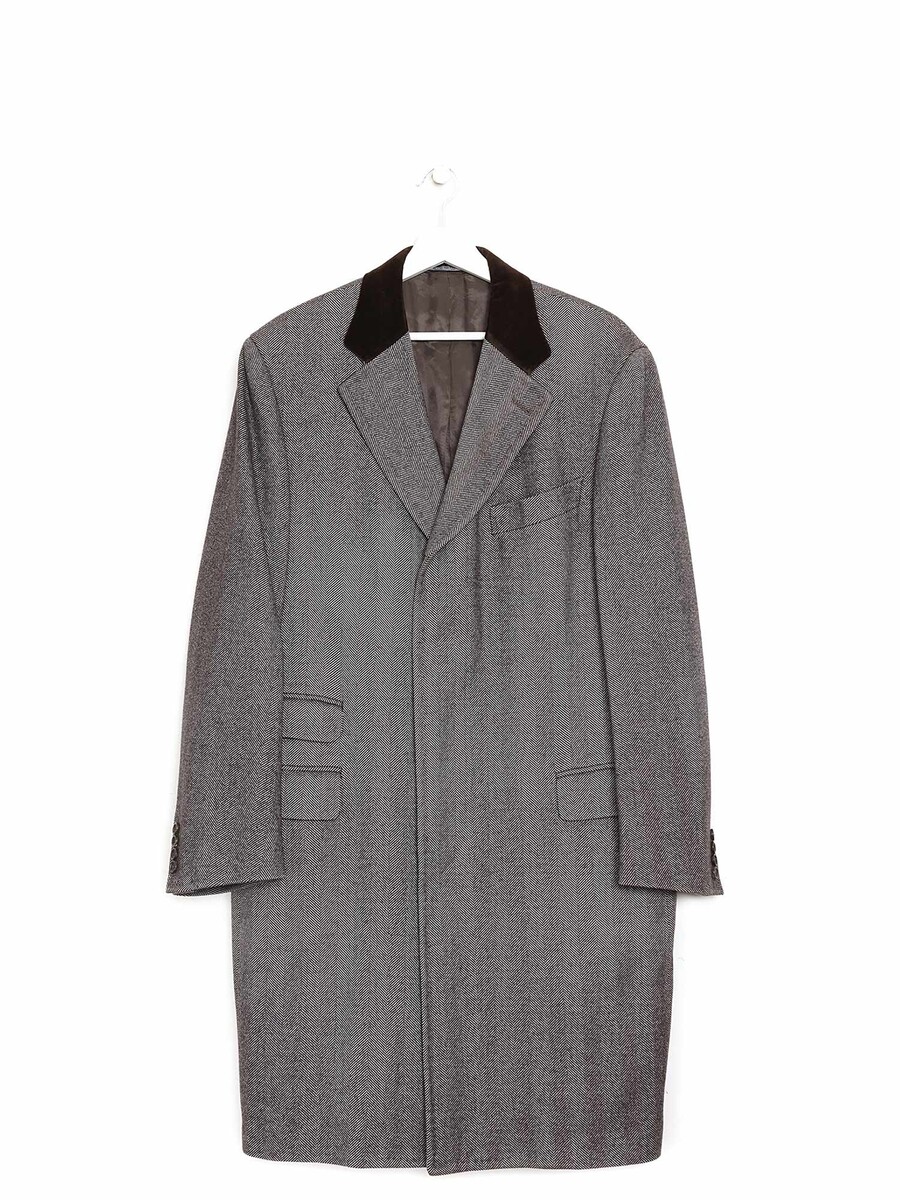 Manteau à manches longues avec motif à carreaux et à damiers. Fermeture à boutons sur le devant. Col à revers cranté. Poches à rabat sur le devant.