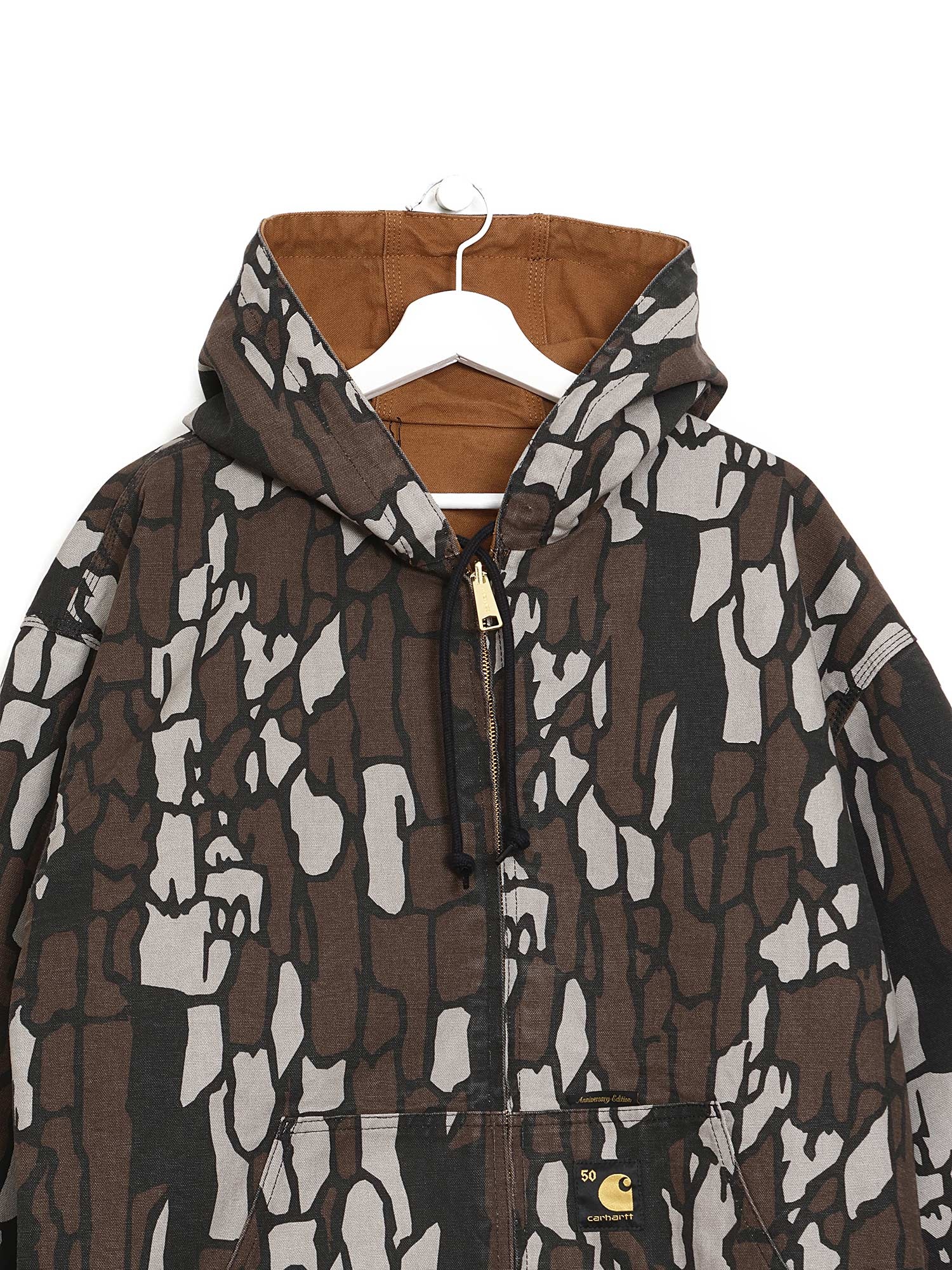 Veste à capuche réversible en toile avec motif camouflage. Conçue pour la durabilité et la polyvalence. Édition spéciale 50ème anniversaire de Carhartt WIP.