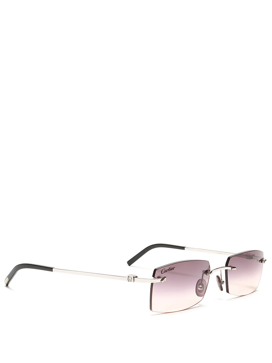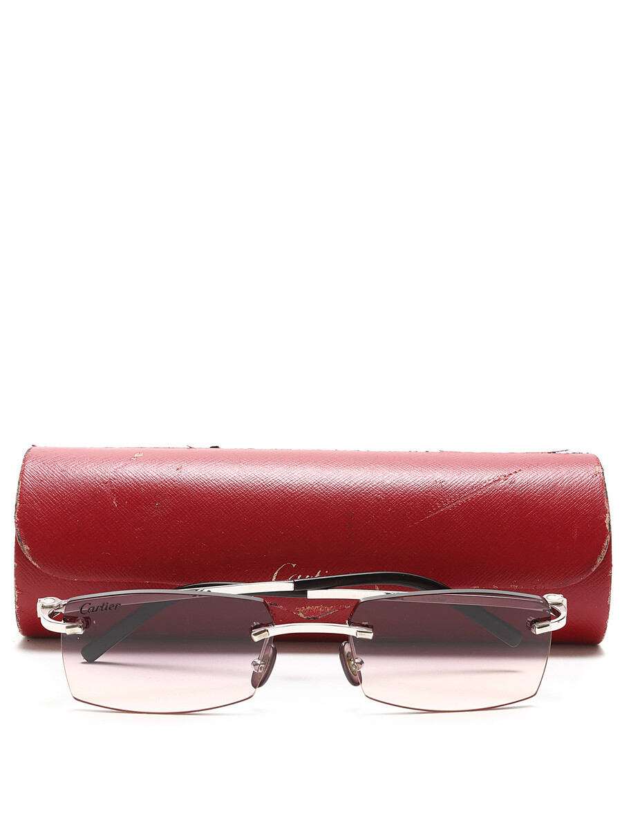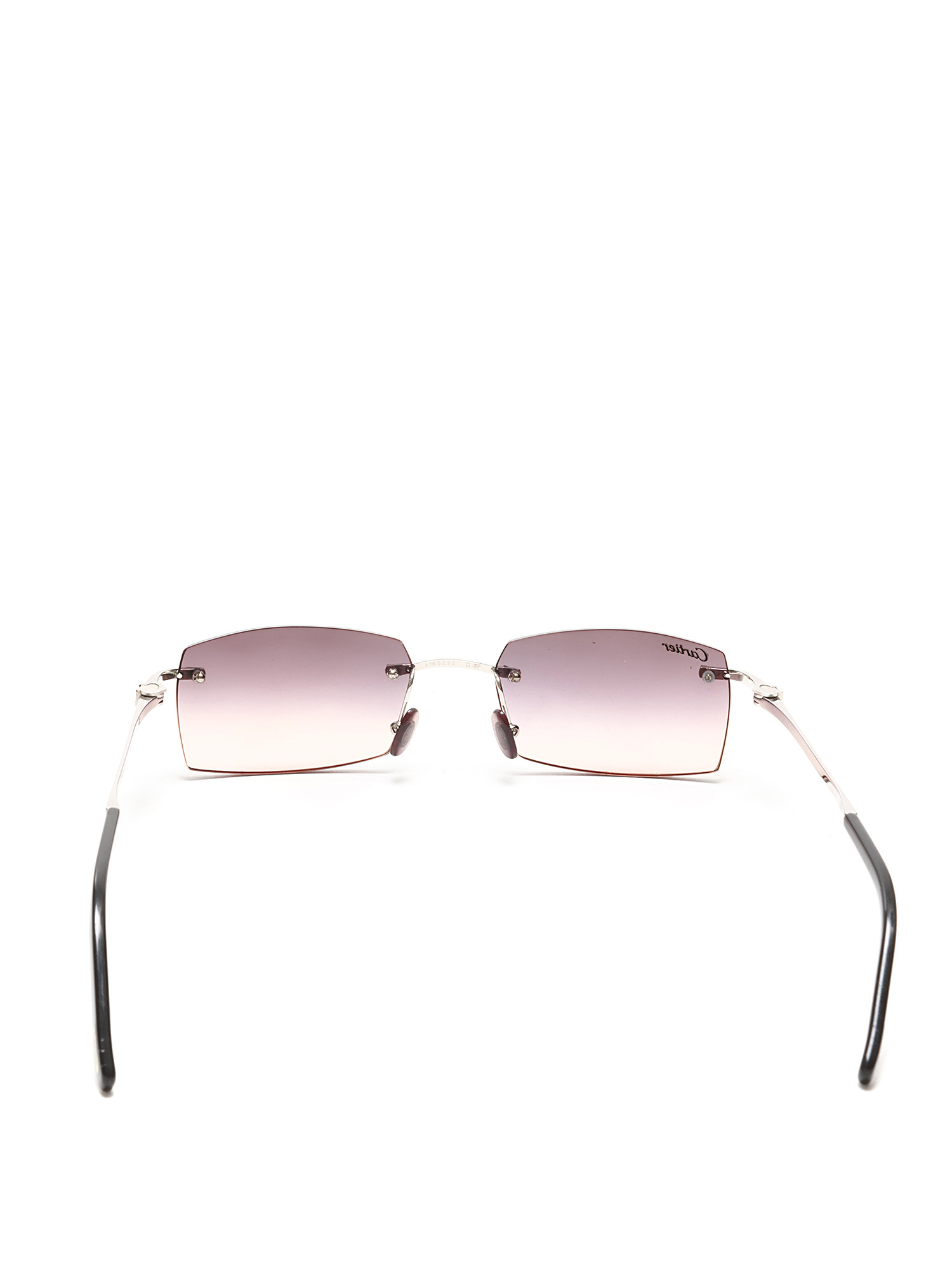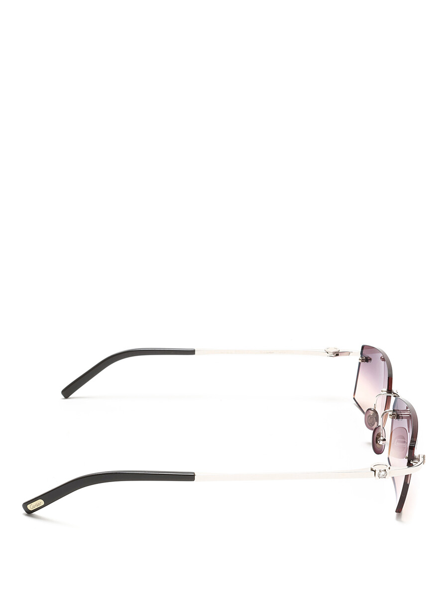 Lunettes de soleil sans monture avec verres dégradés dans une monture argentée. Ferrures métalliques argentées.