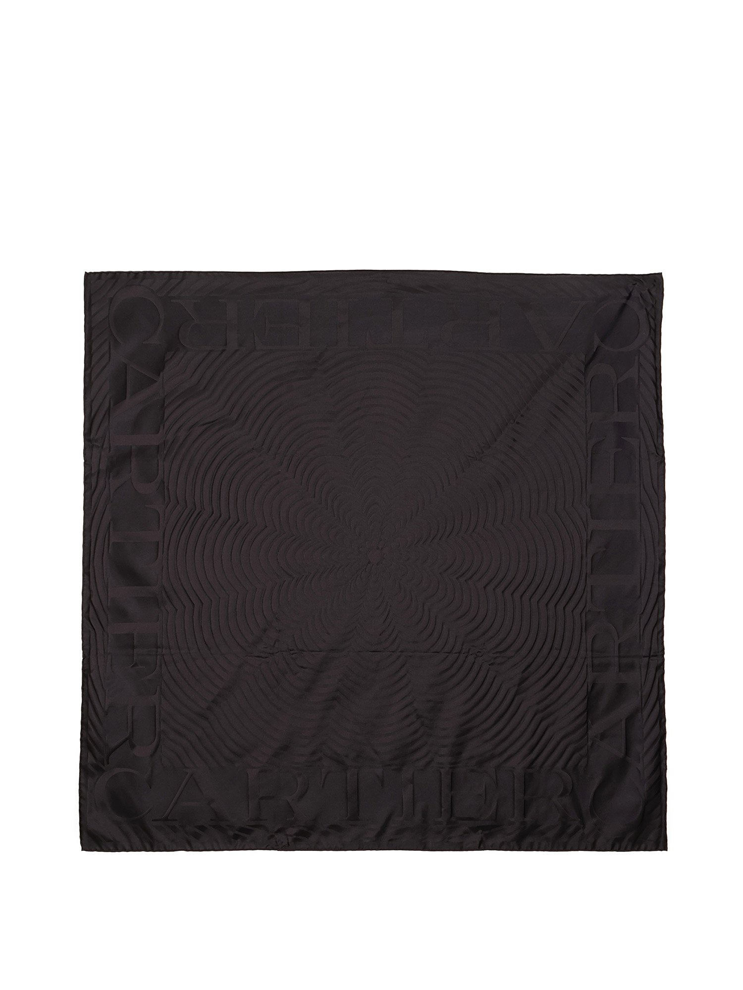 Carré de soie à motif géométrique ton sur ton en noir. Fourni avec carte d'authenticité et boîte.