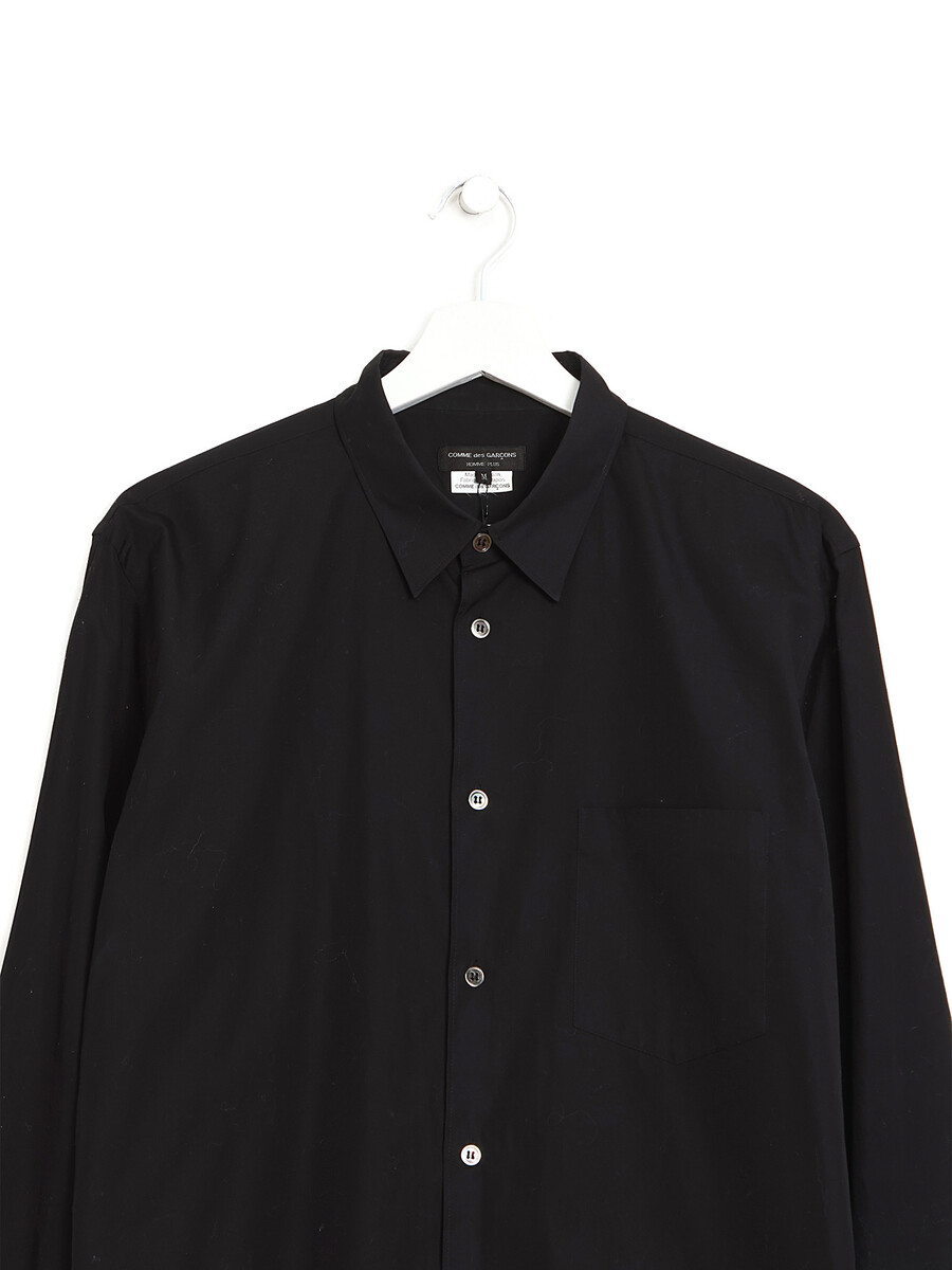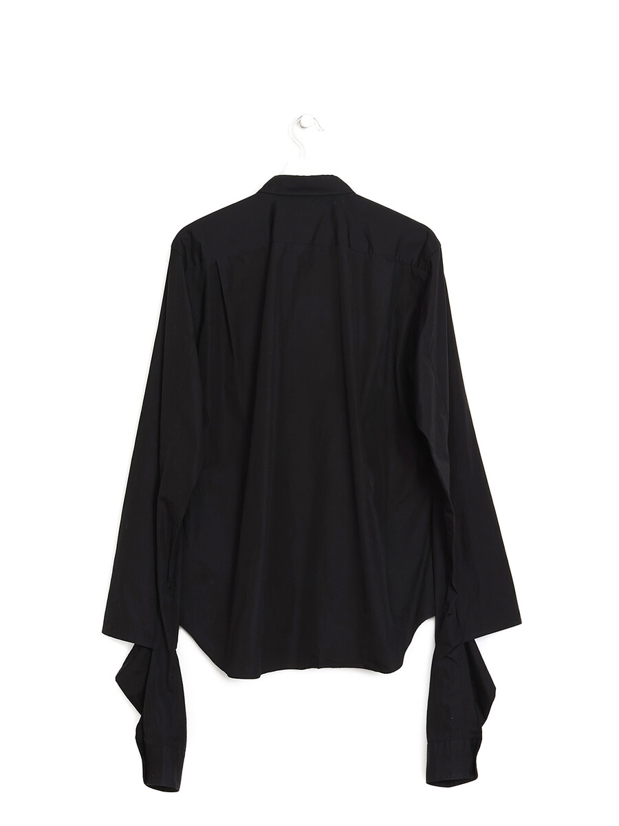 Chemise noire à manches longues avec design trompe l'oeil. Fermeture à boutons. Col chemise classique.