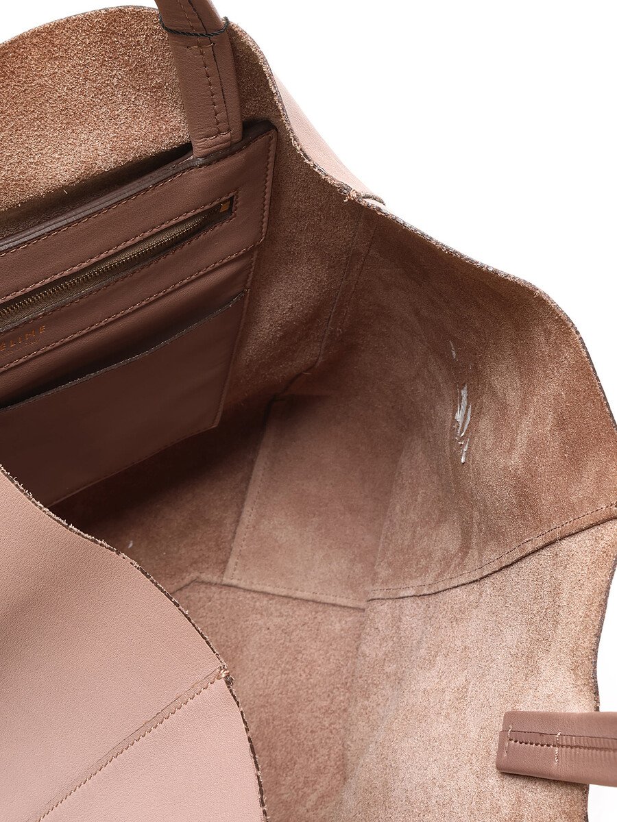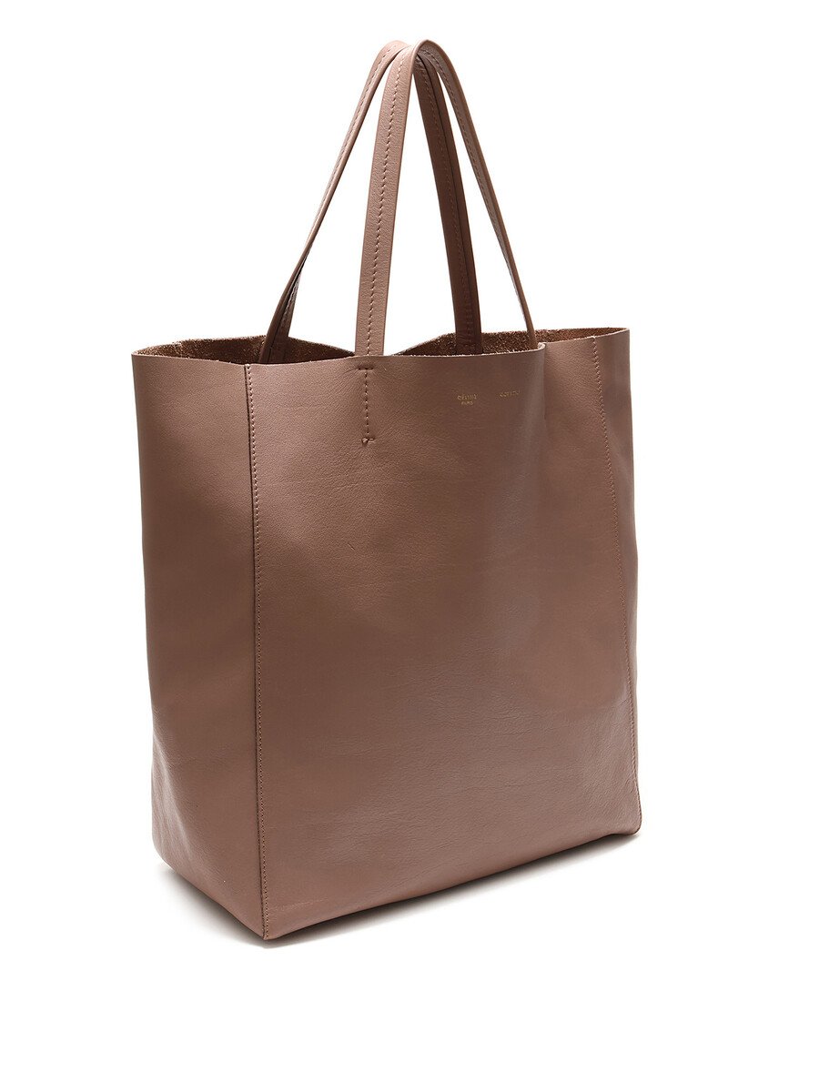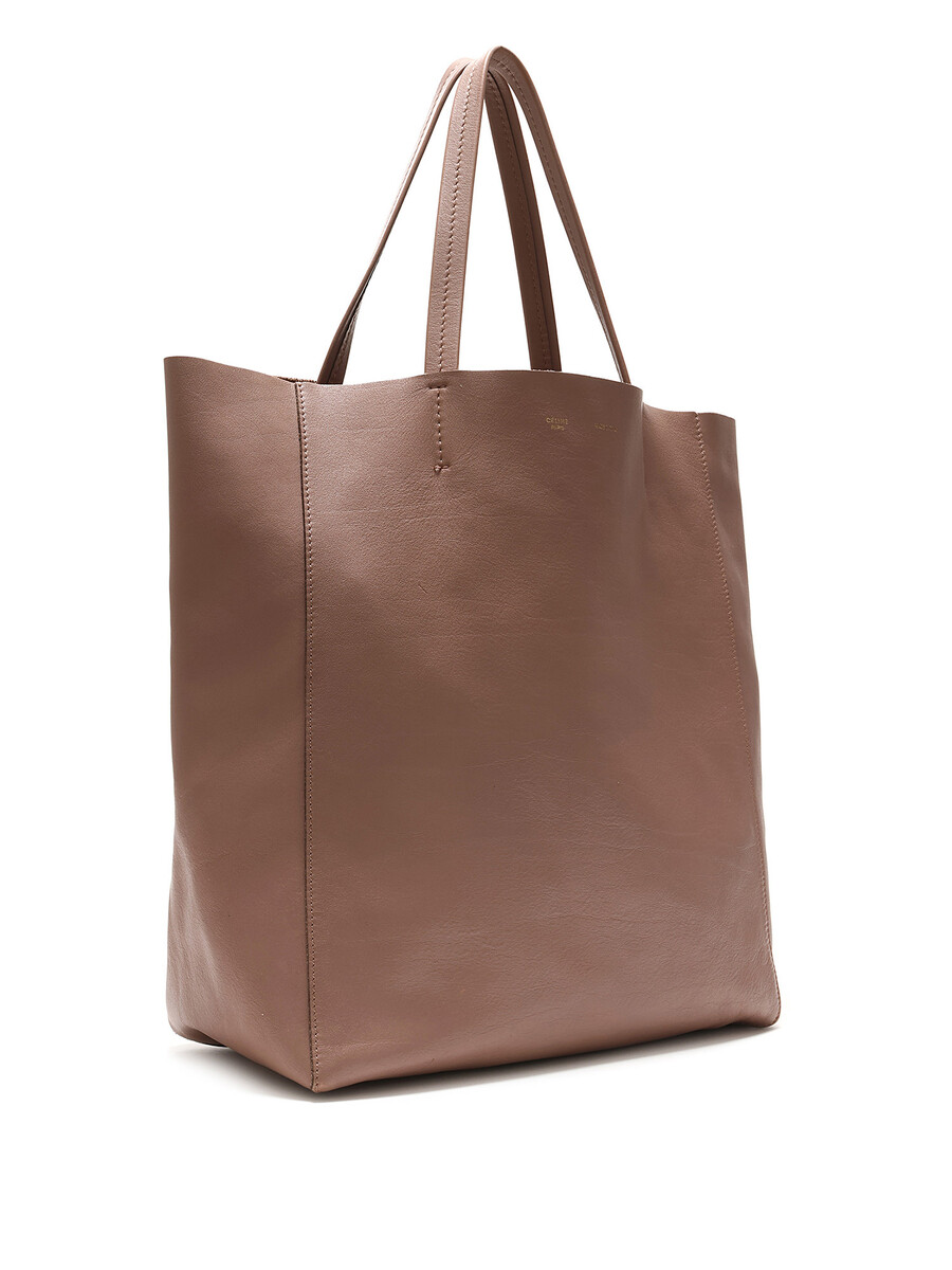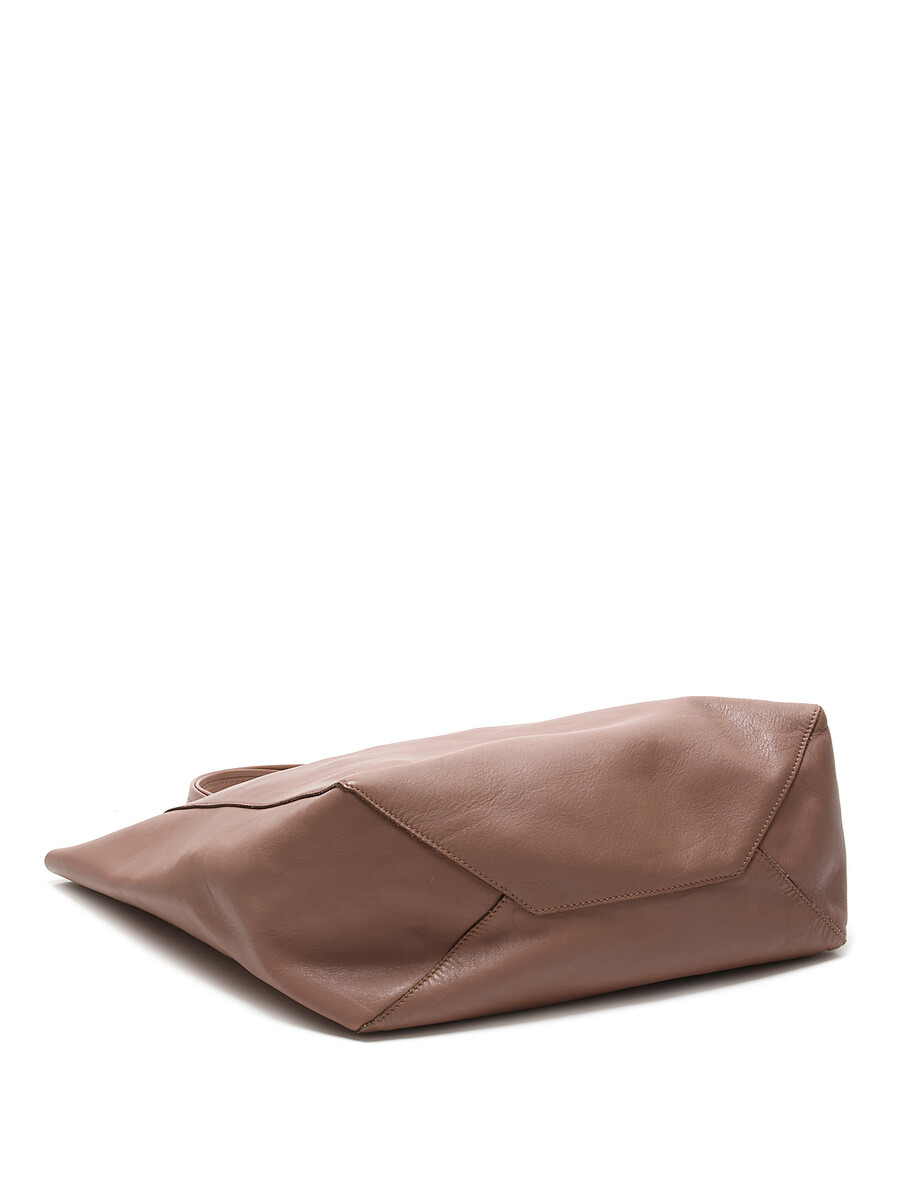 Cabas en cuir taupe. Ouverture supérieure ouverte avec sangles en cuir. Coutures ton sur ton. Intérieur spacieux.