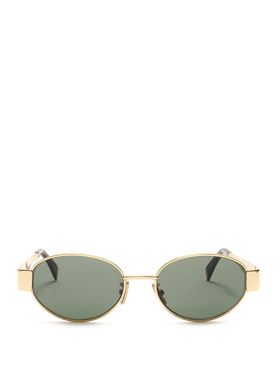 Lunettes de soleil ovales à monture dorée avec verres gris. Métal doré avec logo gravé sur les branches. Fournies avec dustbag.
