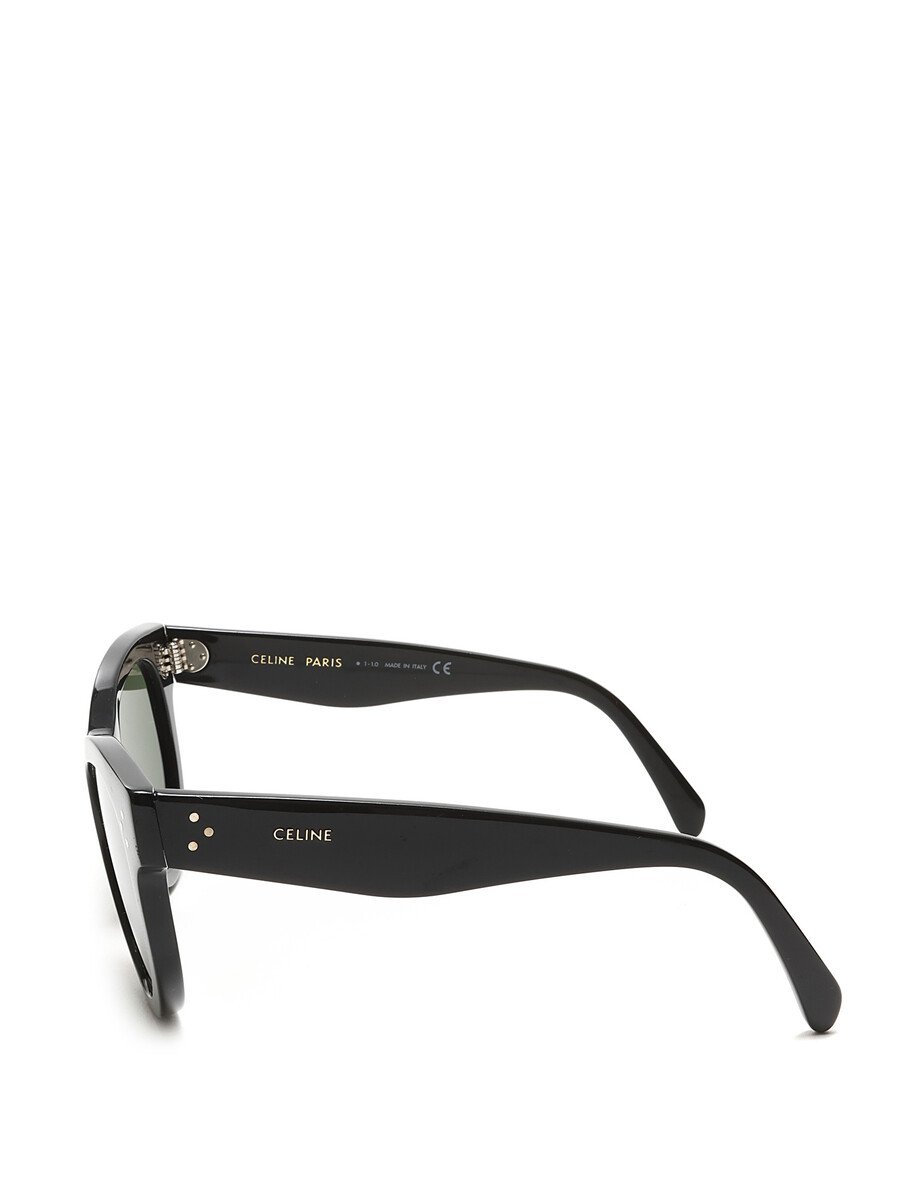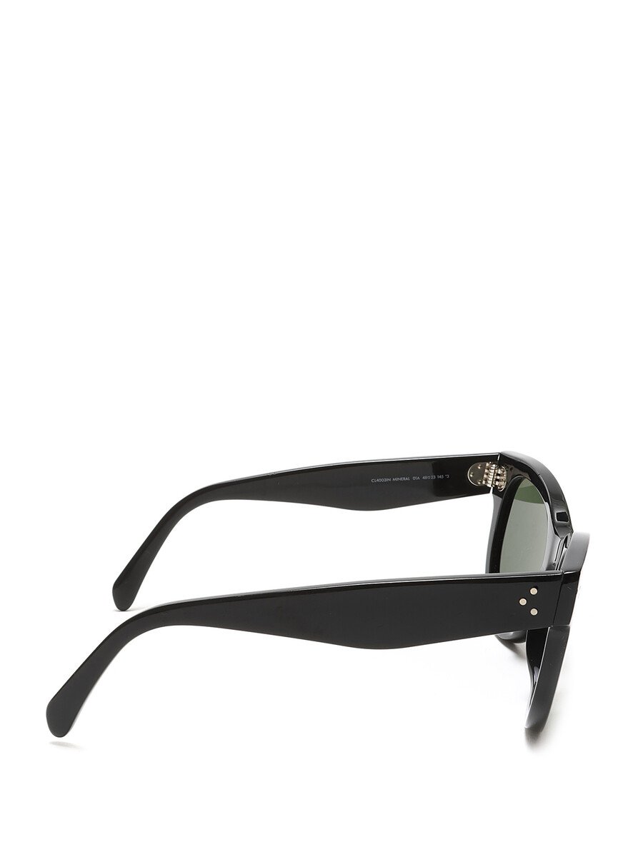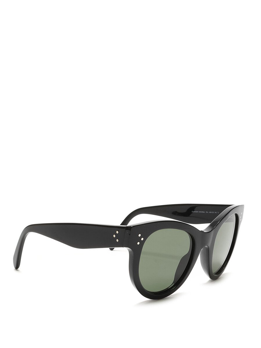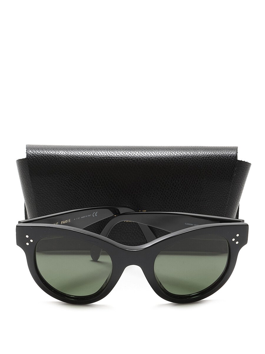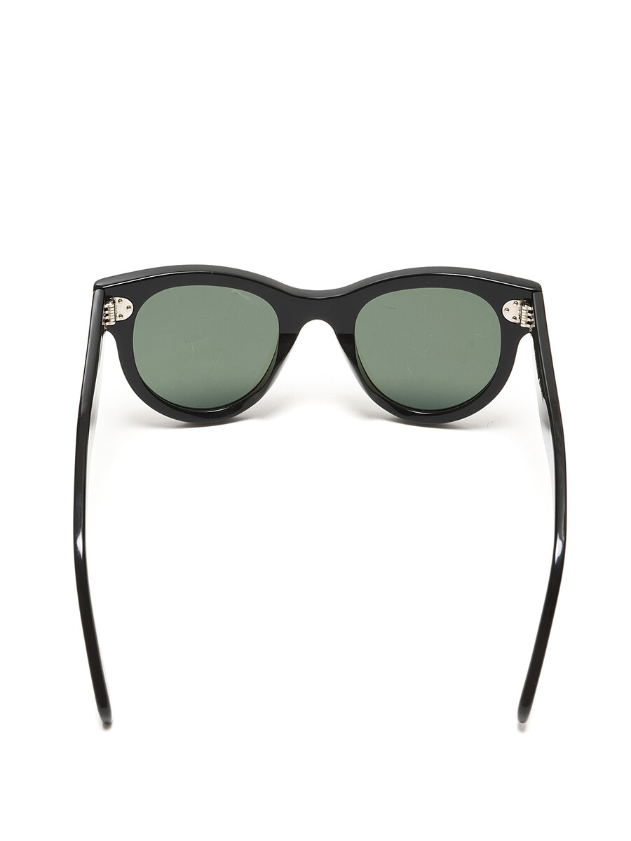 Lunettes de soleil arrondies en acétate noir. Verres verts. Avec étui.