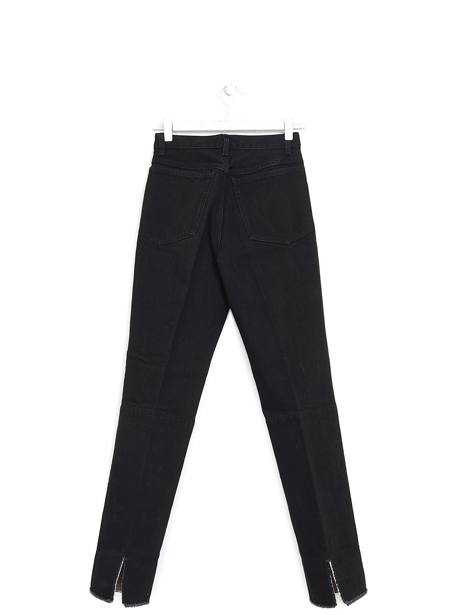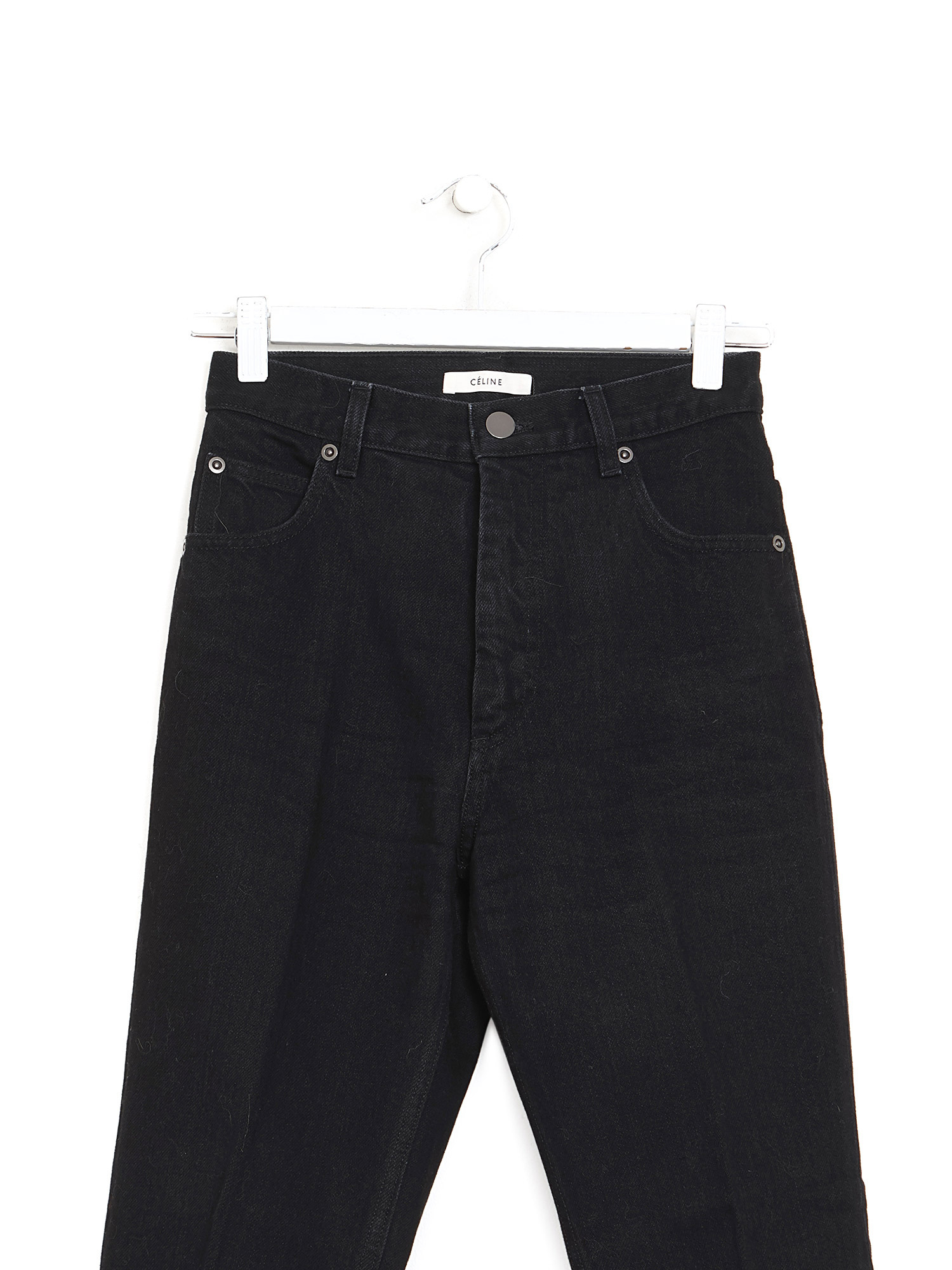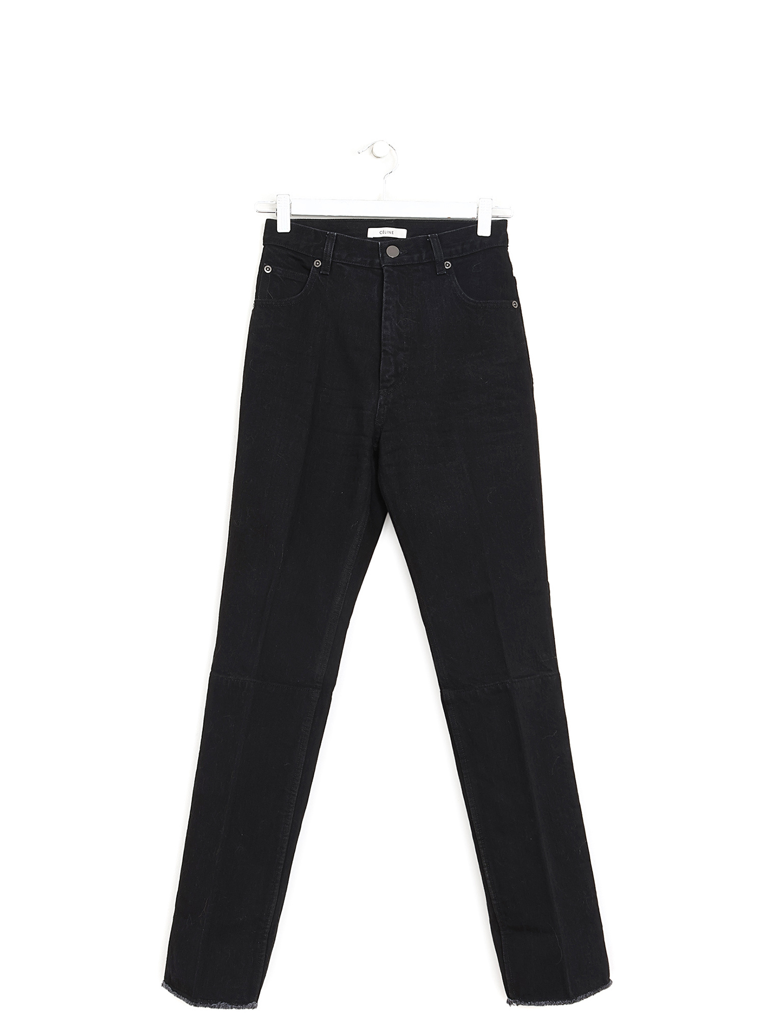 Jeans slim en denim noir avec fermeture à bouton sur le devant.