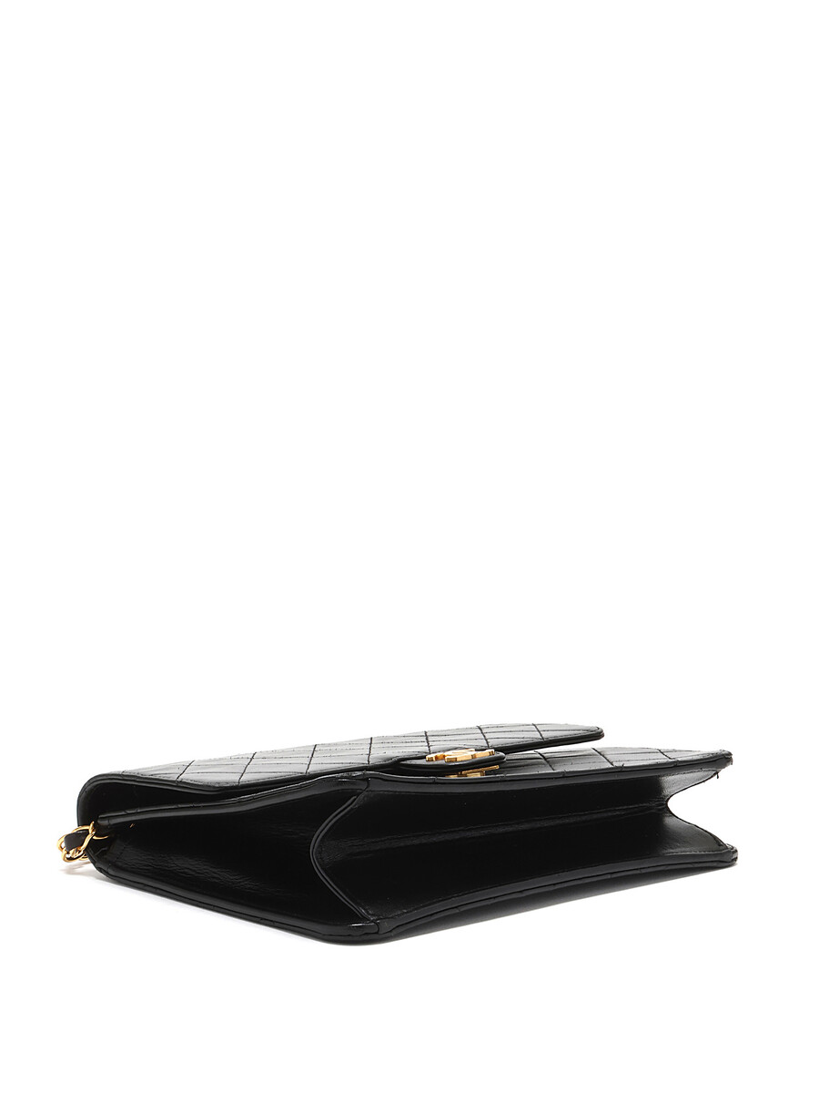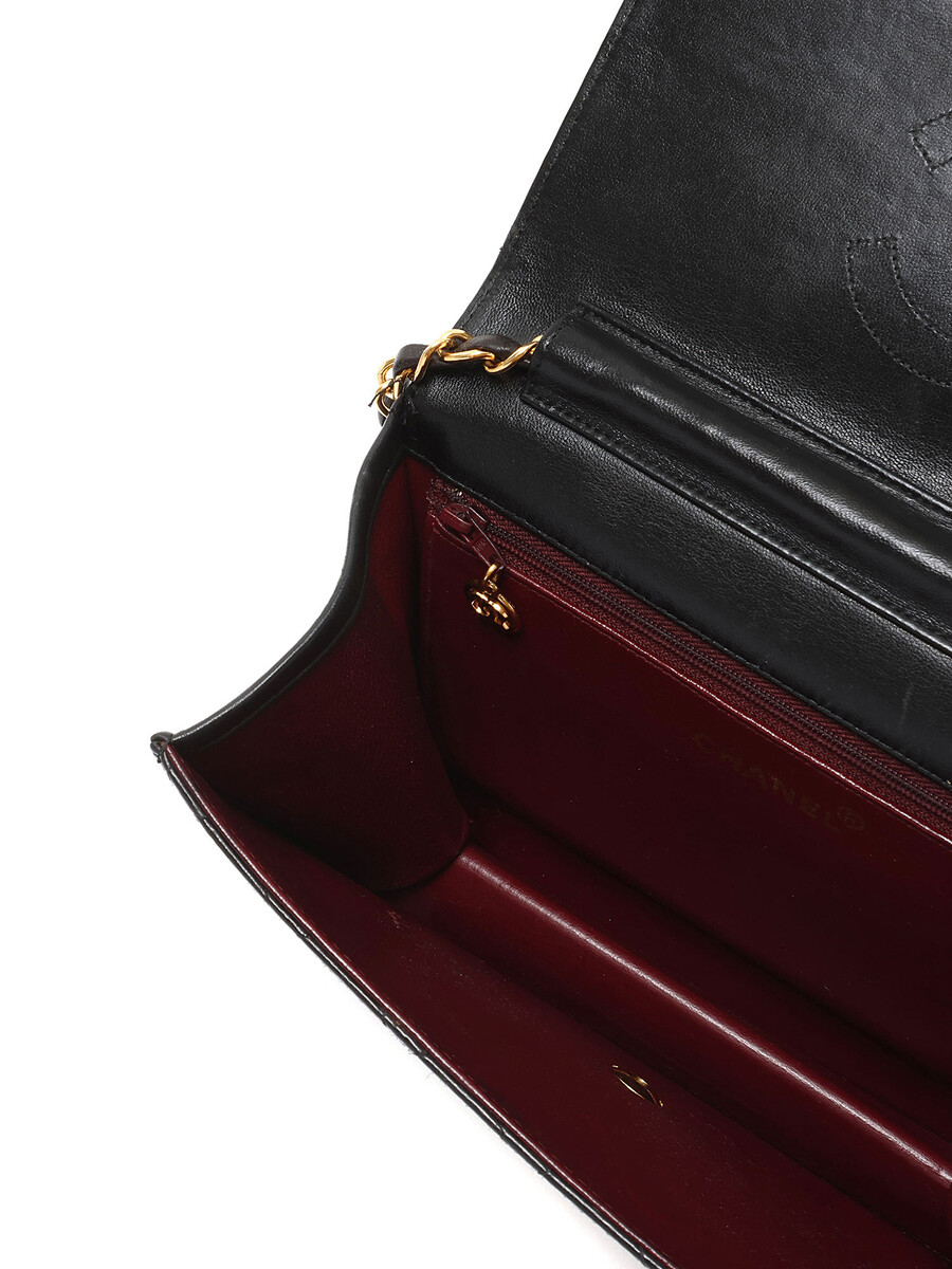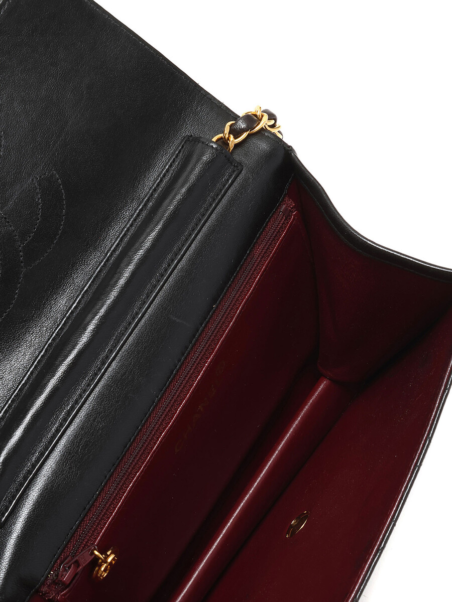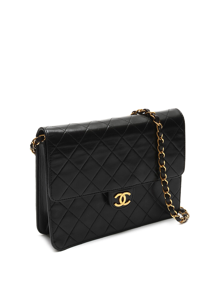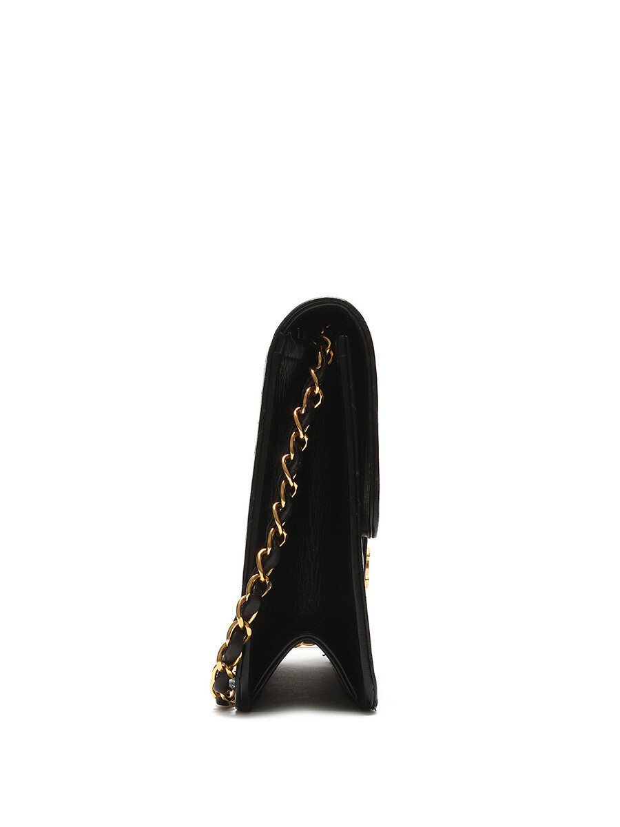 Sac à l’épaule à rabat en cuir d’agneau matelassé noir. Bandoulière en cuir et chaîne entrelacés. Plaque à logo CC au rabat. Fermeture à rabat avec poussoir. Ferrures en métal doré.