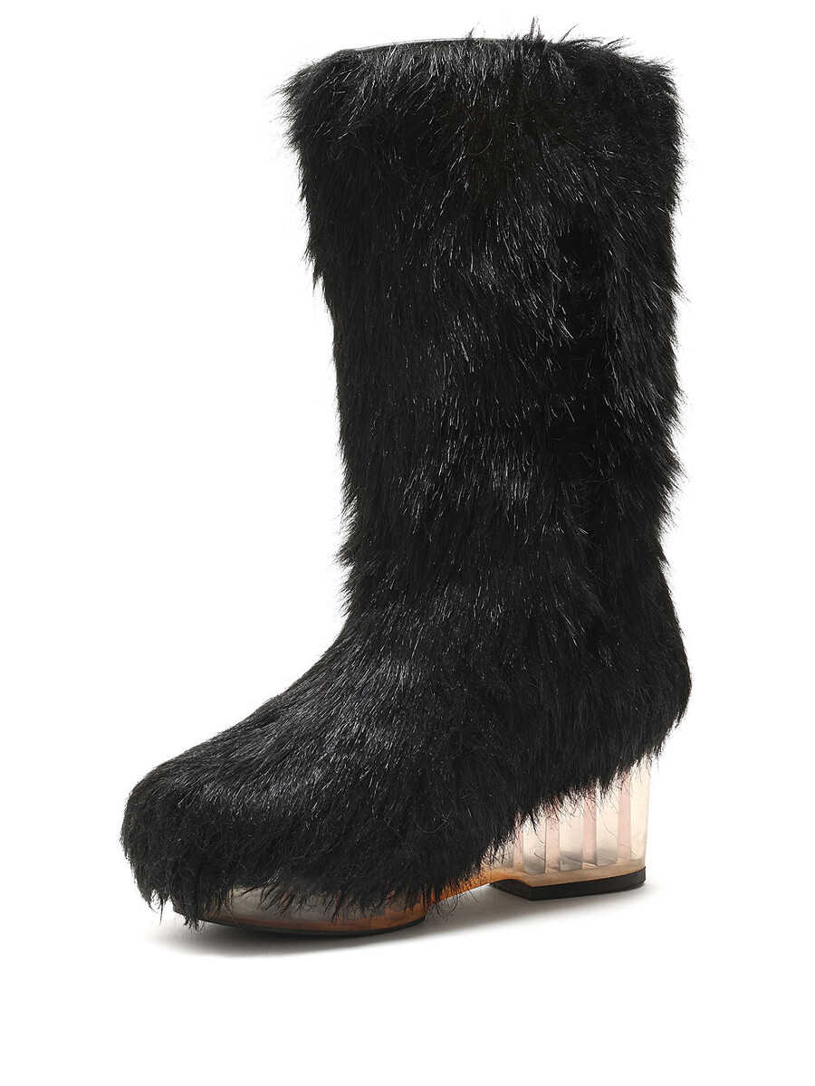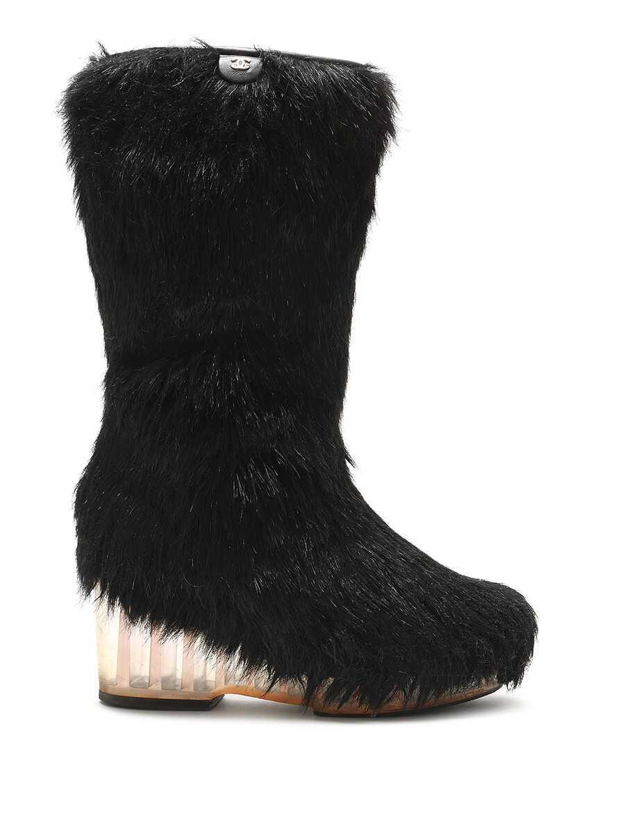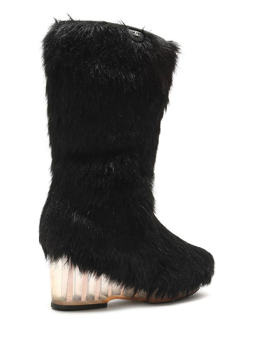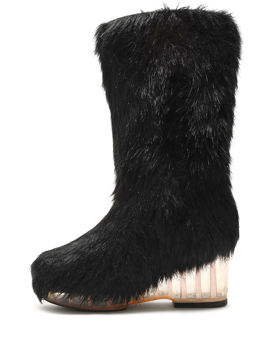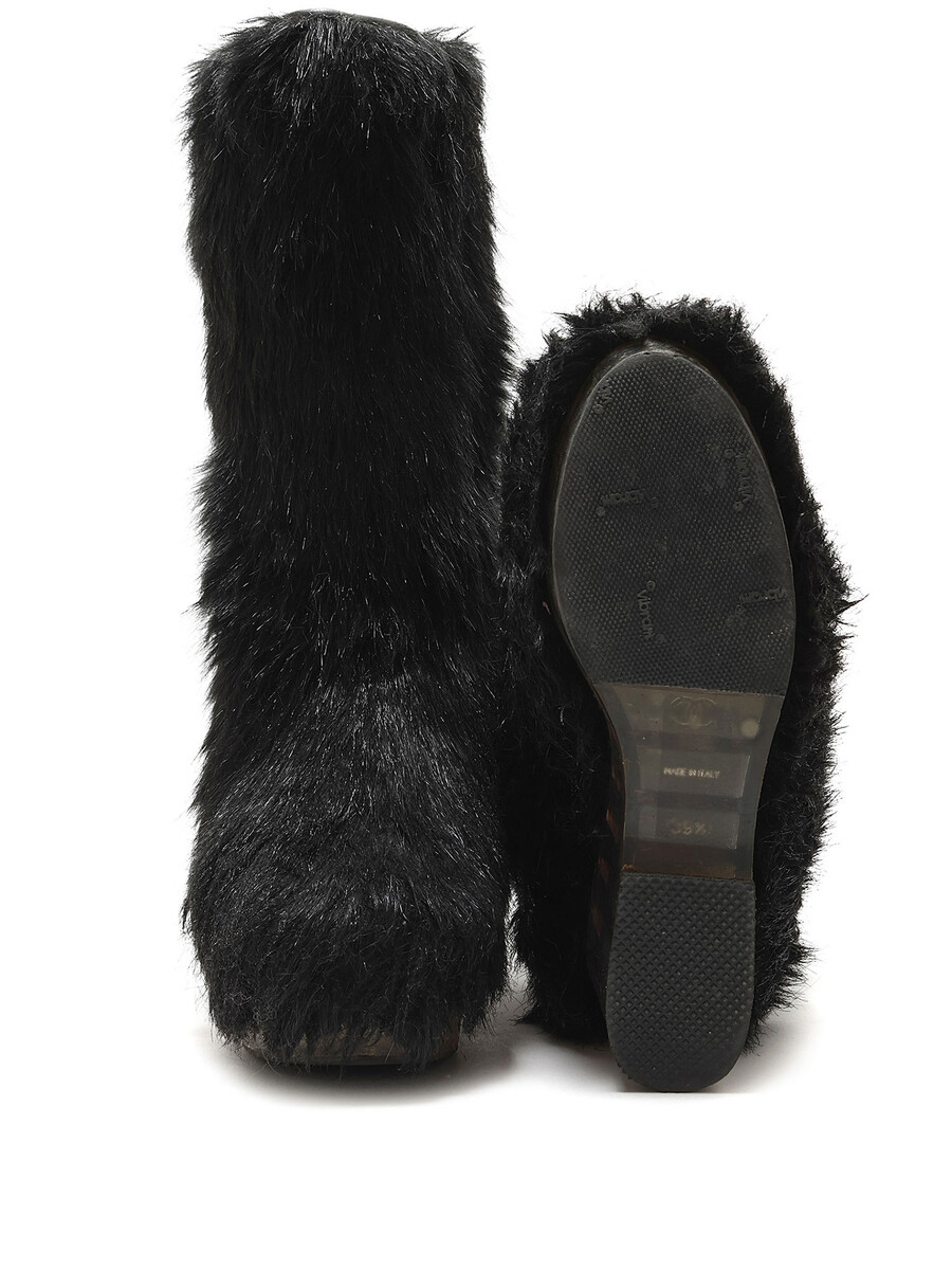 Bottes en fausse fourrure à enfiler en noir avec plaque logo en métal. Doublure en sherpa synthétique et semelle plateforme en caoutchouc.
