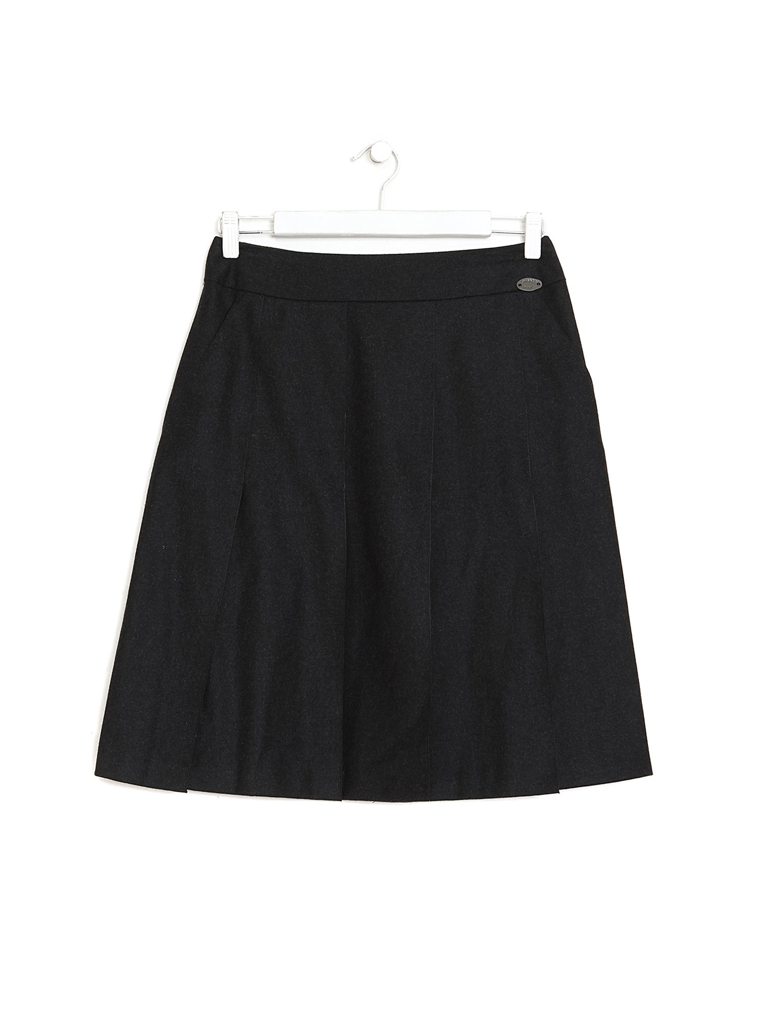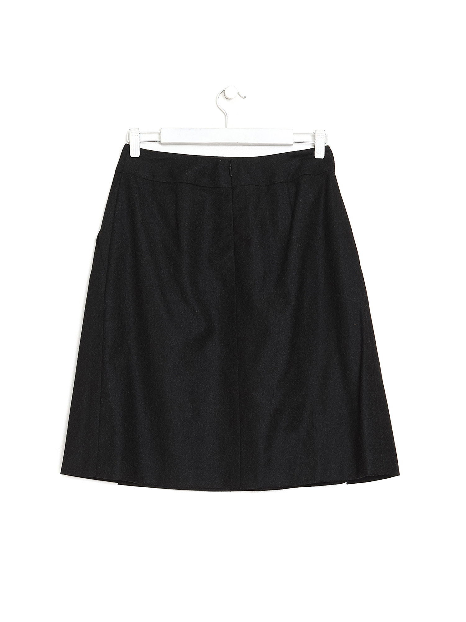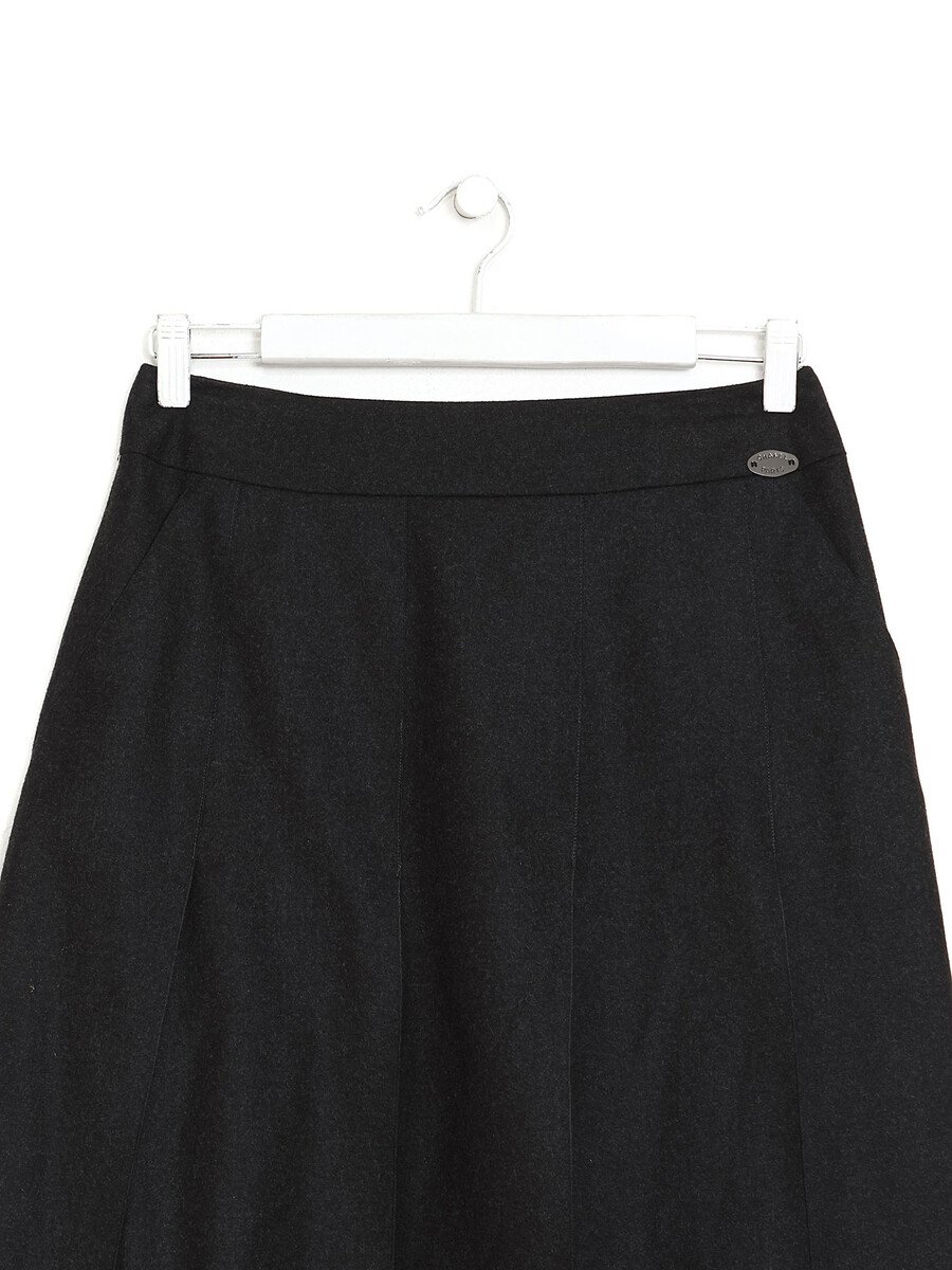 Jupe midi plissée en mélange de laine et cachemire noir. Fermeture à glissière sur le côté.