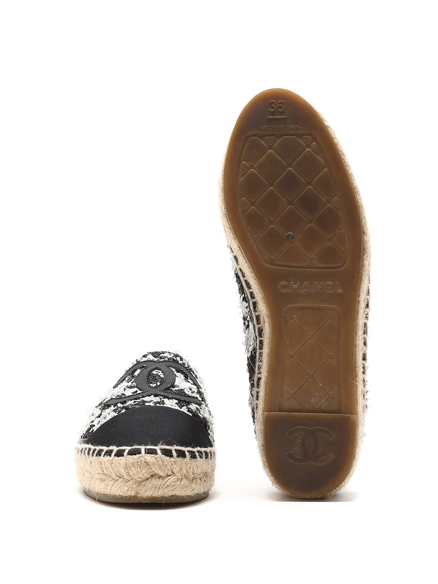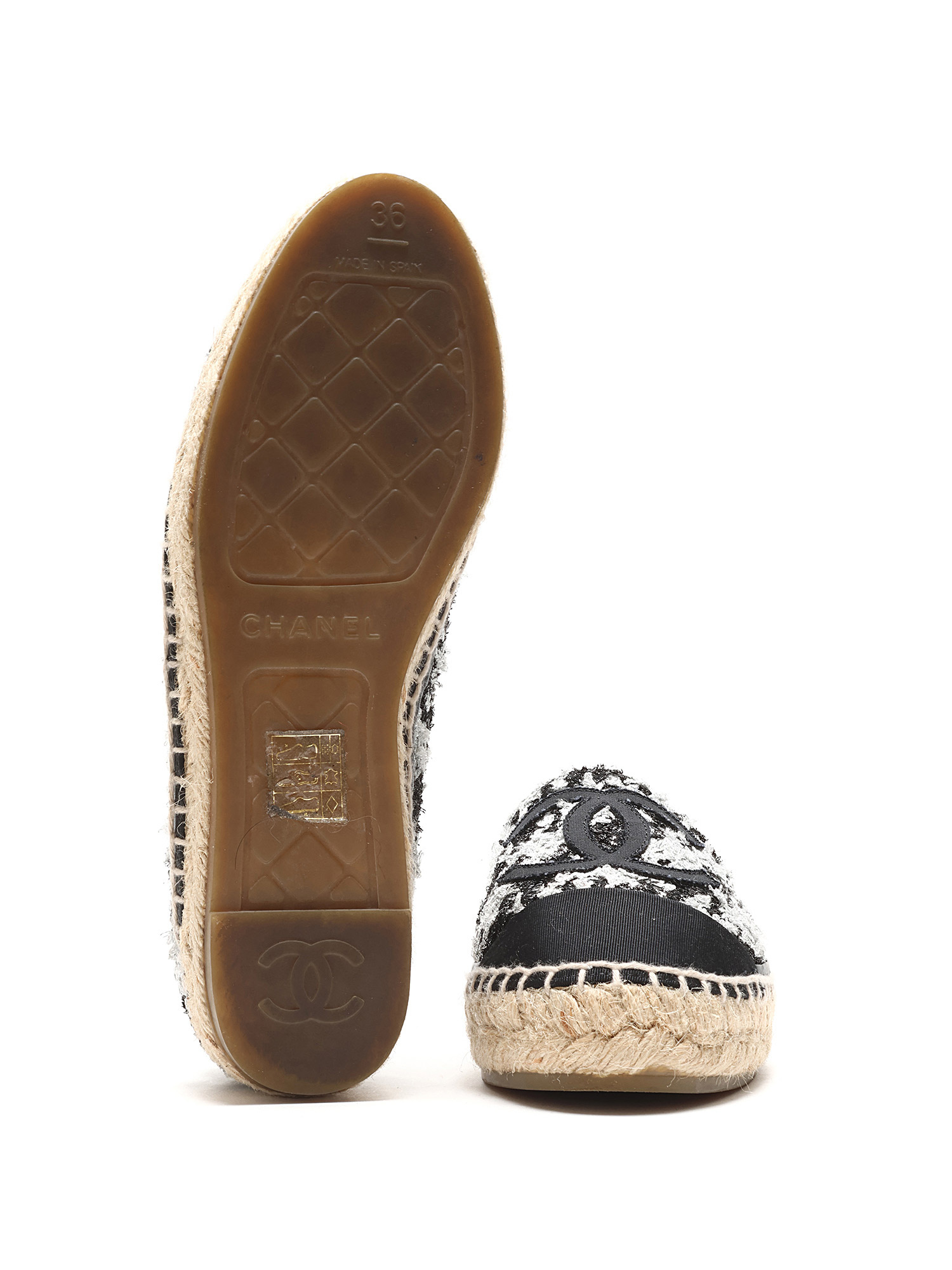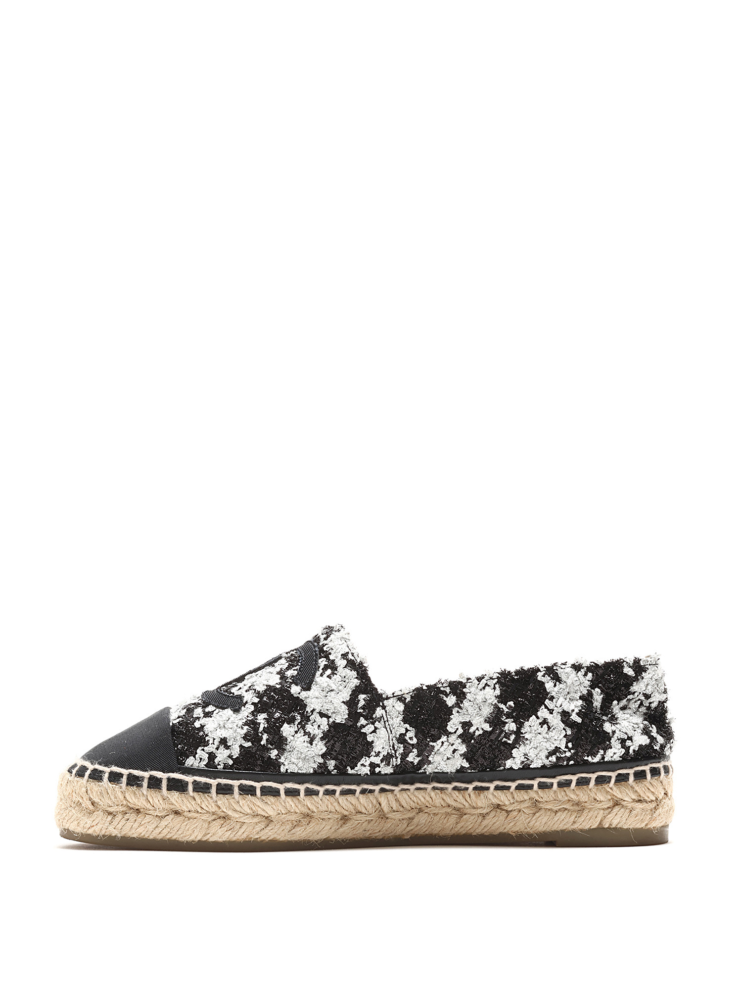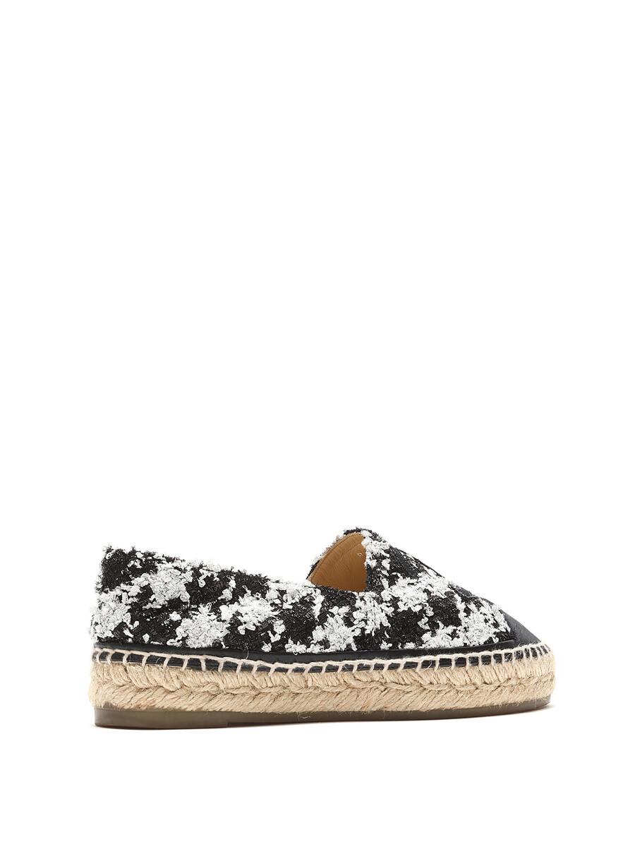Espadrilles en tweed à motif pied-de-poule avec broderie logo. Modèle à enfiler. Bout rond. Semelle en caoutchouc.